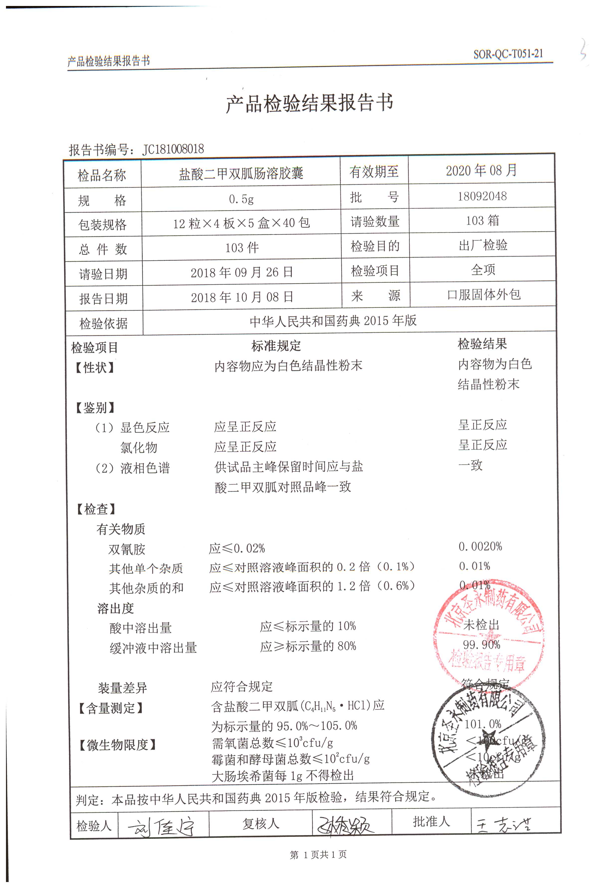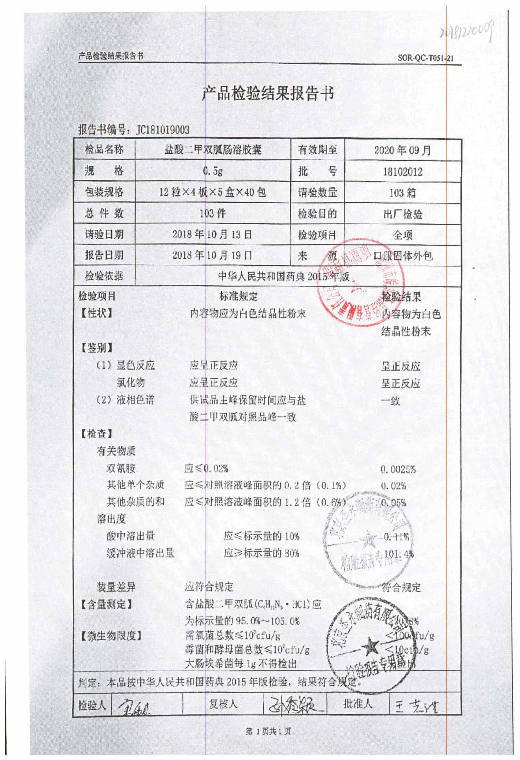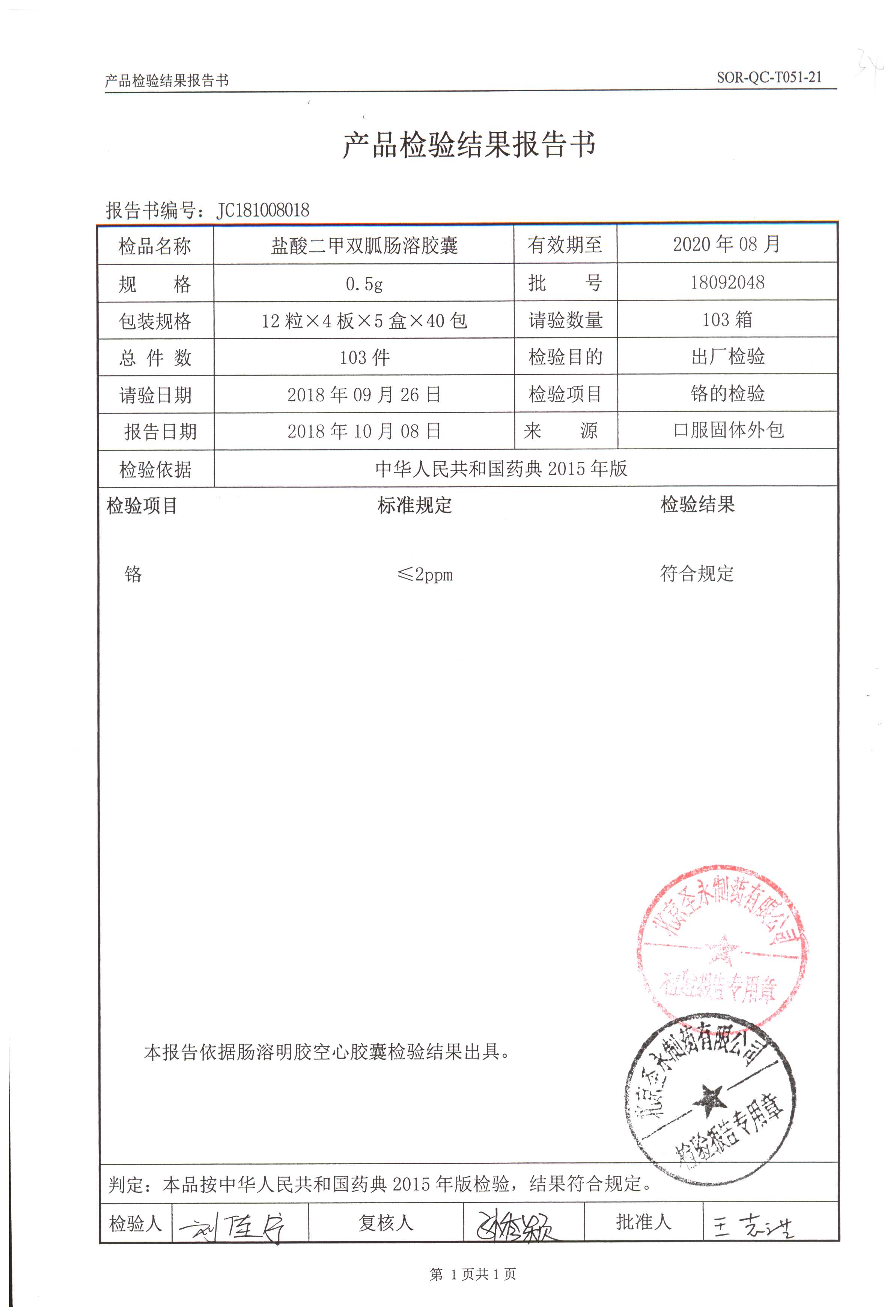 鹽酸二甲雙胍腸溶膠囊 | 0.5g*48粒 | 18092048(2/2) | 查看詳情 |