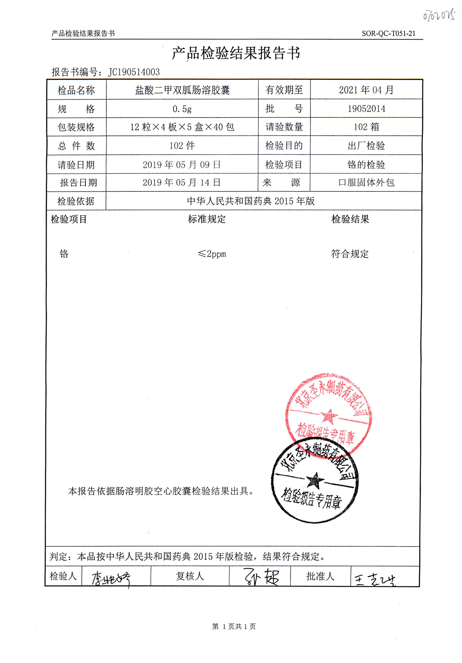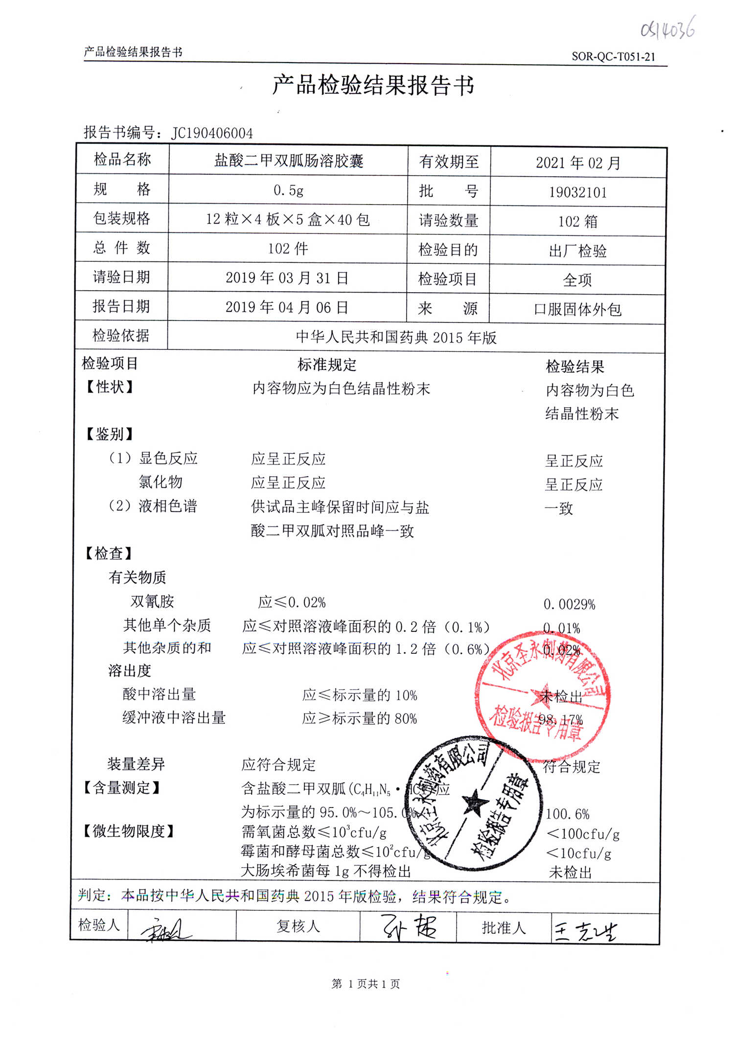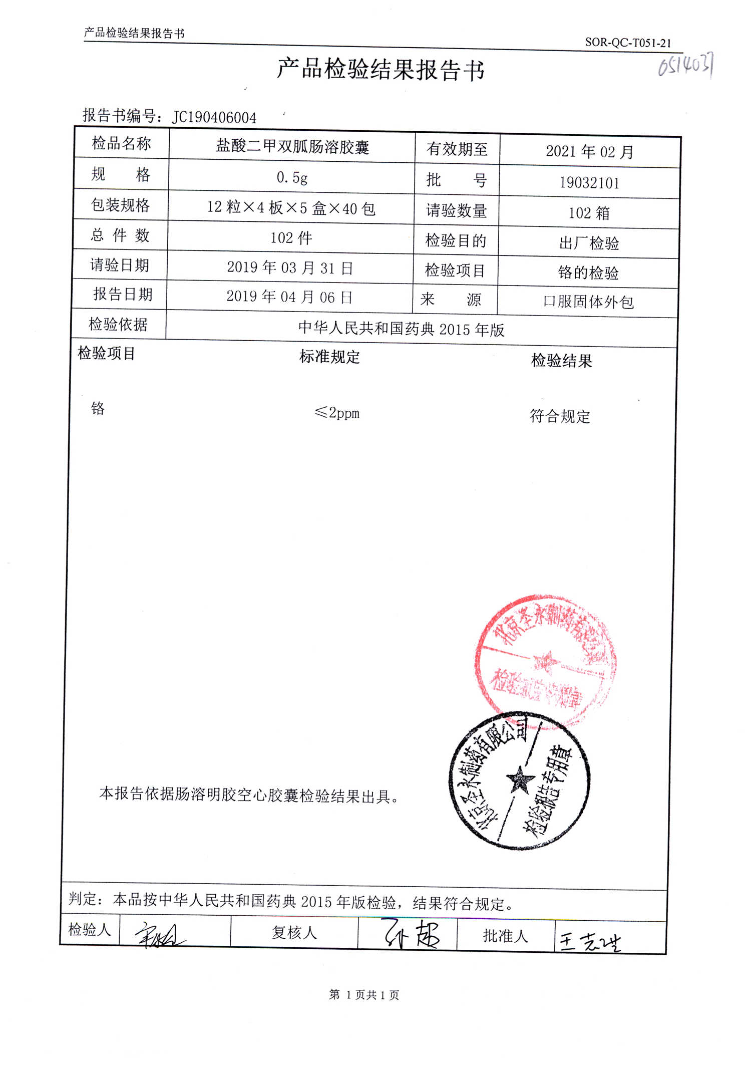 鹽酸二甲雙胍腸溶膠囊 | 0.5g*48粒 | 19032101(1/2) | 查看詳情 |