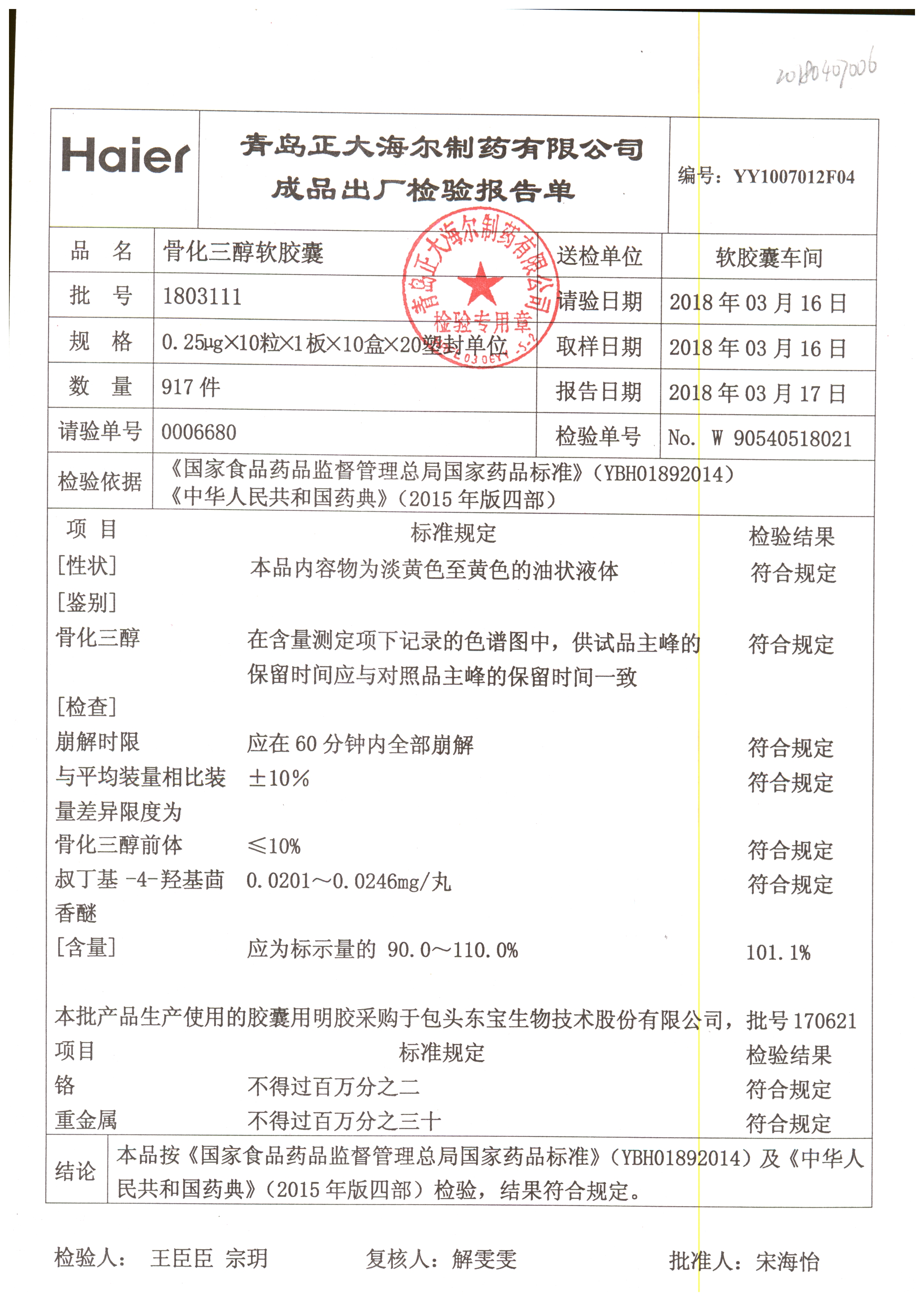 名稱 | 規(guī)格 | 批號 | 藥檢報告 |