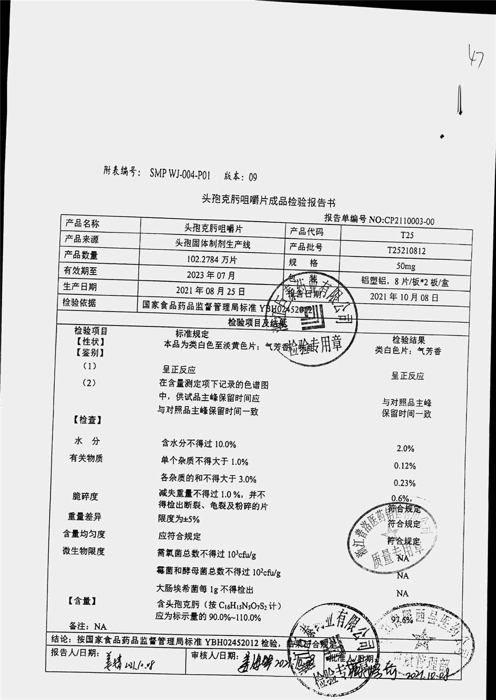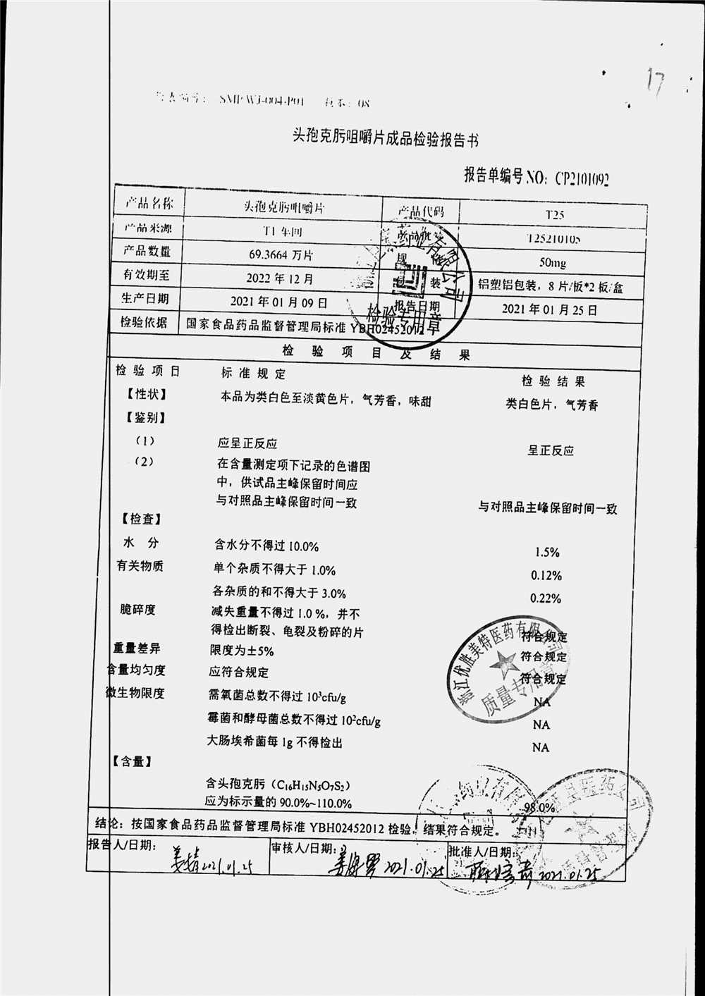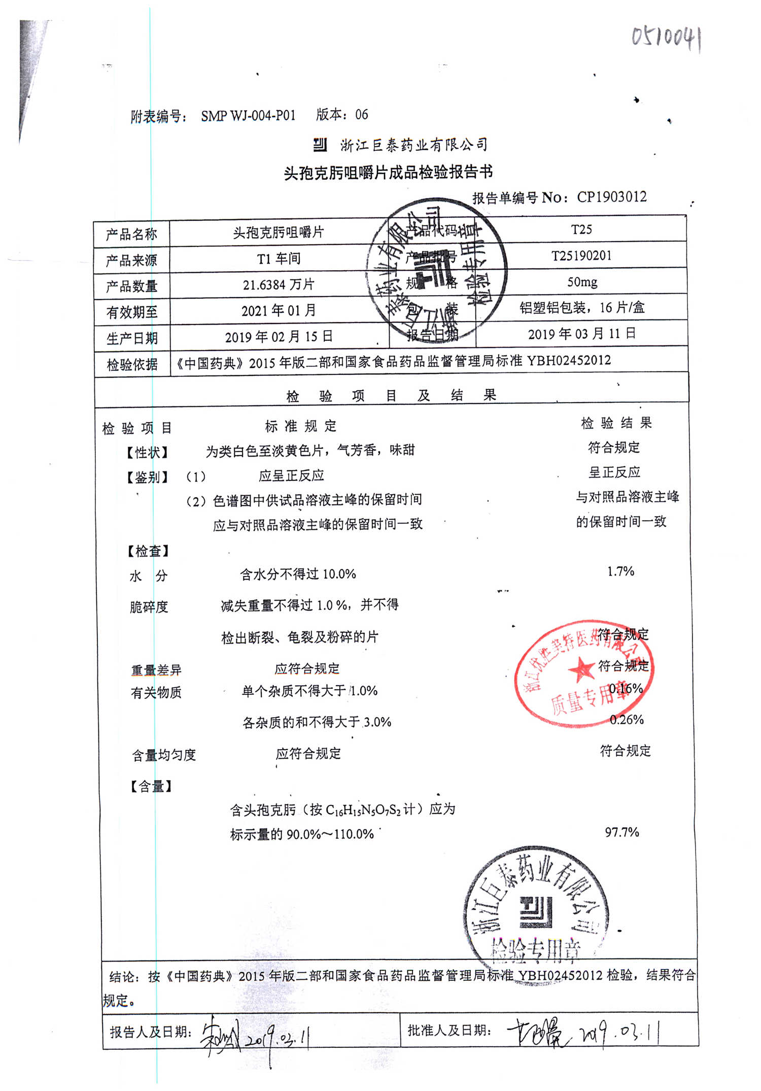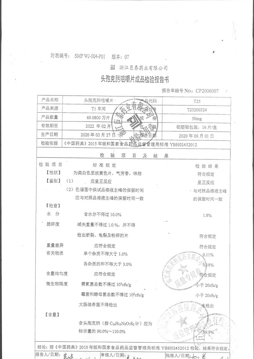 頭孢克肟咀嚼片 | 50mg*16s | T25210203 | 查看詳情 |