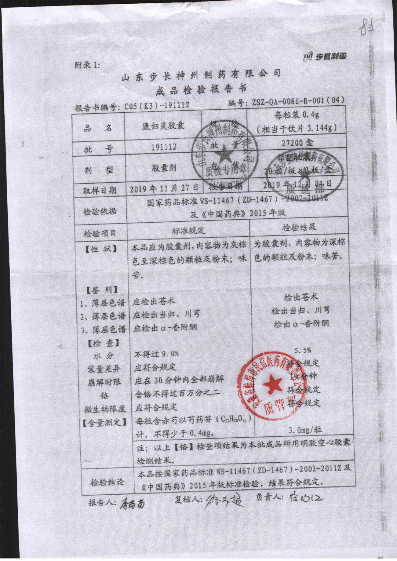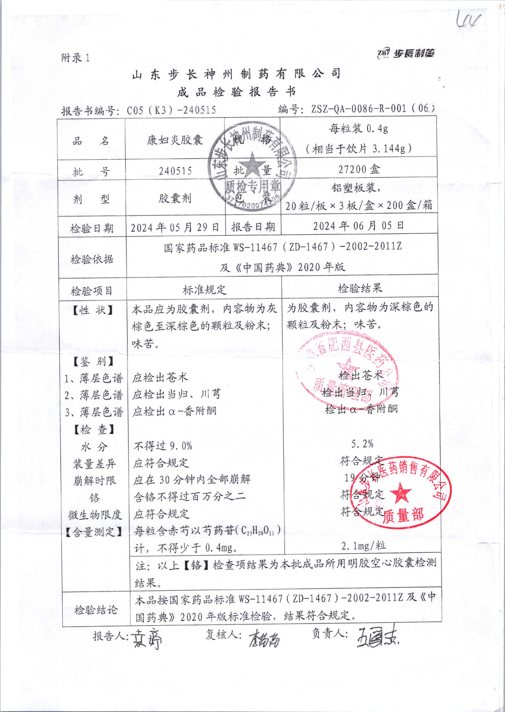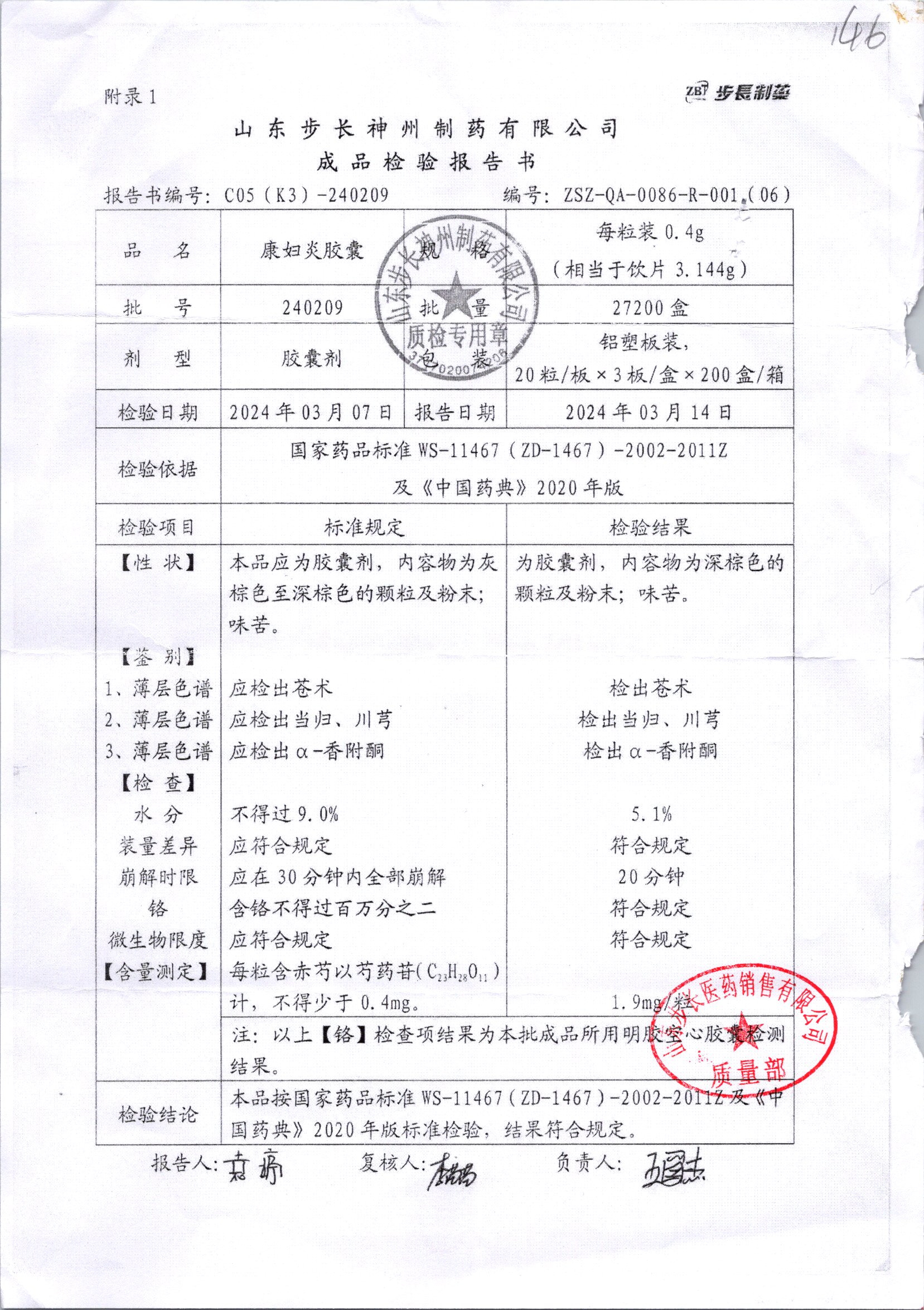 康婦炎膠囊 | 0.4g*60粒 | 240105 | 查看詳情 |