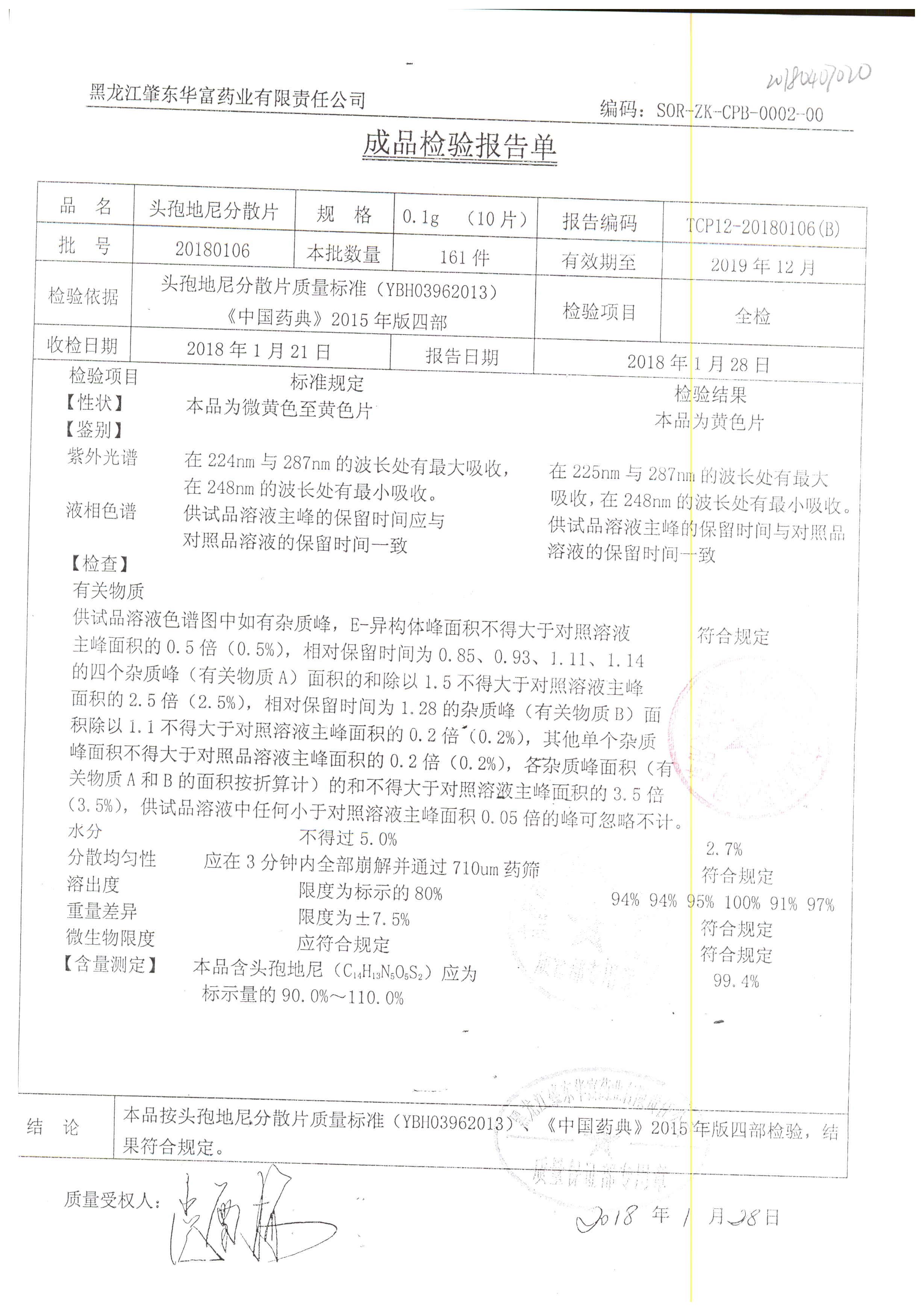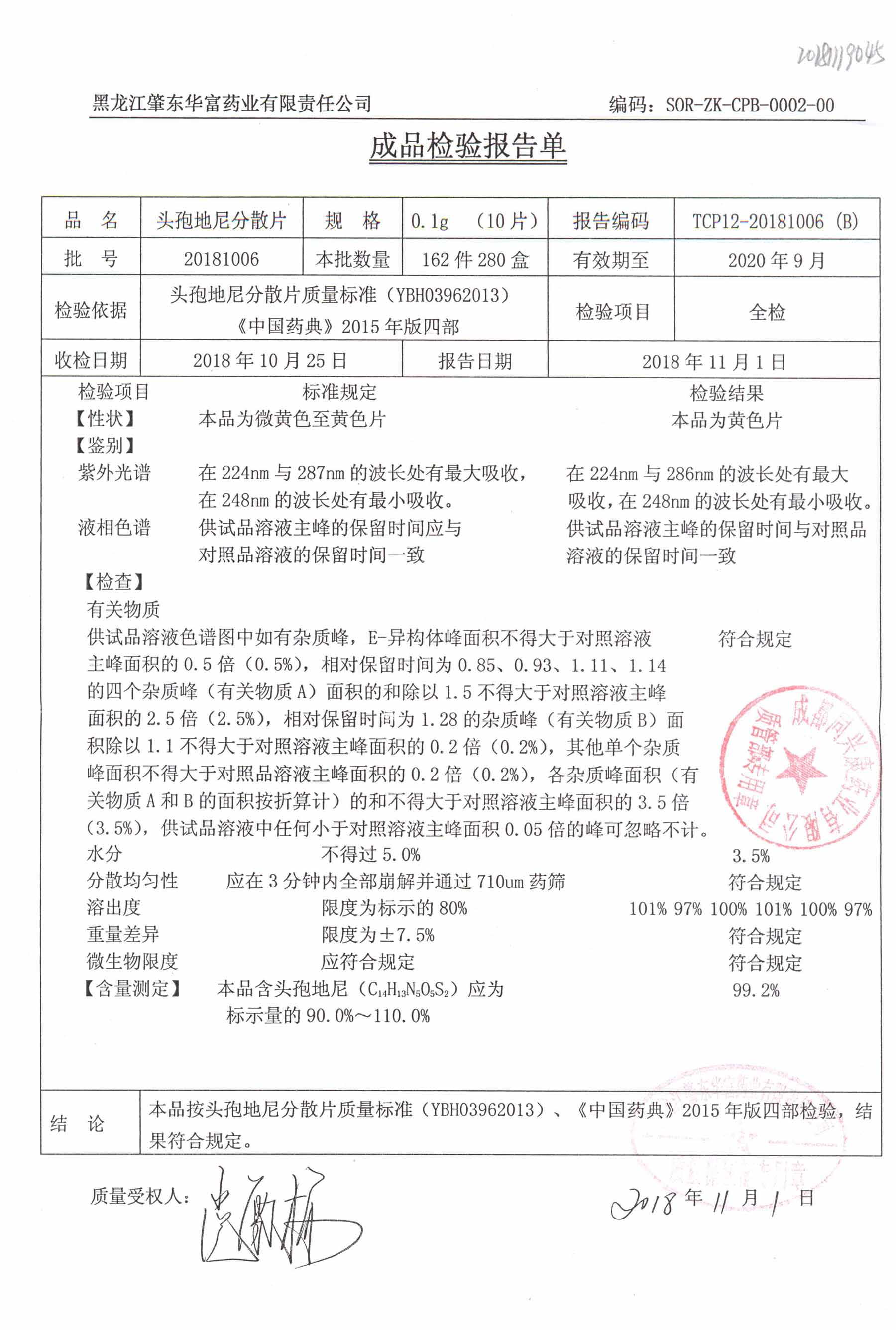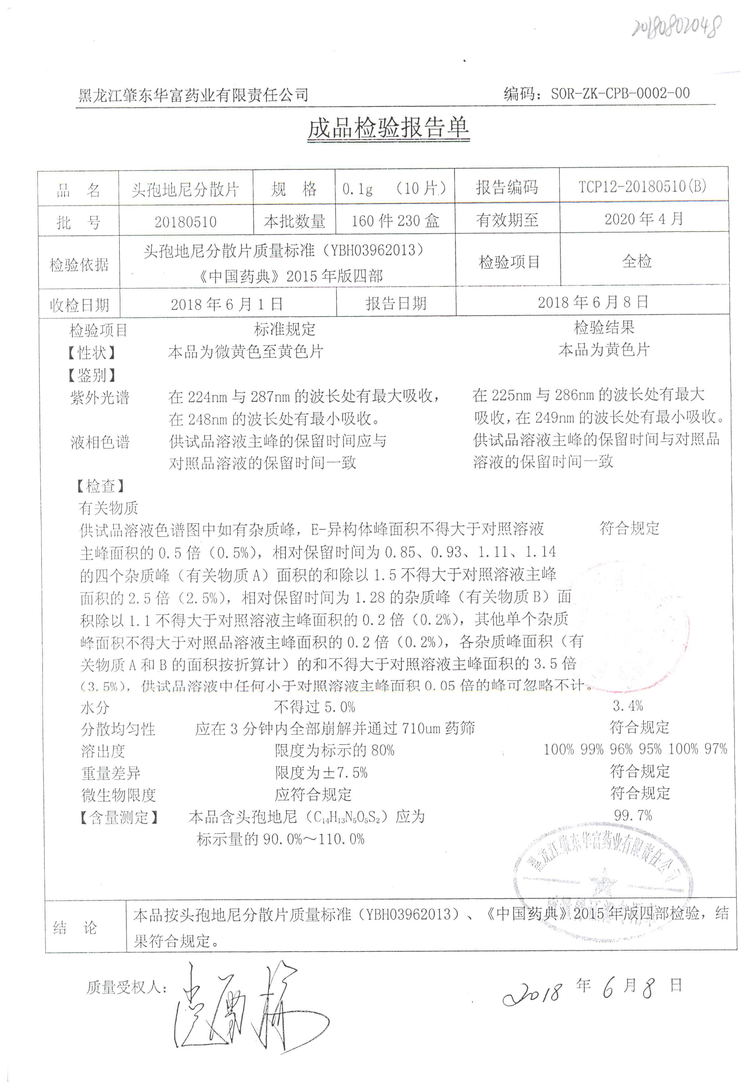 頭孢地尼分散片 | 0.1g*10s | 20190404 | 查看詳情 |