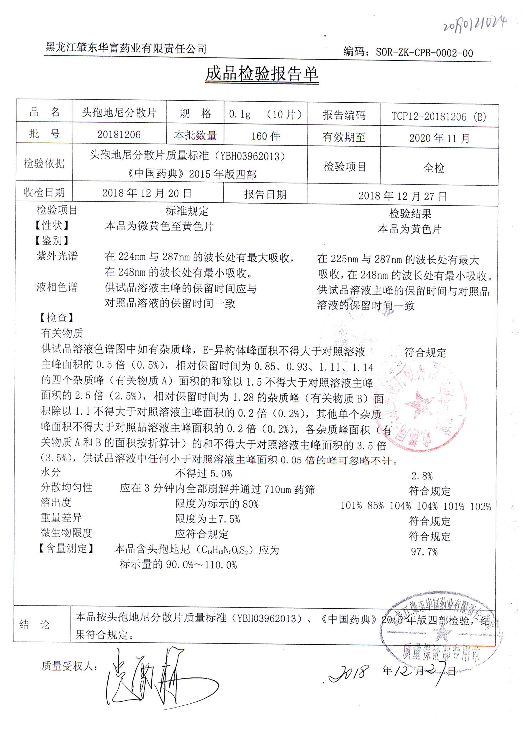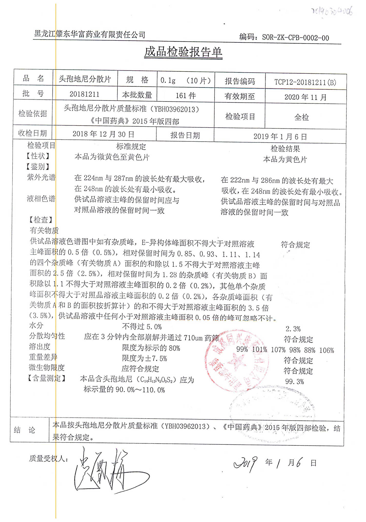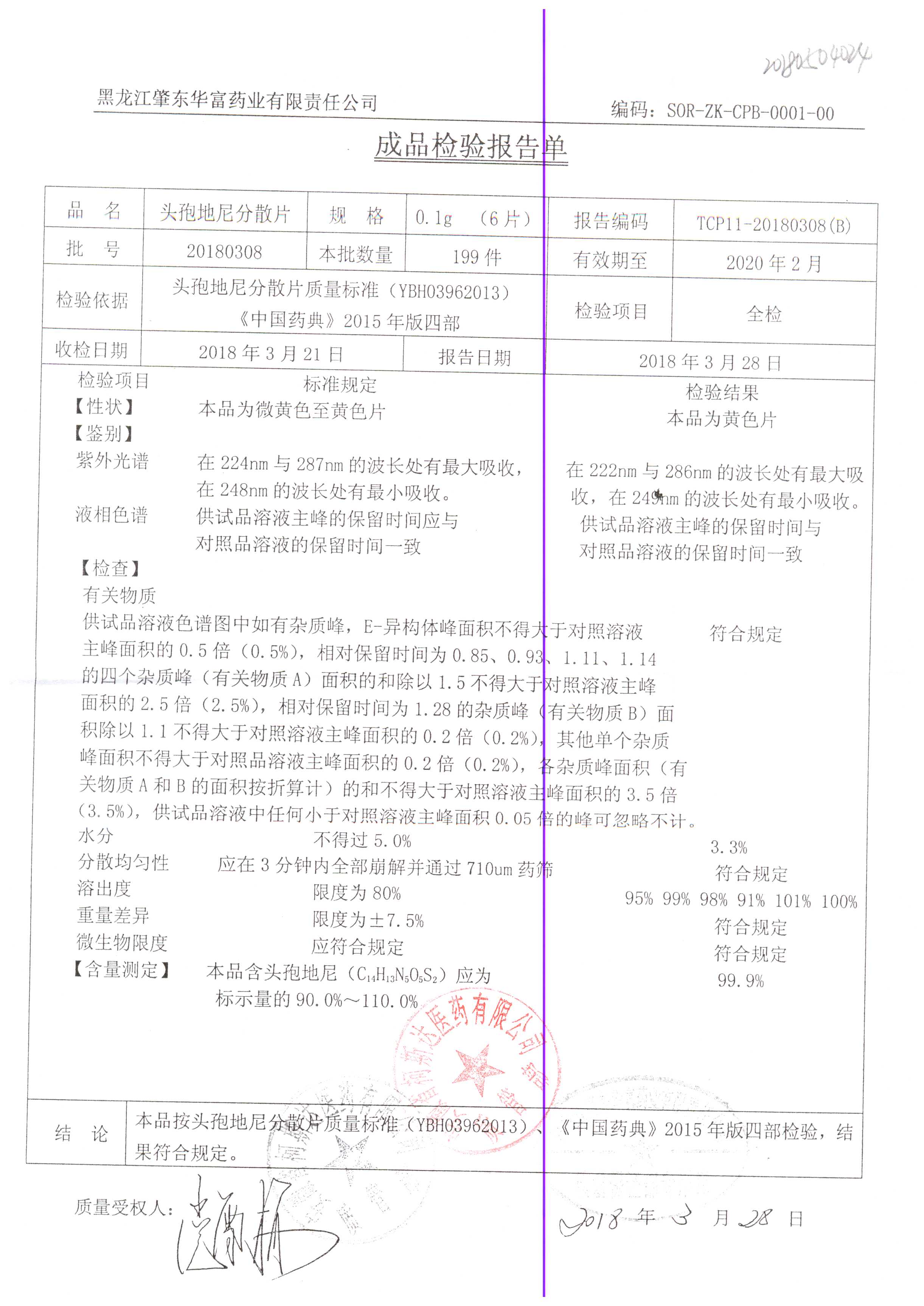 頭孢地尼分散片 | 0.1g*10s | 20190404 | 查看詳情 |