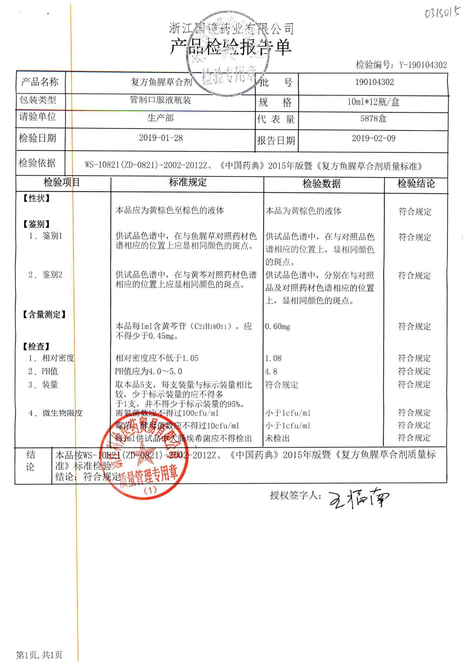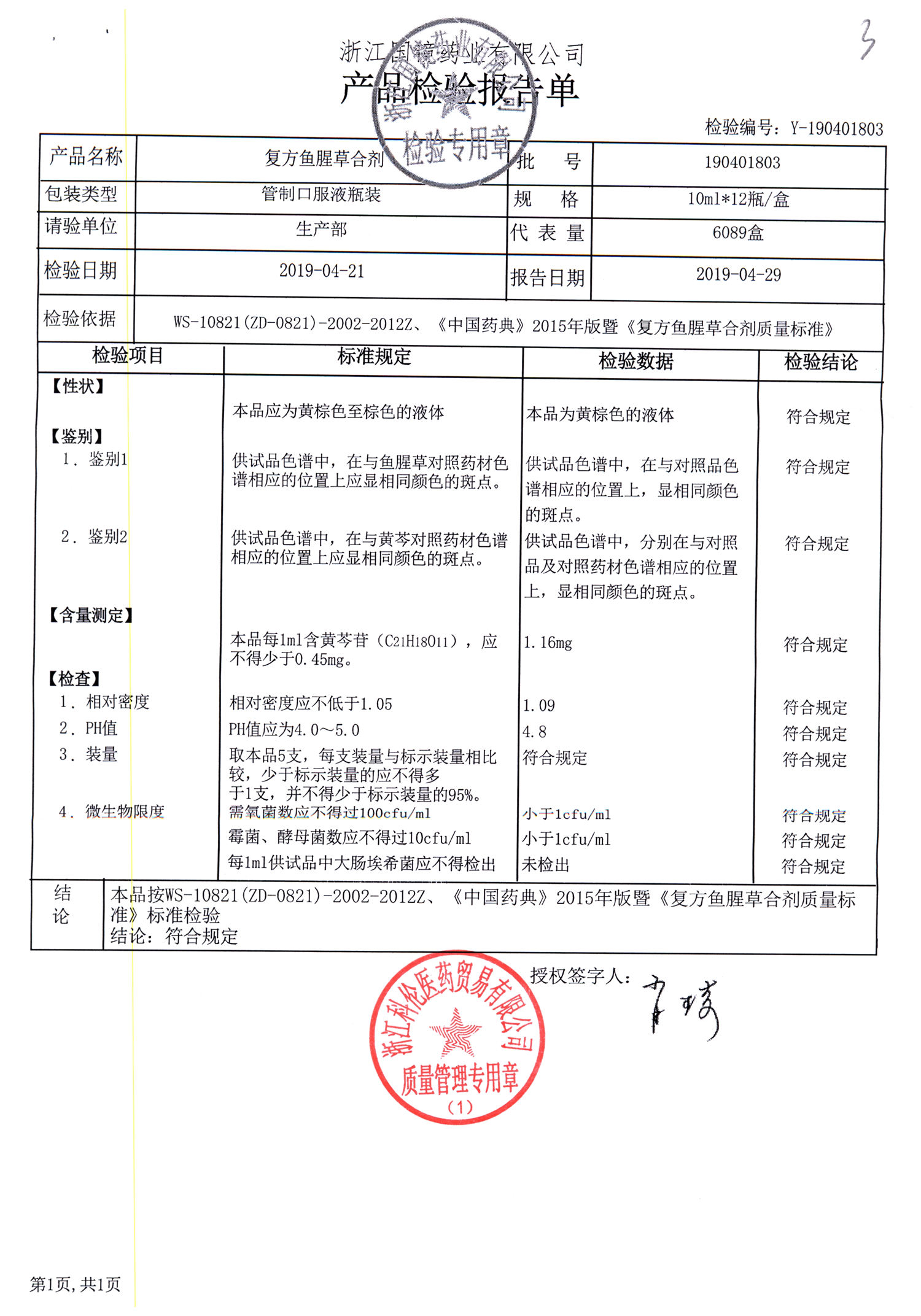 復(fù)方魚(yú)腥草合劑 | 10ml | 190200301 | 查看詳情 |