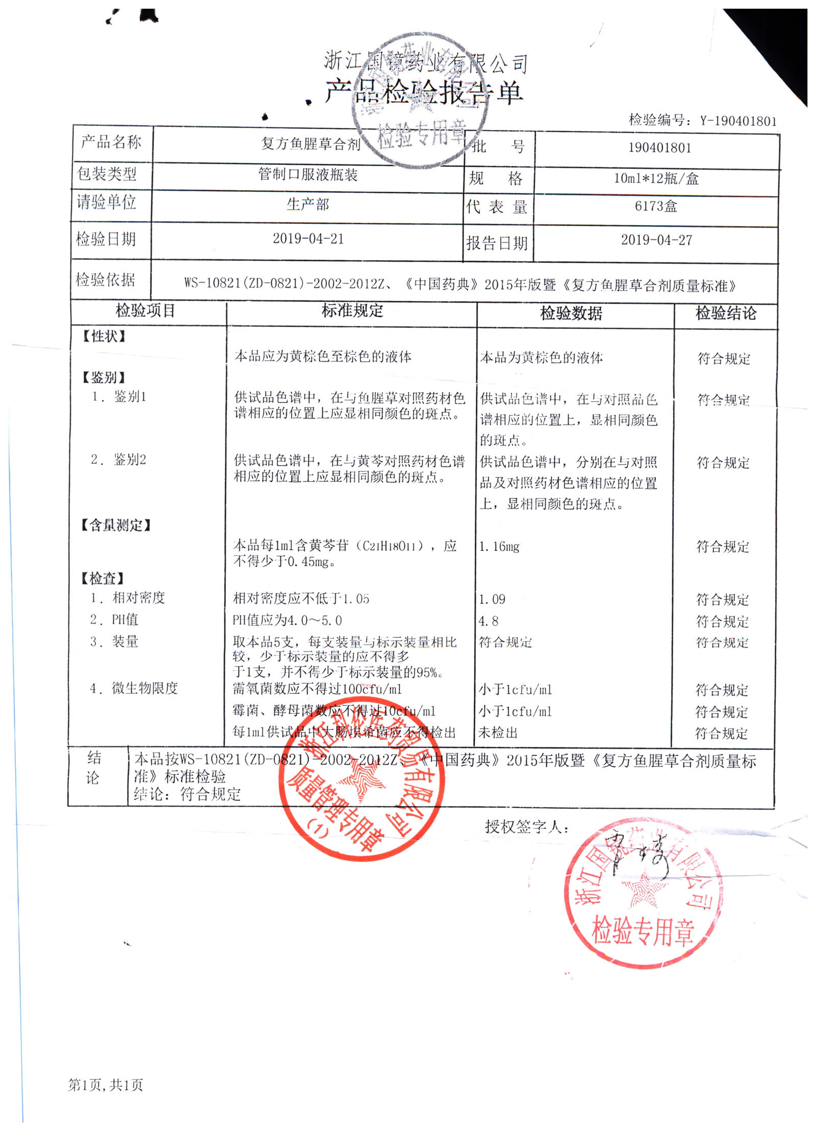 復(fù)方魚(yú)腥草合劑 | 10ml | 190602001 | 查看詳情 |