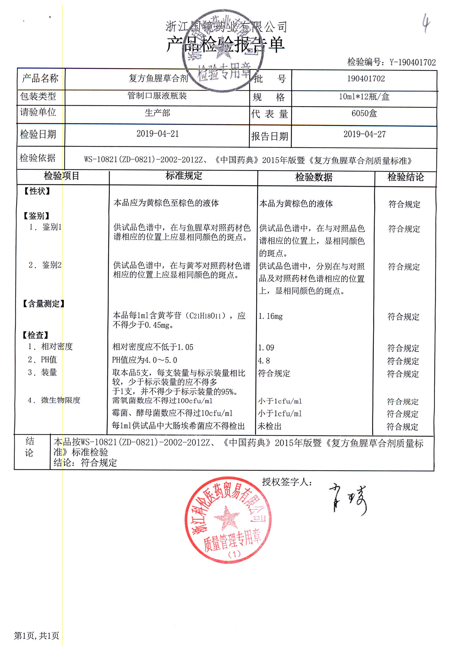 復(fù)方魚(yú)腥草合劑 | 10ml | 190200302 | 查看詳情 |