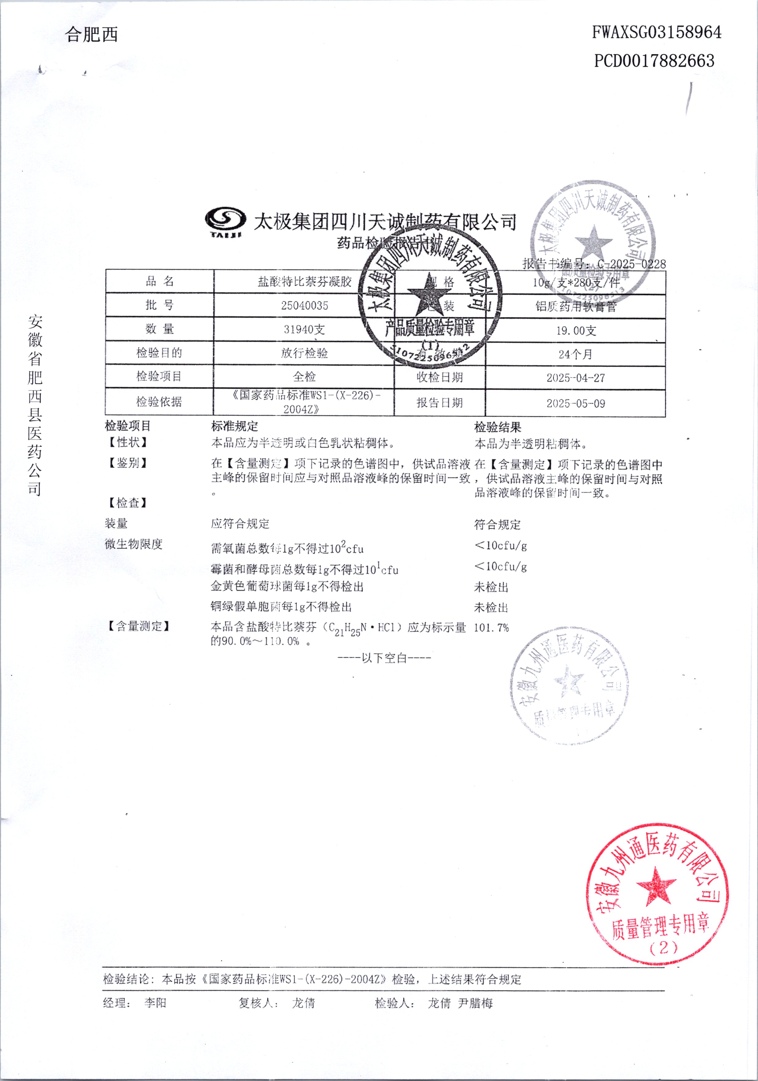 名稱 規(guī)格 批號(hào) 藥檢報(bào)告