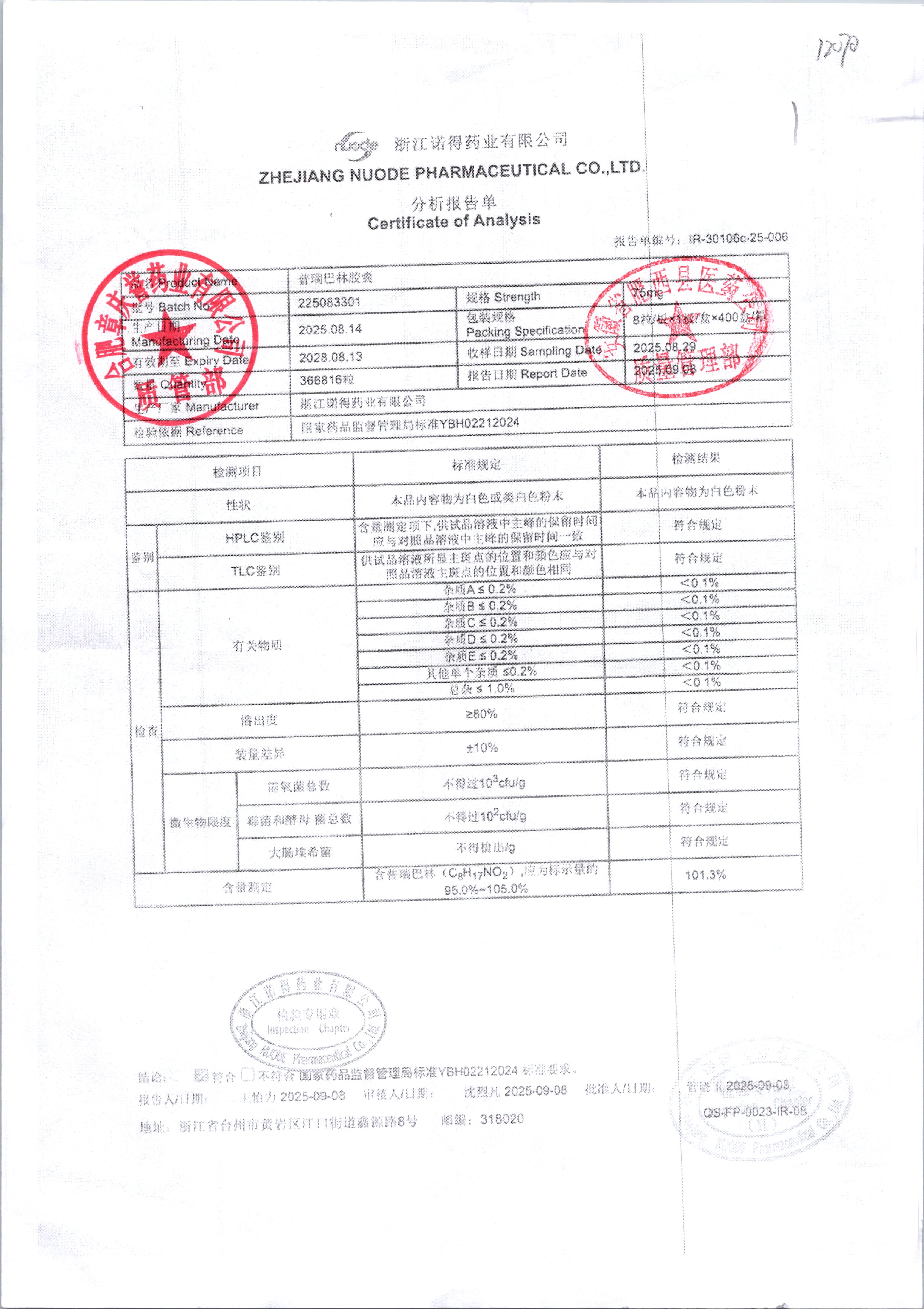 名稱(chēng) 規(guī)格 批號(hào) 藥檢報(bào)告