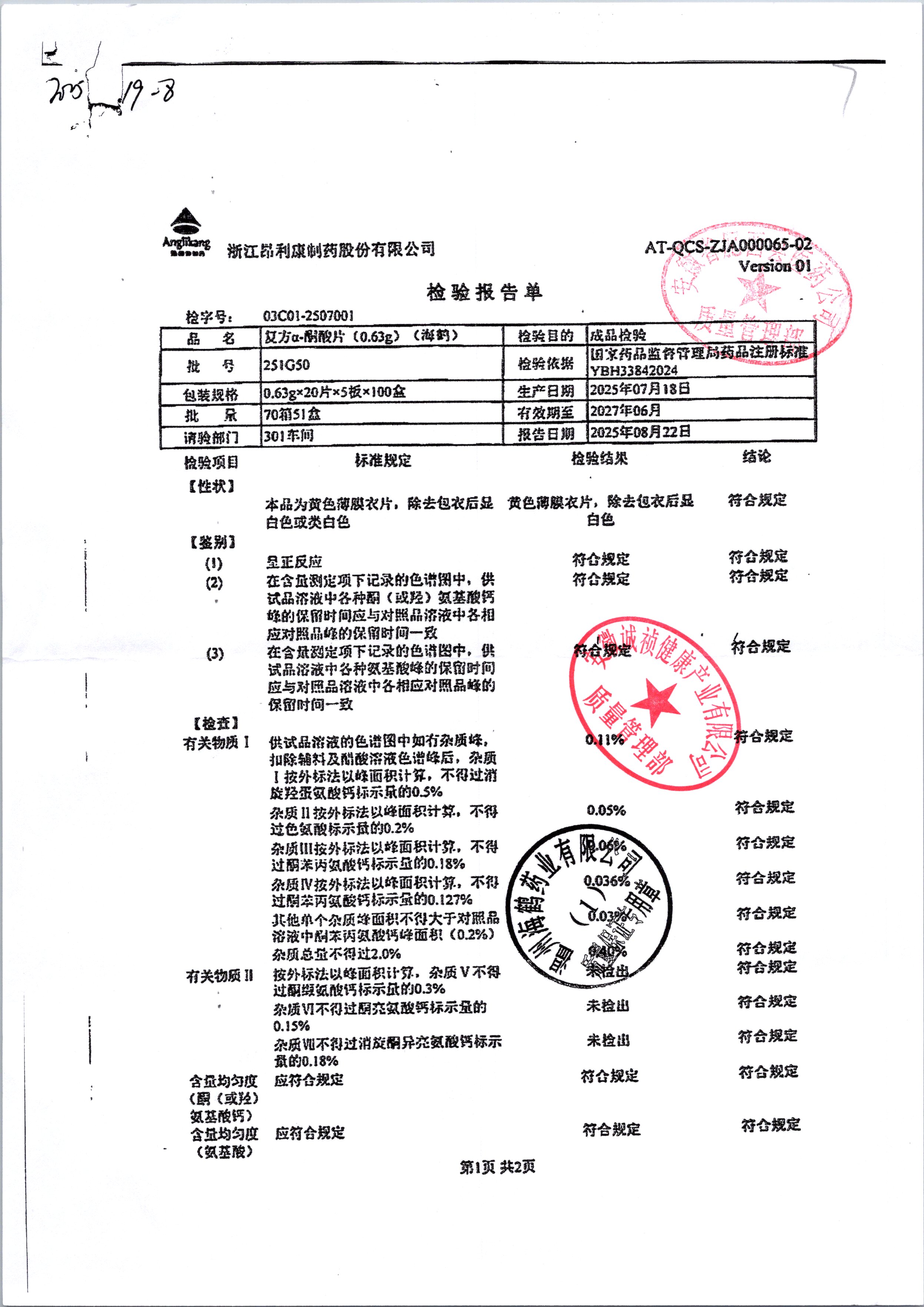 復方a-酮酸片 0.63g*20片*5 251G50 查看詳情