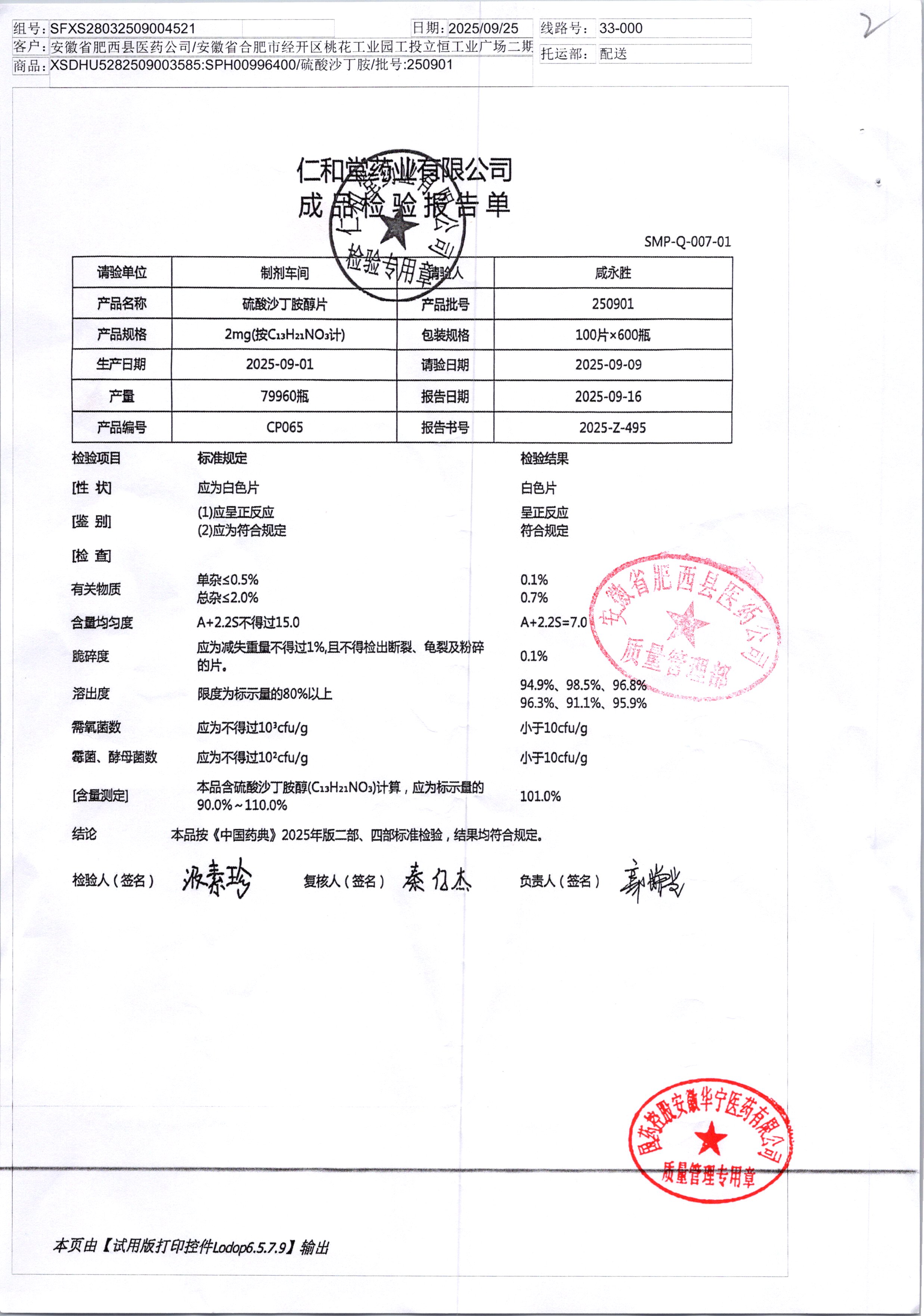 名稱 規(guī)格 批號 藥檢報告