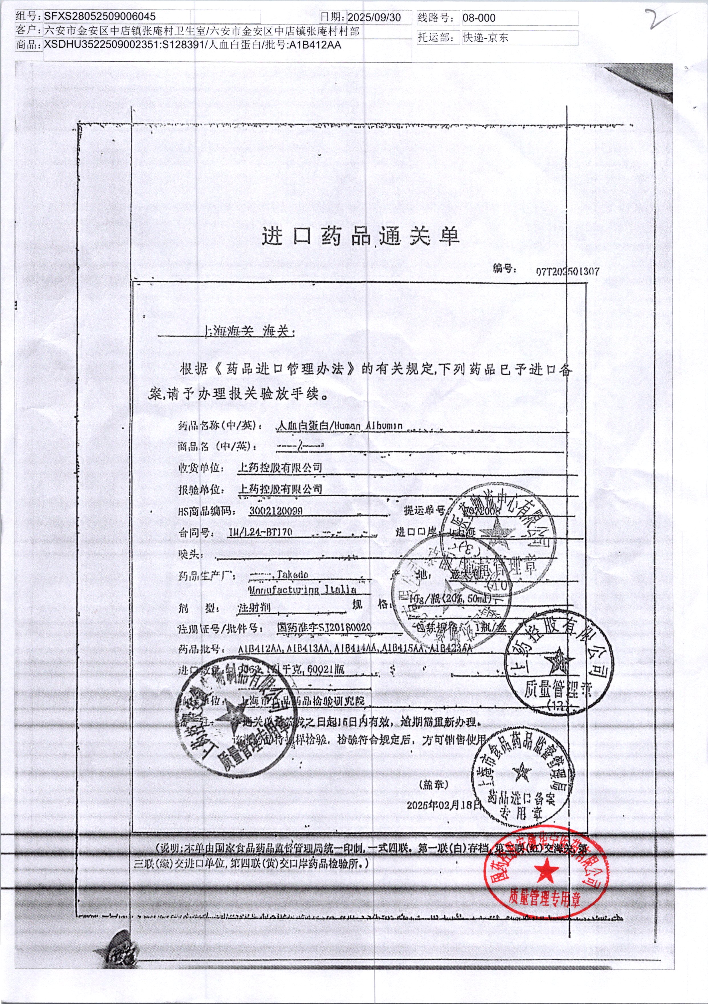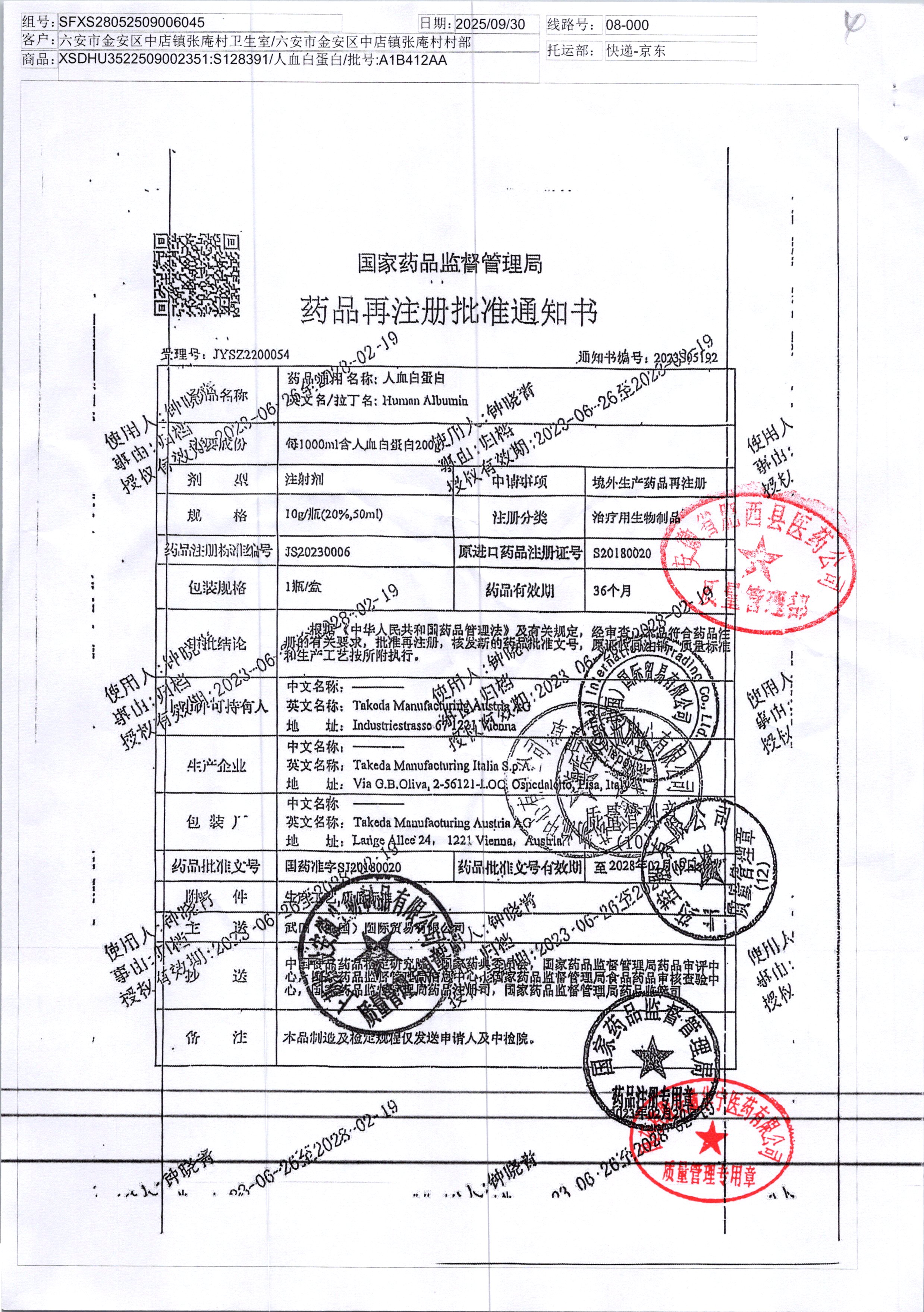 人血白蛋白 | 10g | A1B412AA/1 | 查看詳情 |