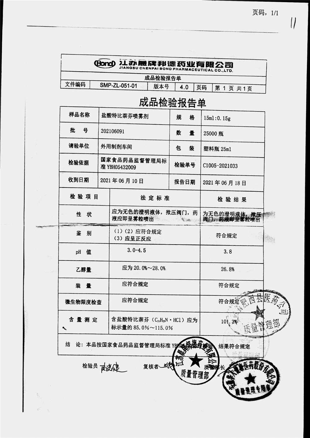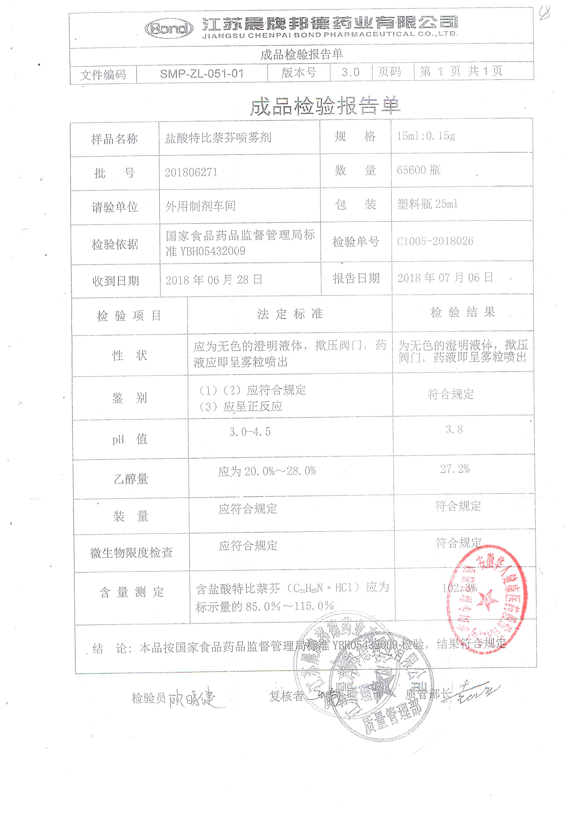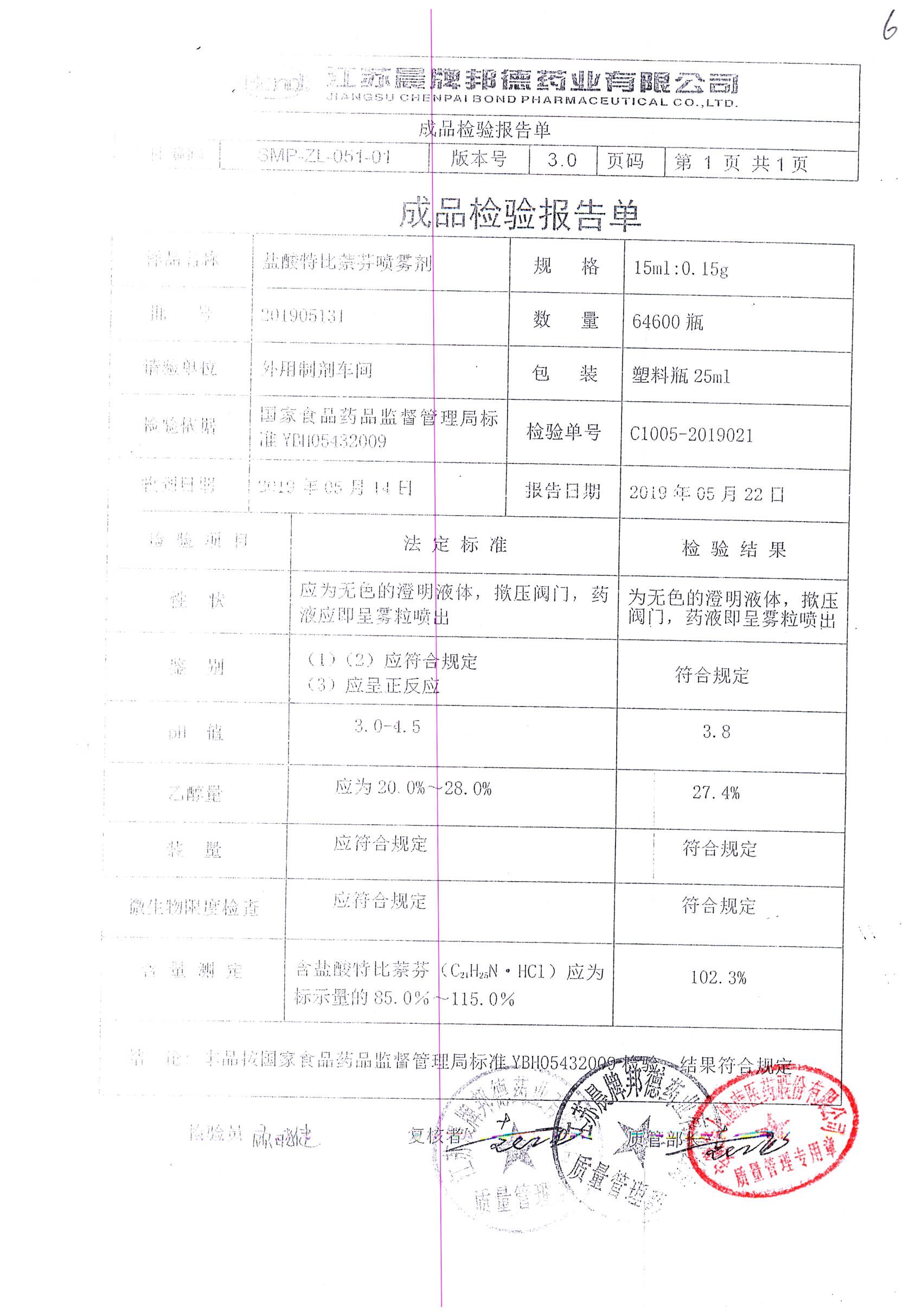 鹽酸特比萘芬噴霧劑 | 15ml:0.15g | 202203301 | 查看詳情 |