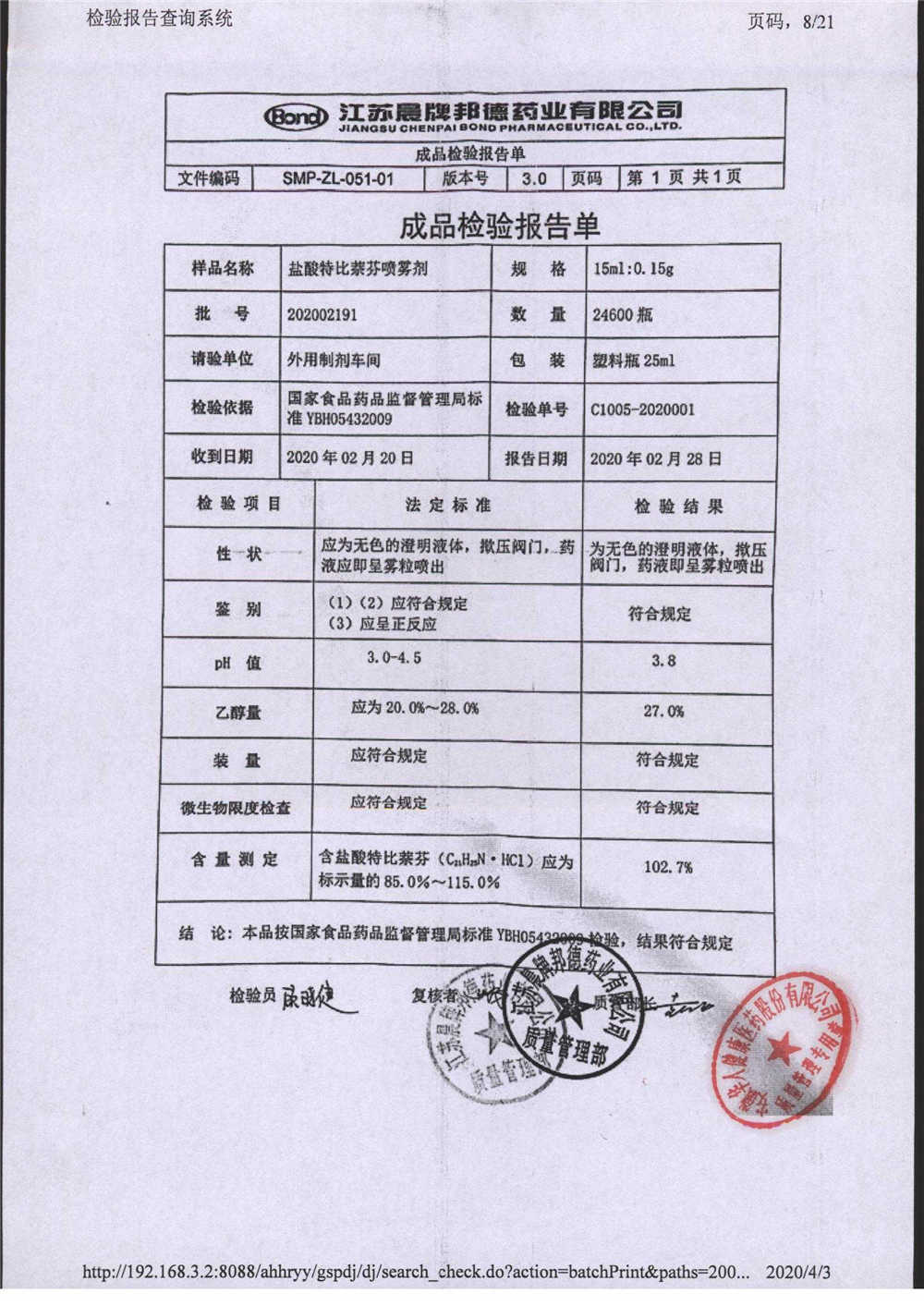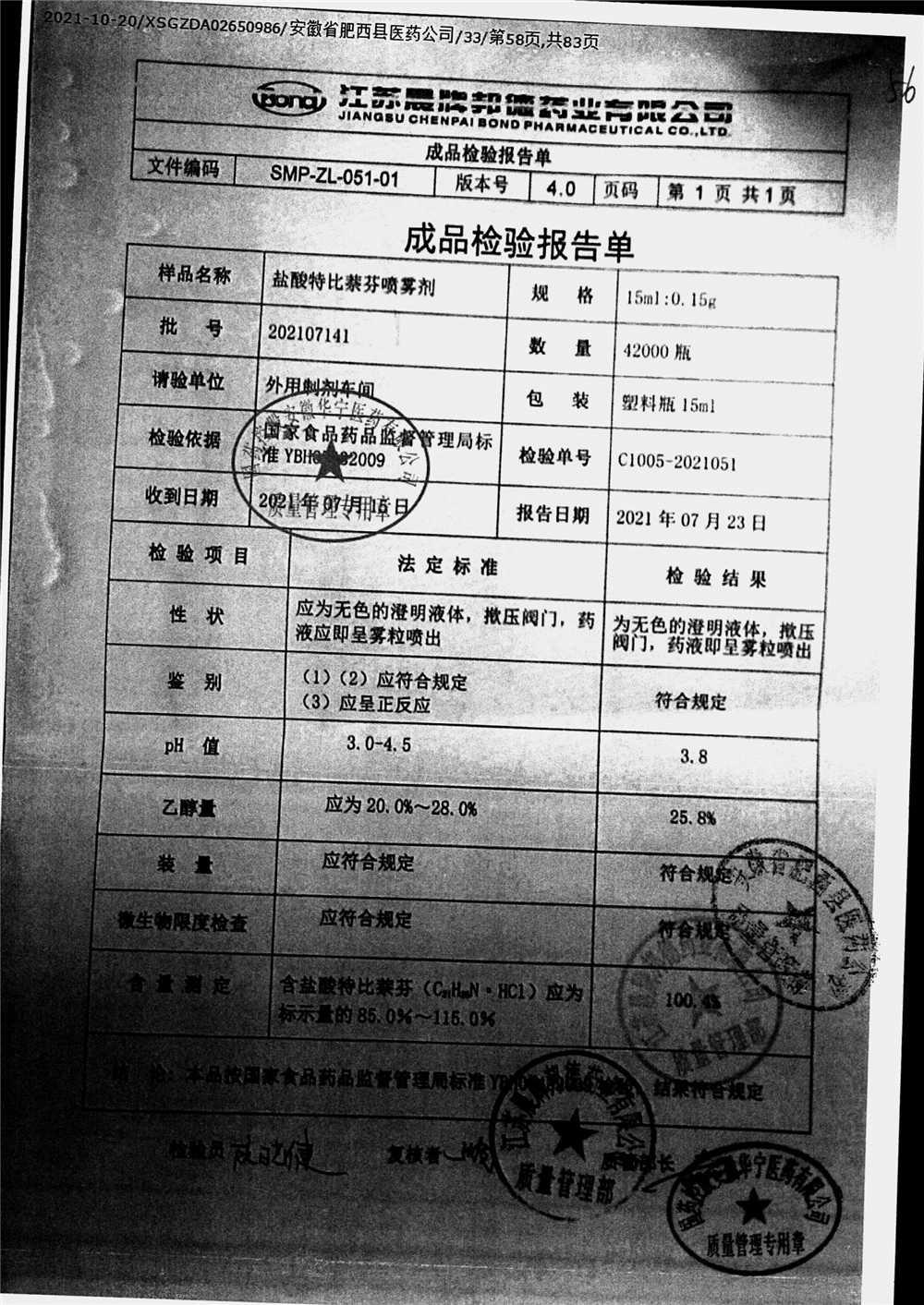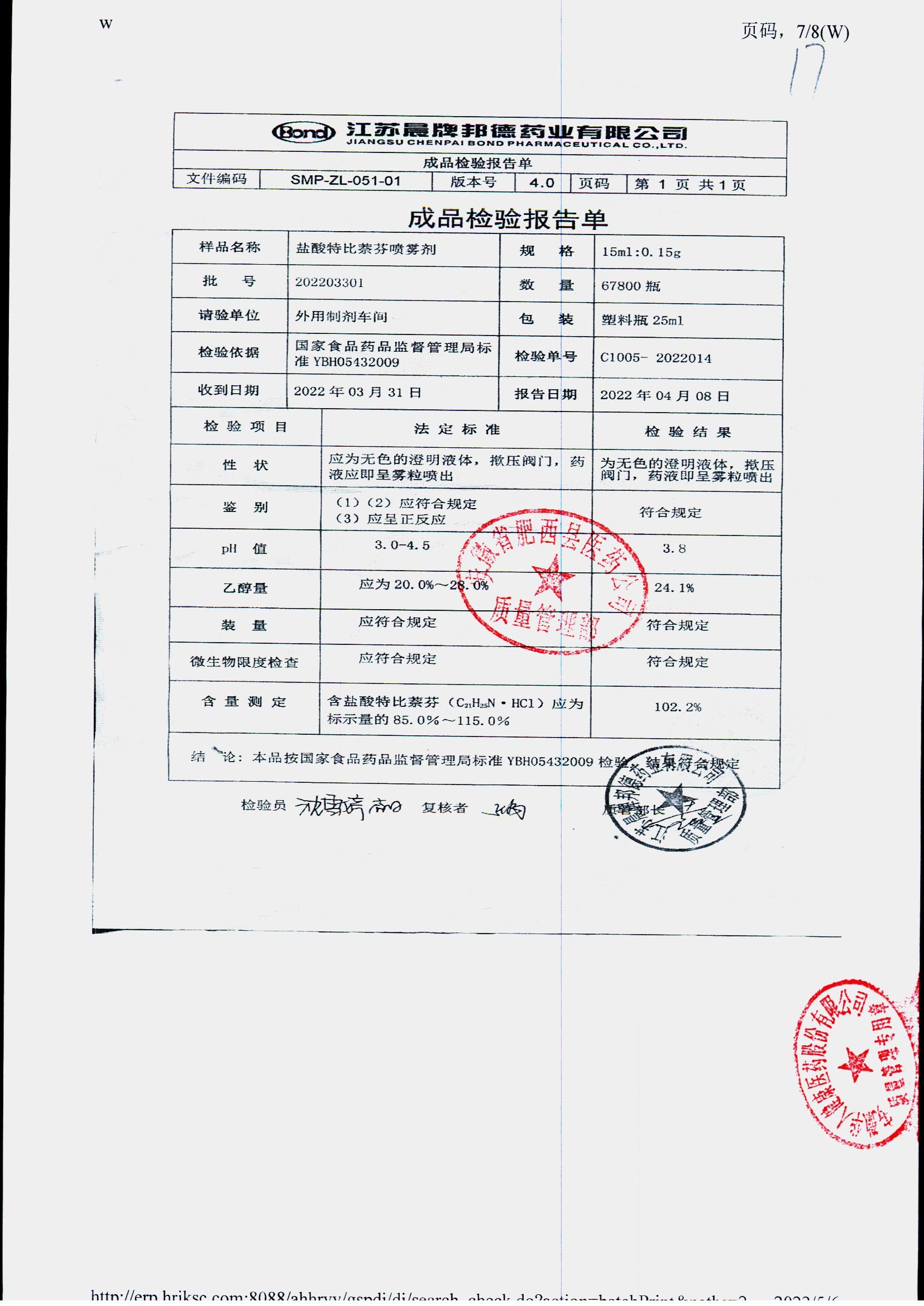鹽酸特比萘芬噴霧劑 | 15ml:0.15g | 202203301 | 查看詳情 |