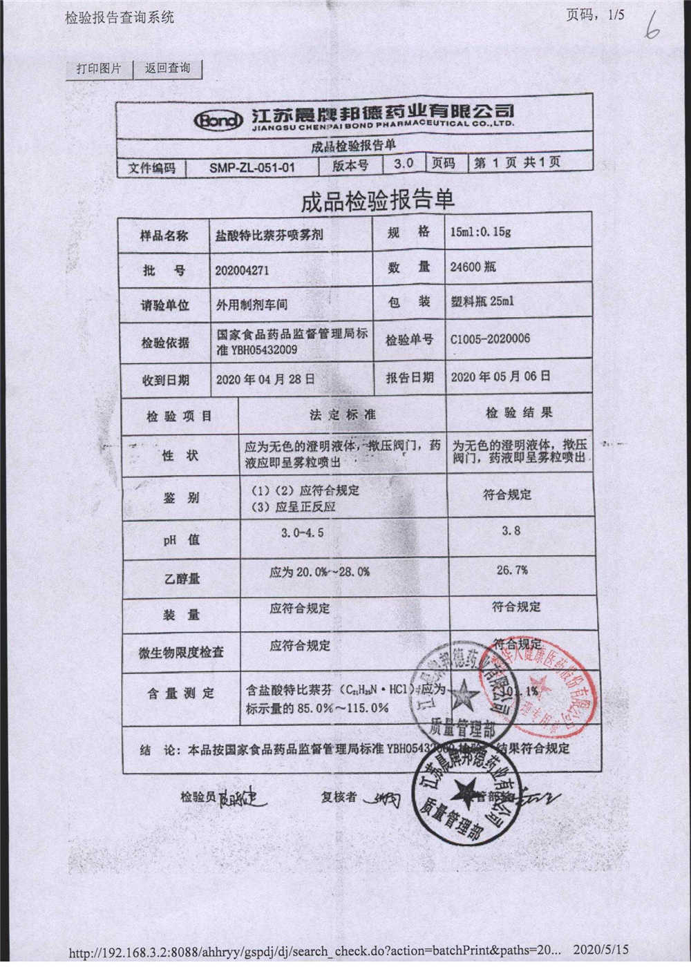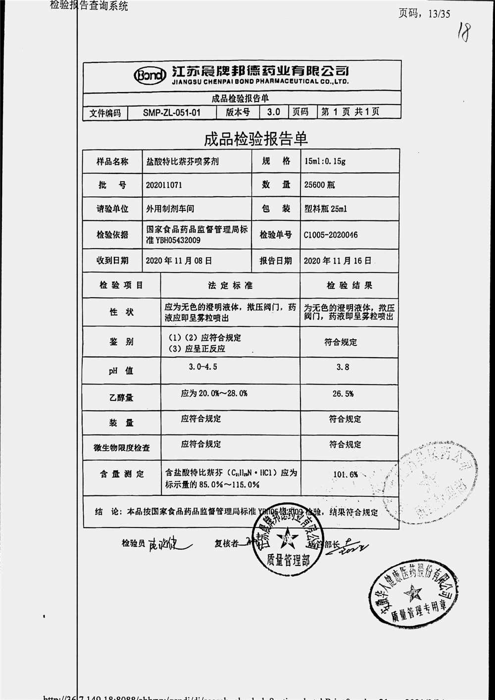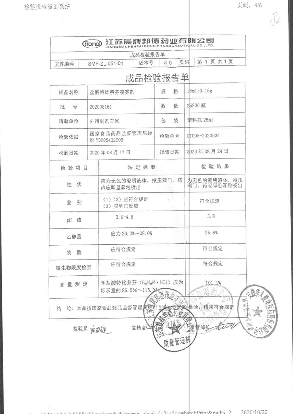 鹽酸特比萘芬噴霧劑 | 15ml:0.15g | 202011071 | 查看詳情 |