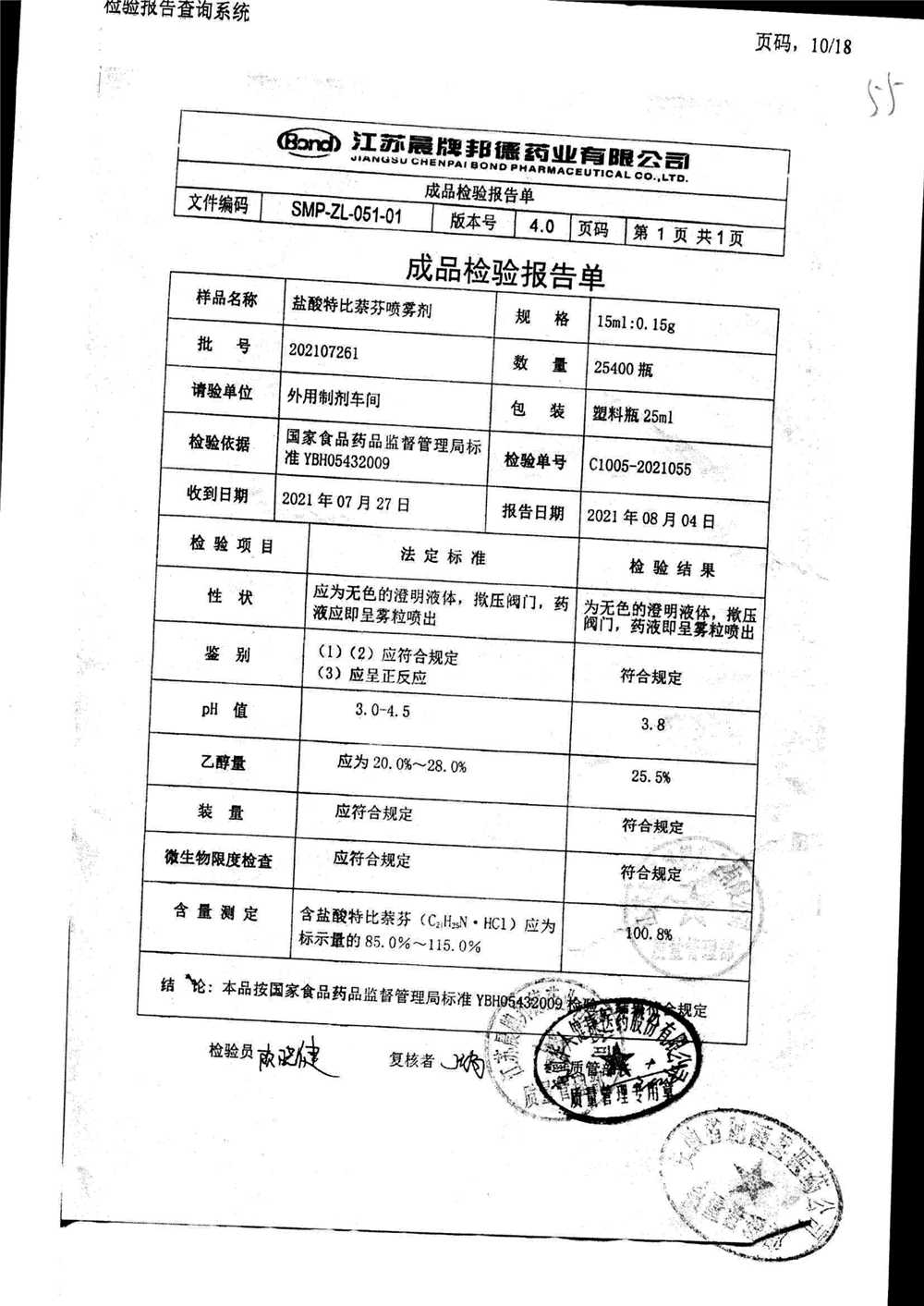 鹽酸特比萘芬噴霧劑 | 15ml:0.15g | 202106091 | 查看詳情 |