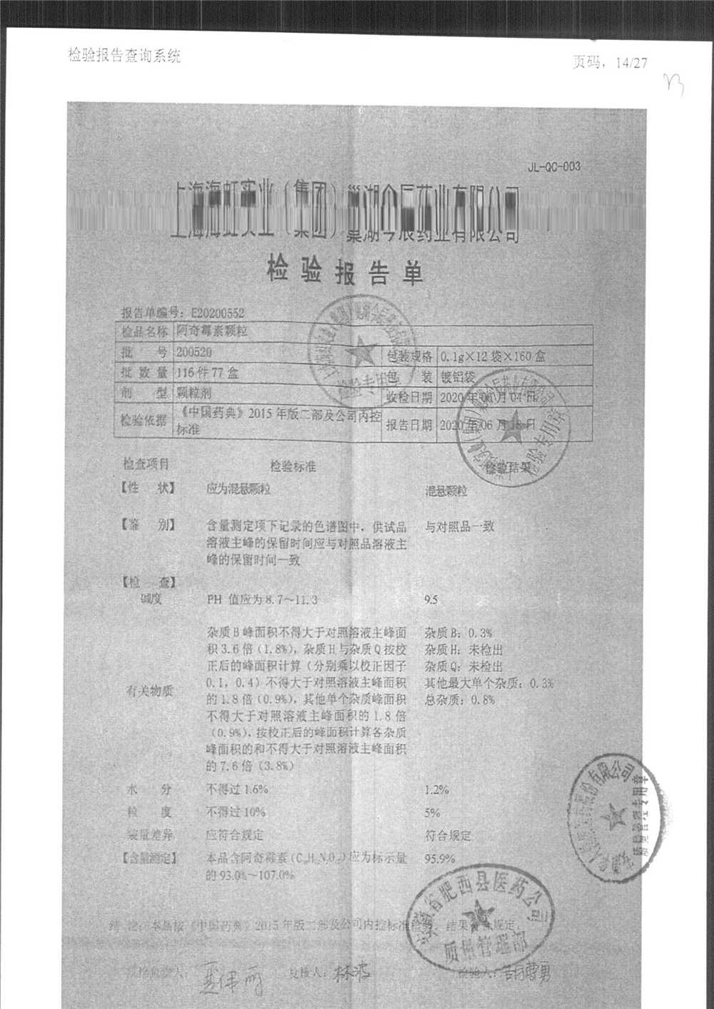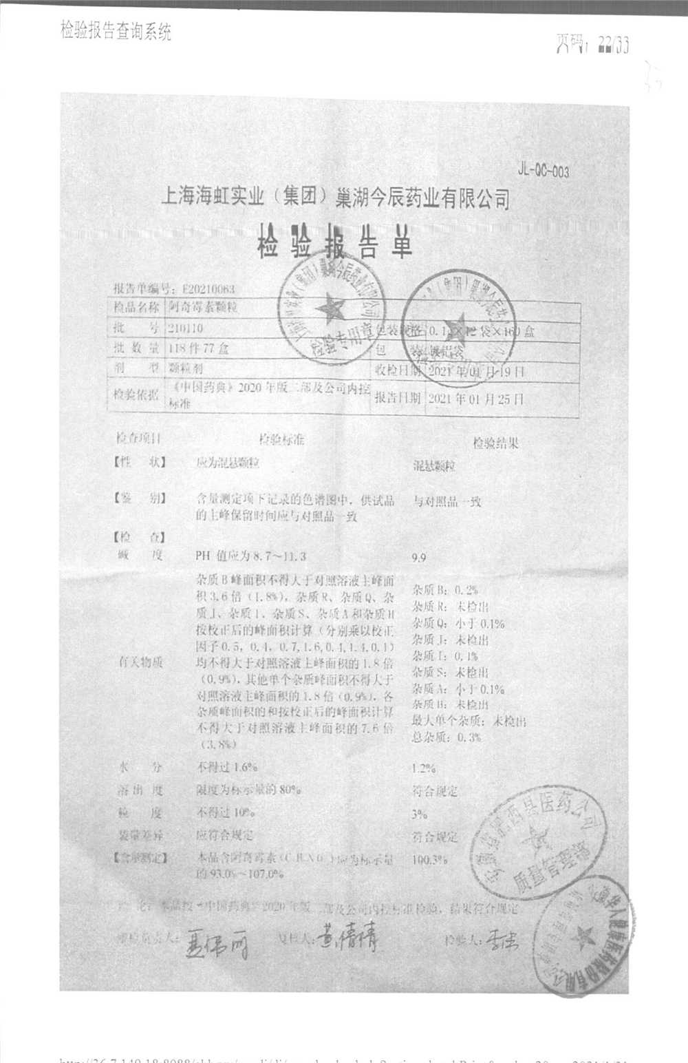 名稱 | 規(guī)格 | 批號 | 藥檢報告 |