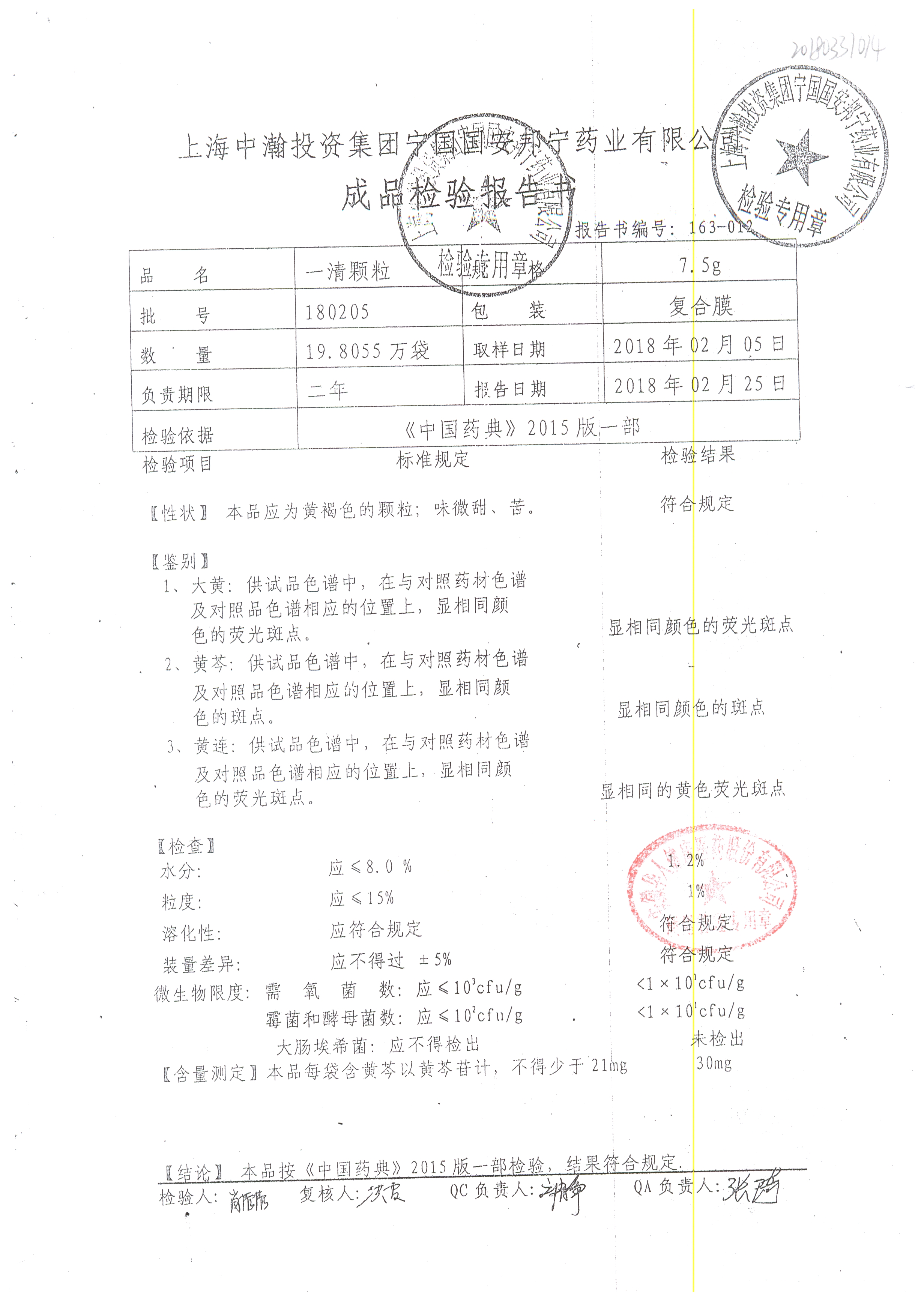 一清顆粒 | 7.5g | 180404 | 查看詳情 |