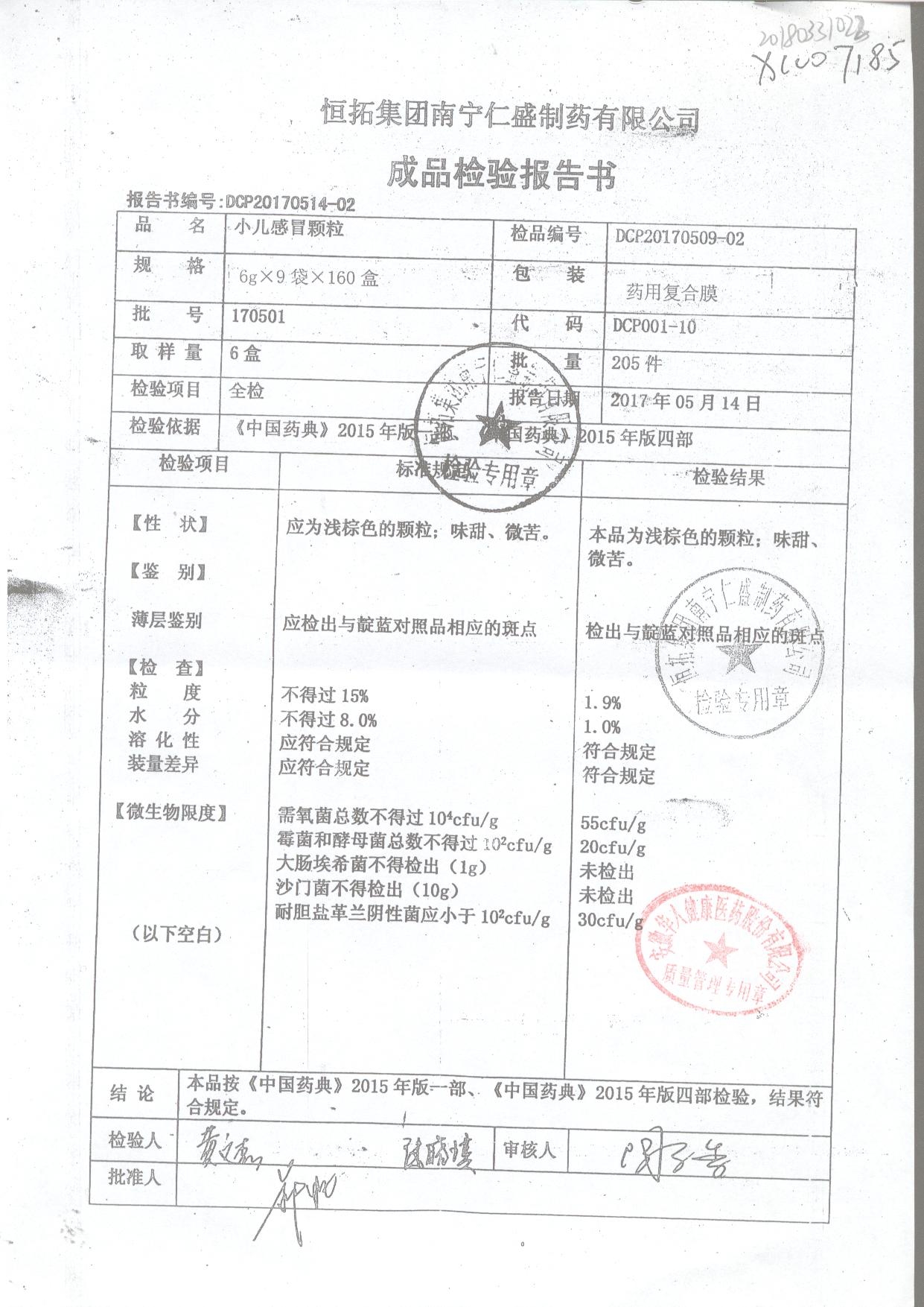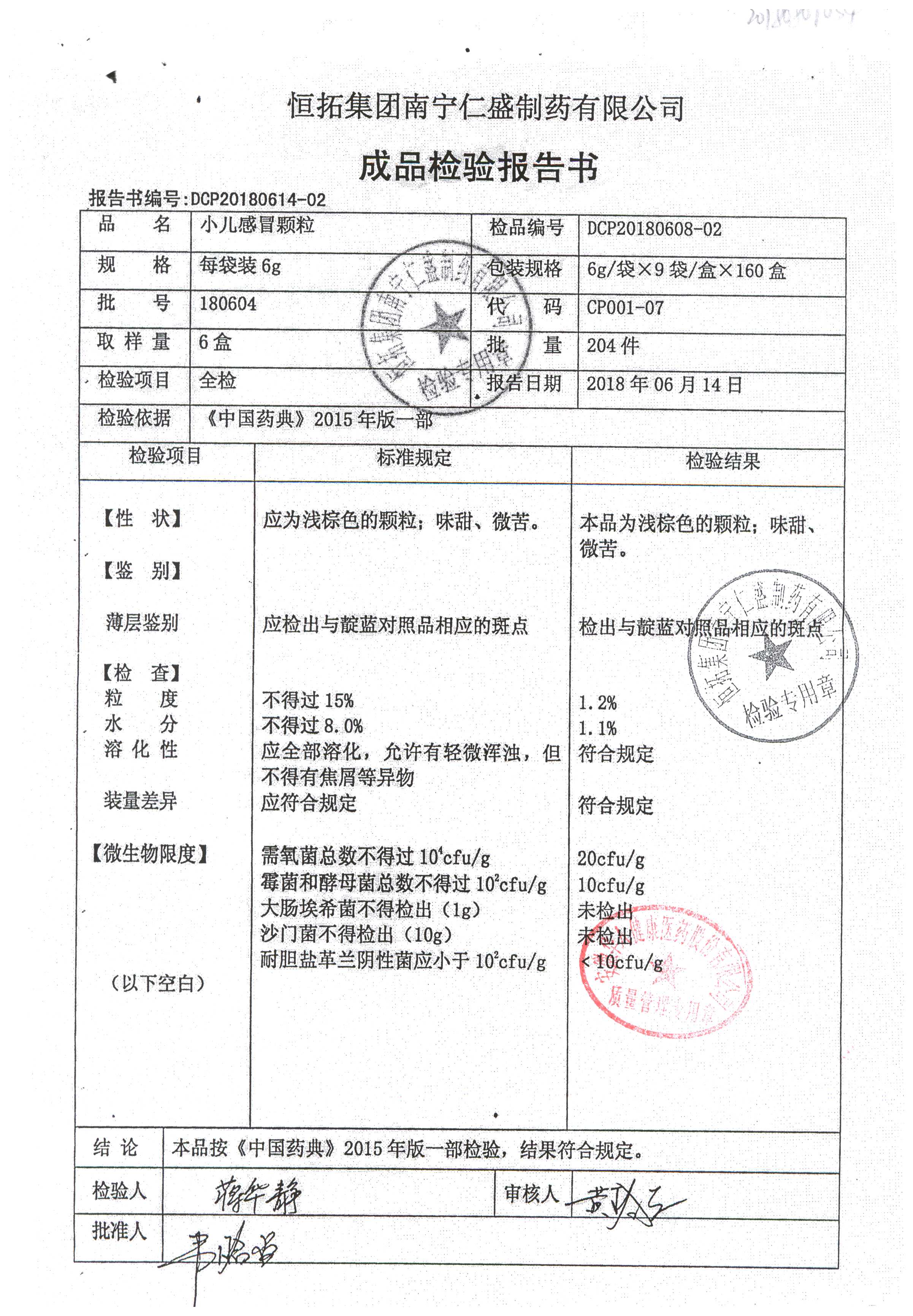 小兒感冒顆粒 | 6g*9袋 | 180401 | 查看詳情 |