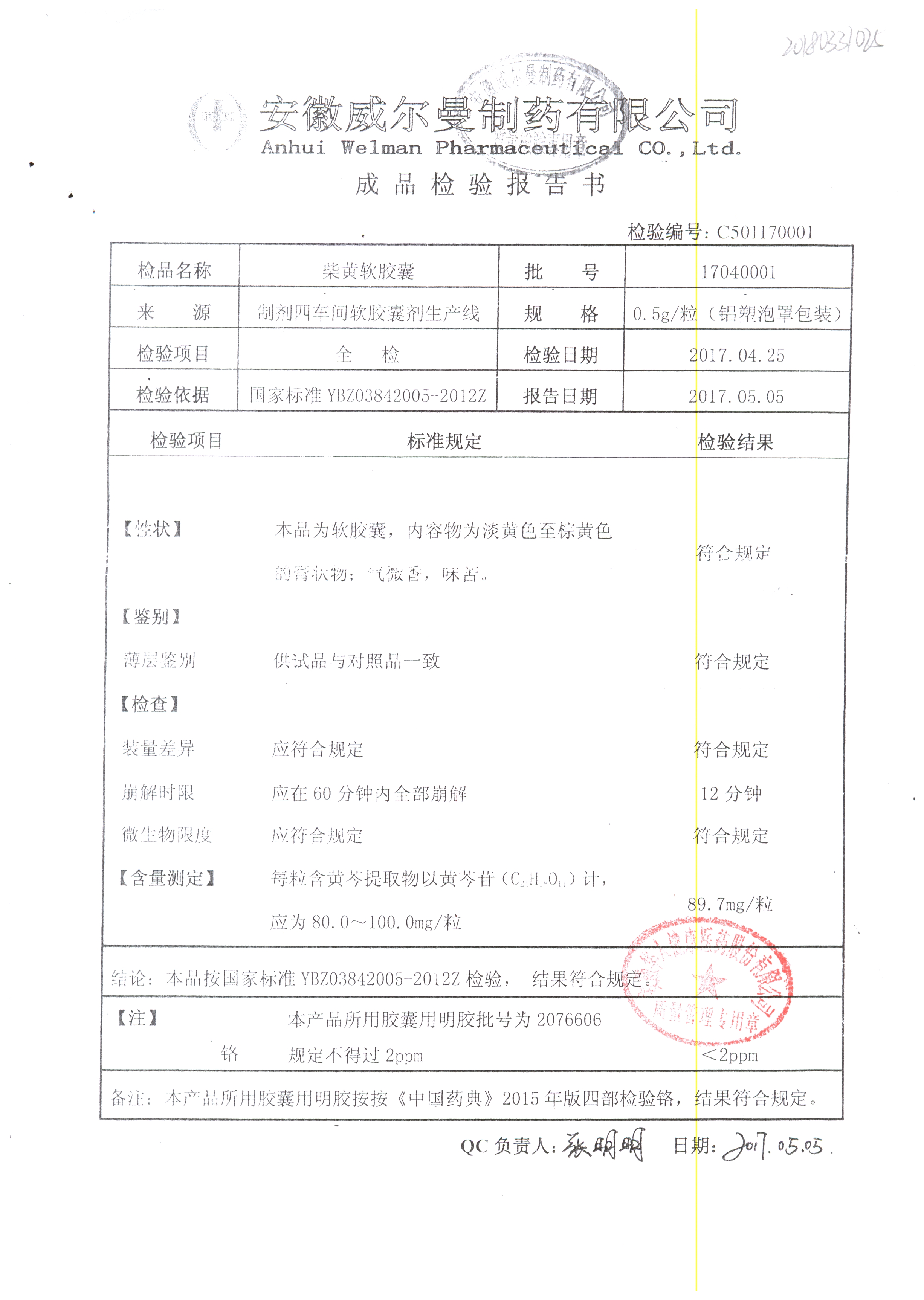 柴黃軟膠囊 0.5g 18050001 查看詳情