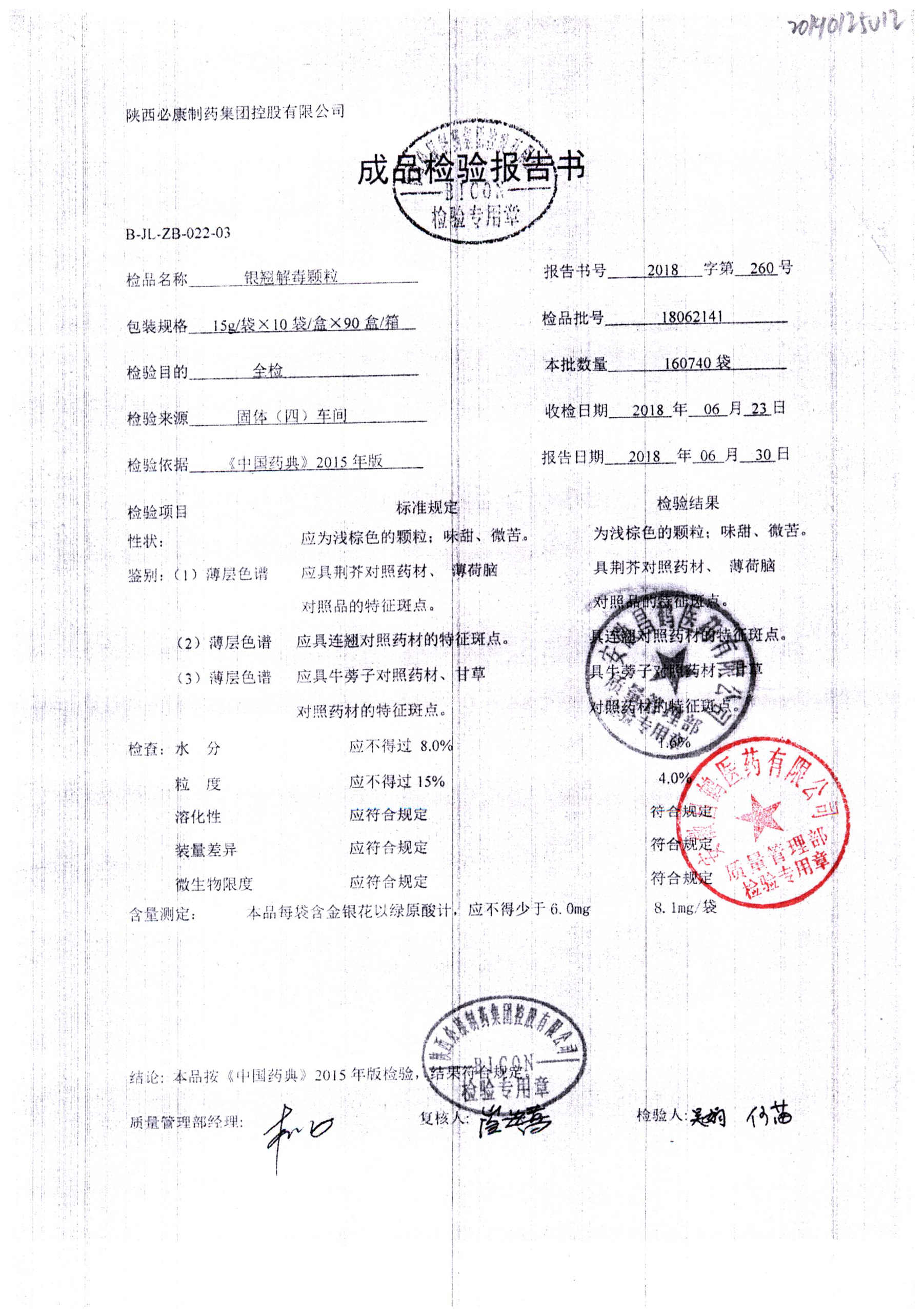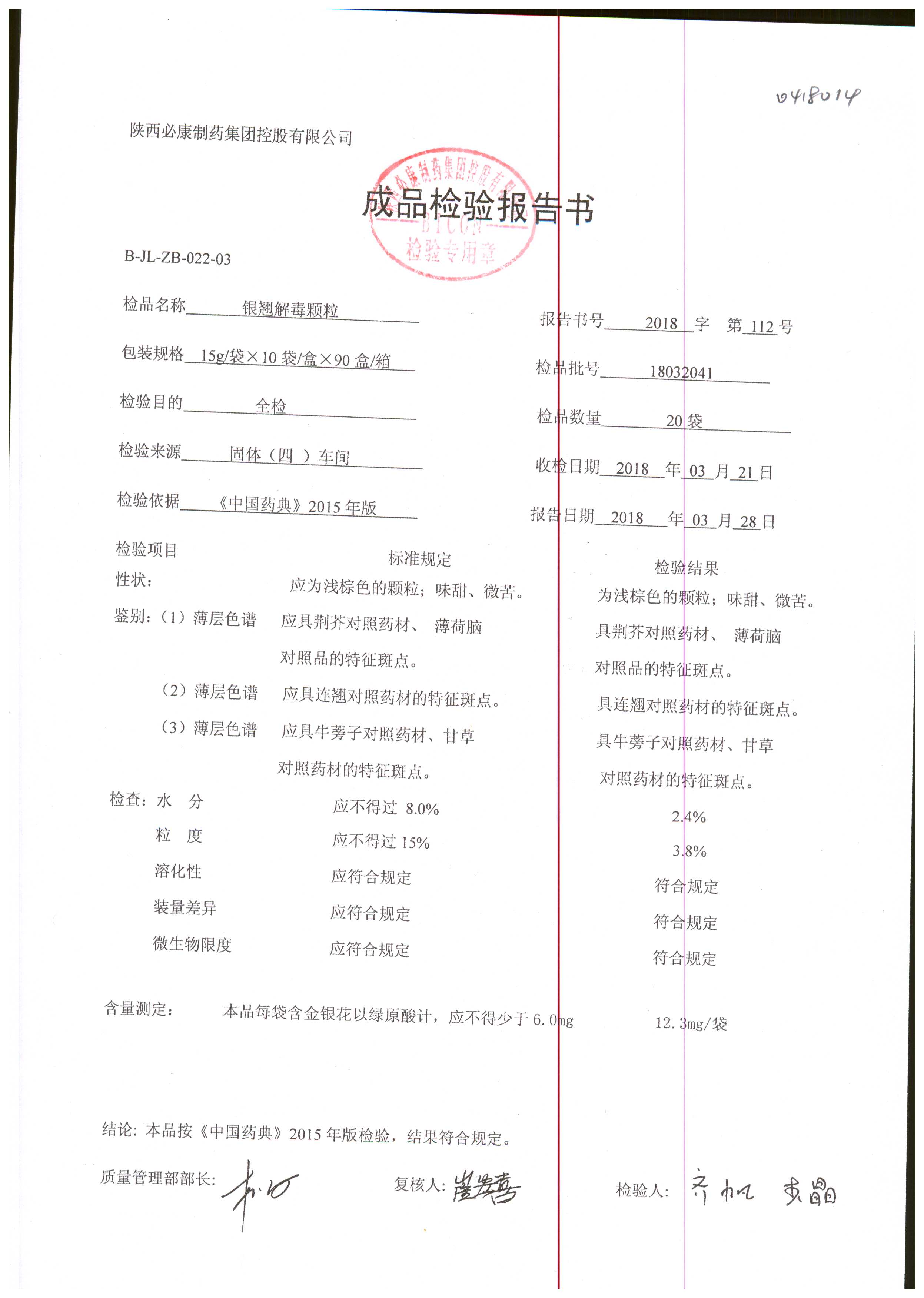名稱(chēng) | 規(guī)格 | 批號(hào) | 藥檢報(bào)告 |