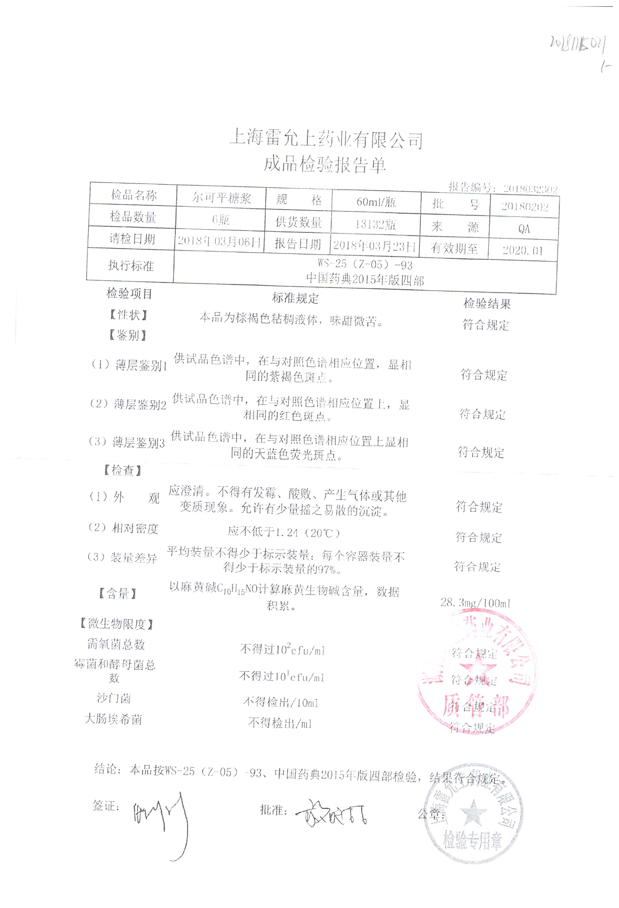 爾可平糖漿 | 60ml | 20180202 | 查看詳情 |