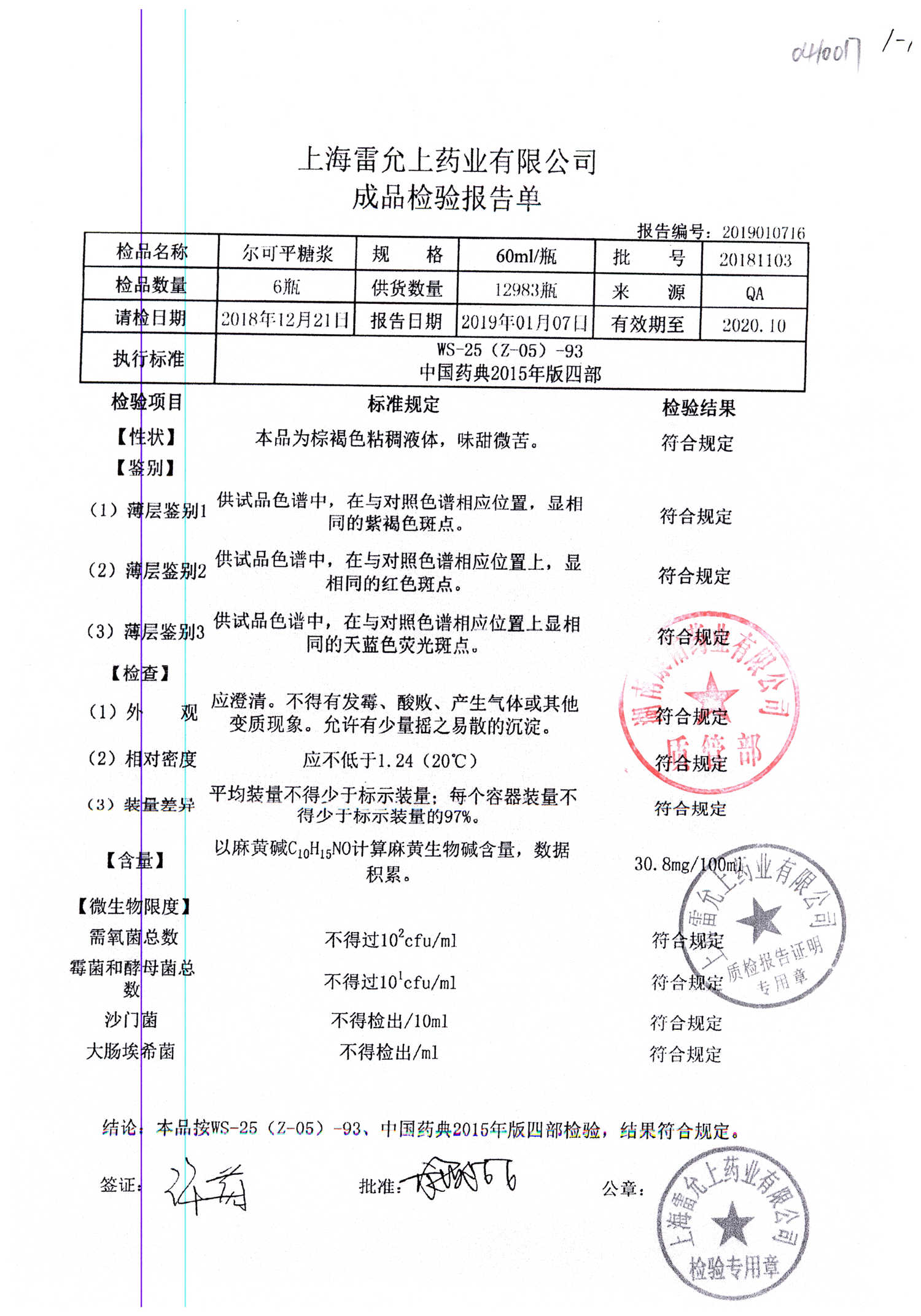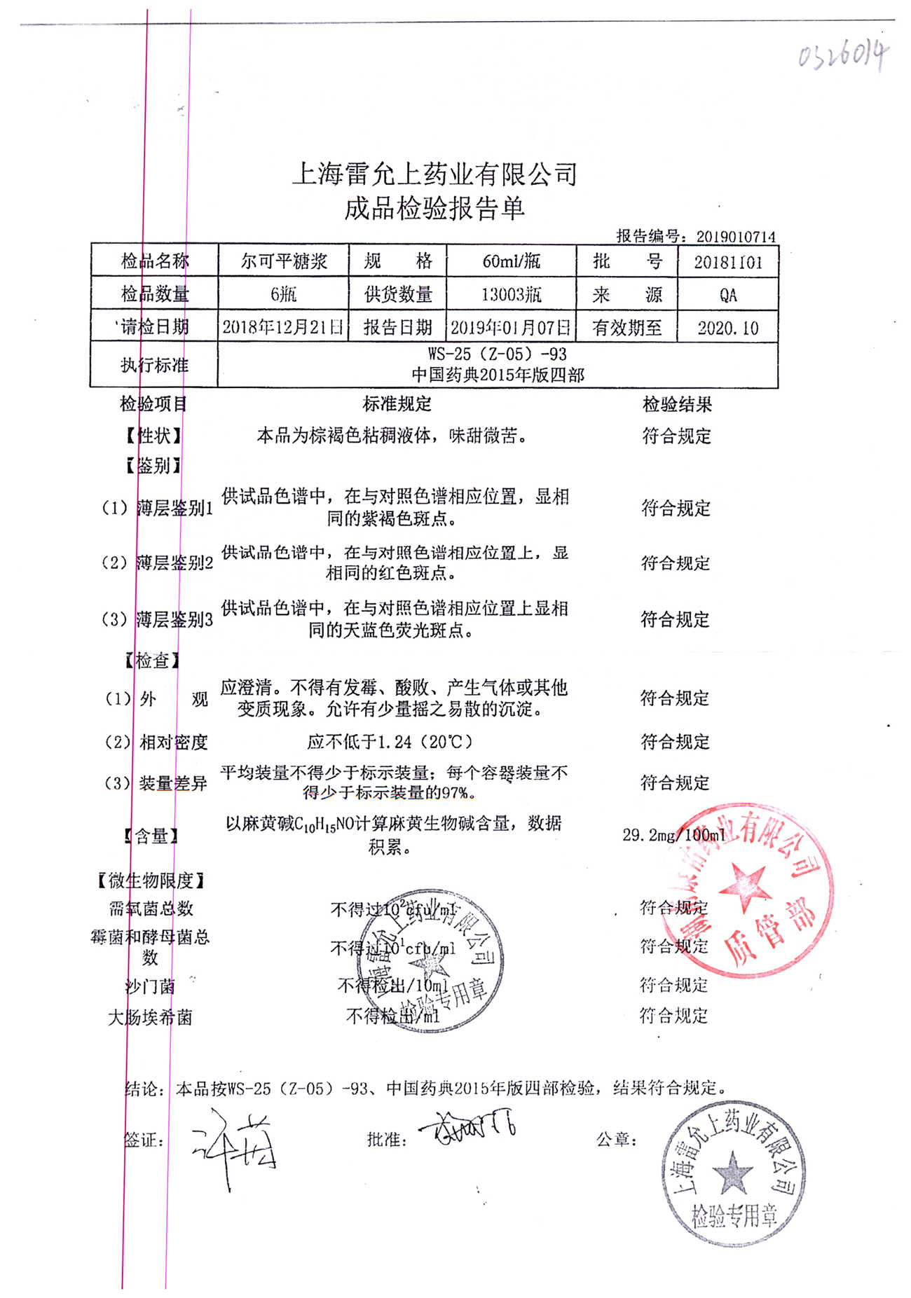 名稱 | 規(guī)格 | 批號(hào) | 藥檢報(bào)告 |