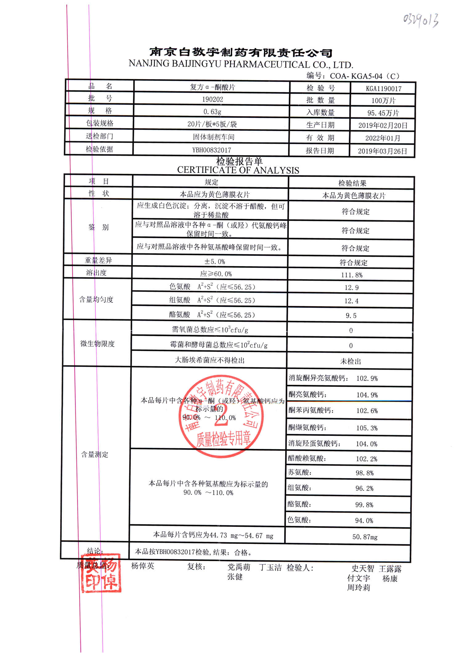 復(fù)方a-酮酸片 | 0.63g*20s*5板 | 190202 | 查看詳情 |