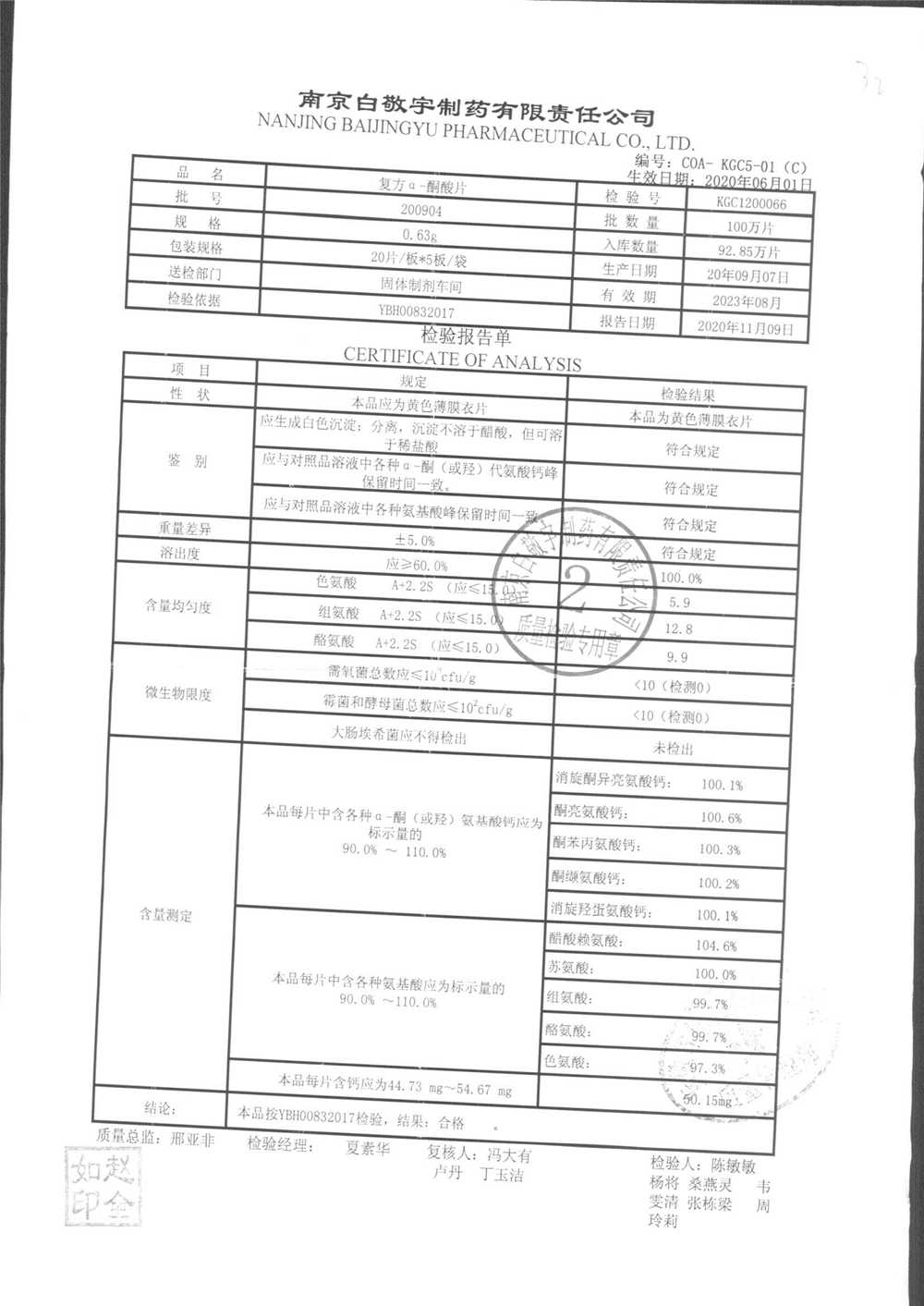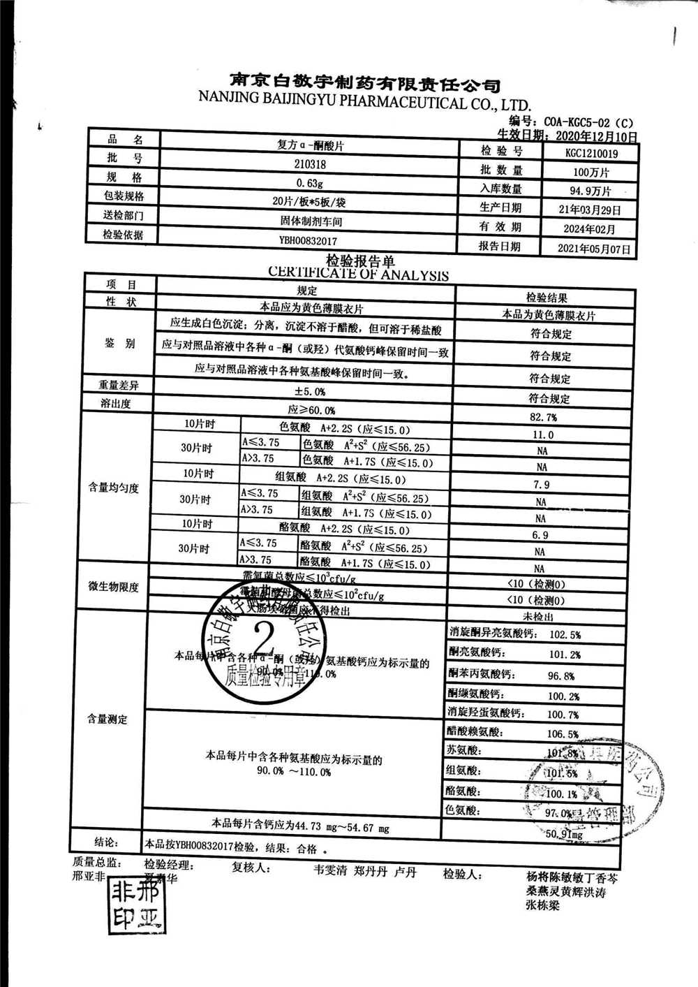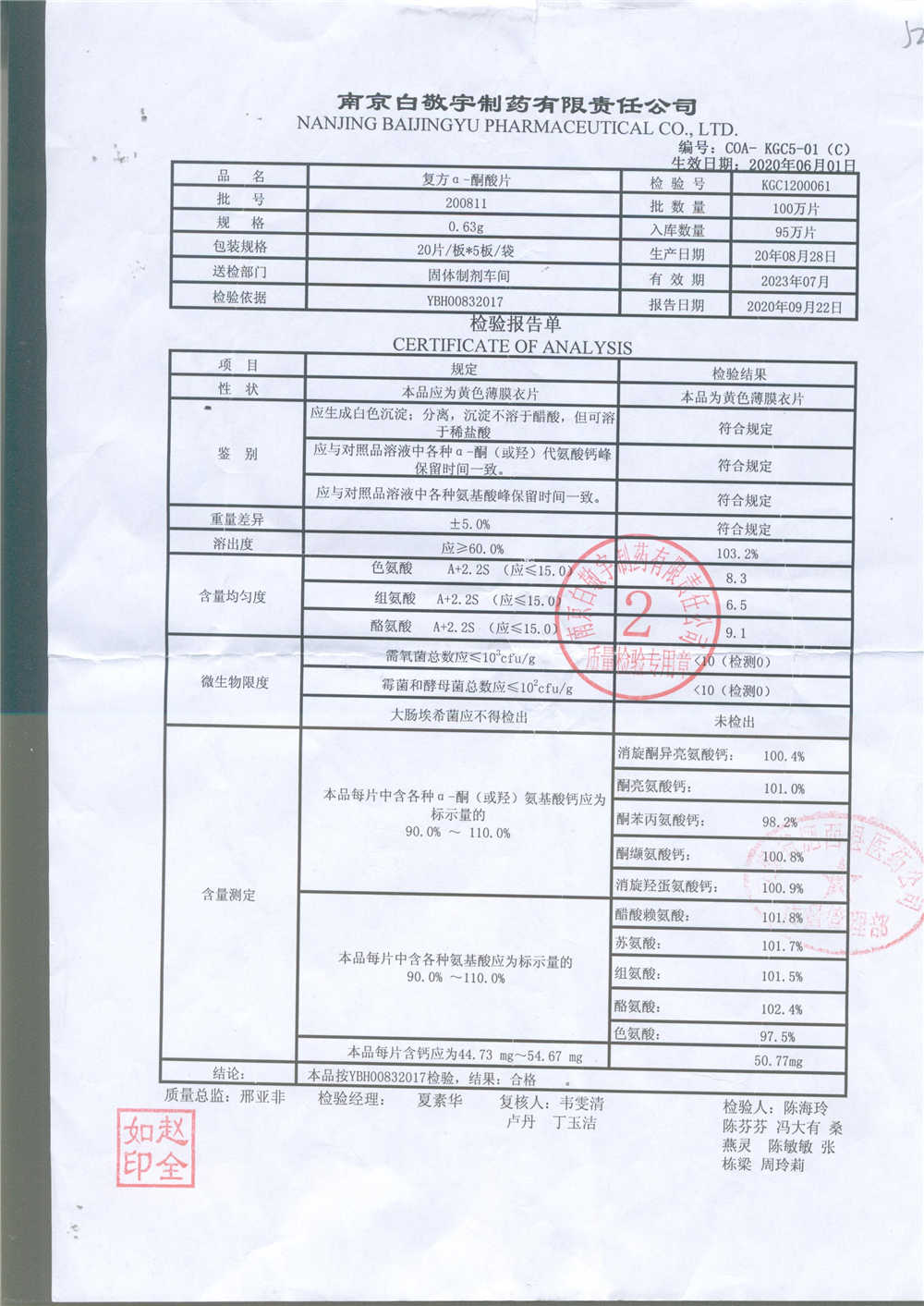 復(fù)方a-酮酸片 | 0.63g*20s*5板 | 210701 | 查看詳情 |