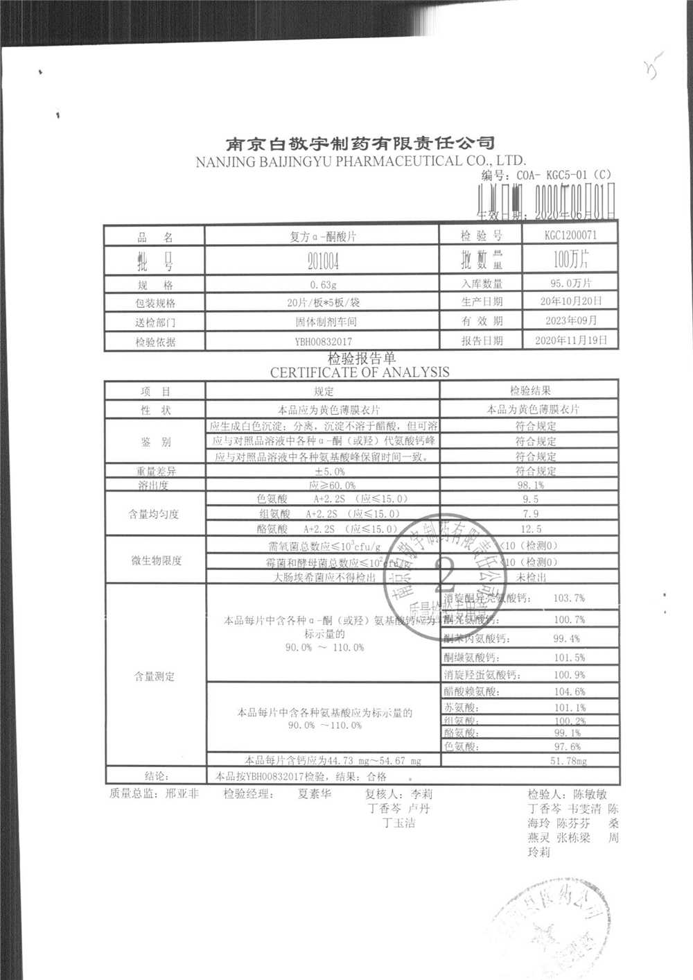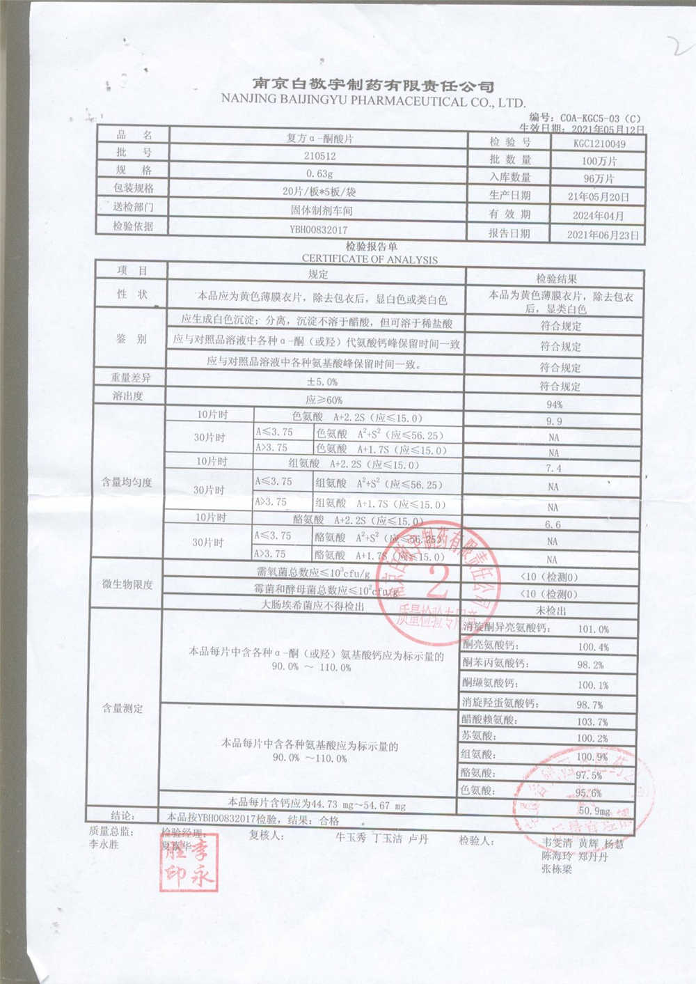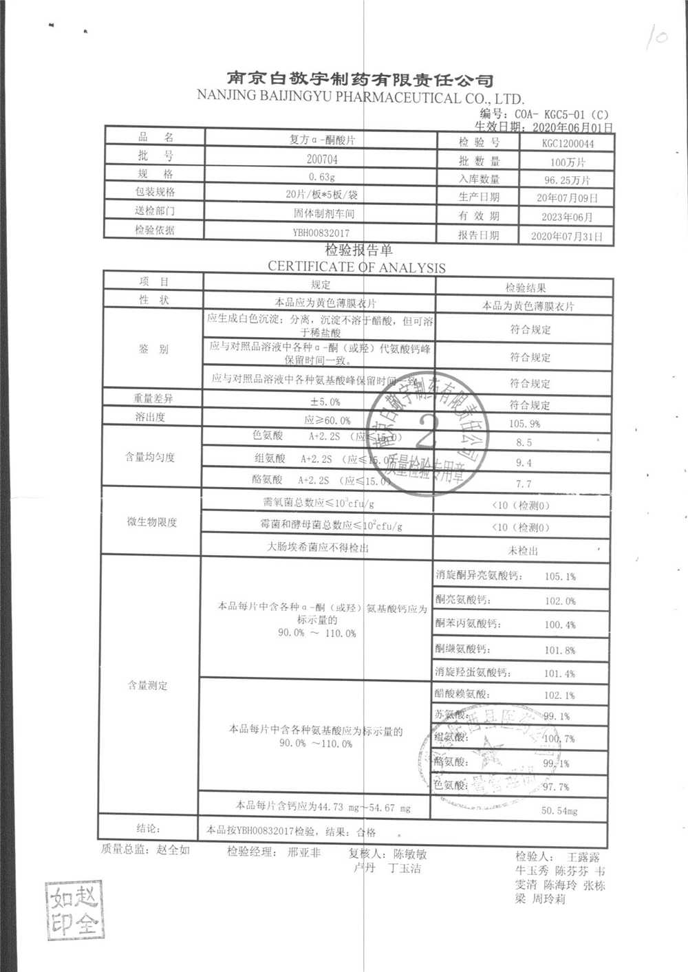 復(fù)方a-酮酸片 | 0.63g*20s*5板 | 210701 | 查看詳情 |