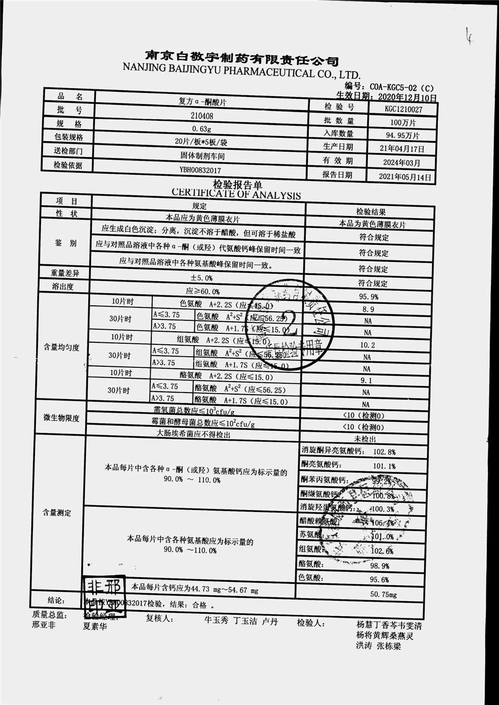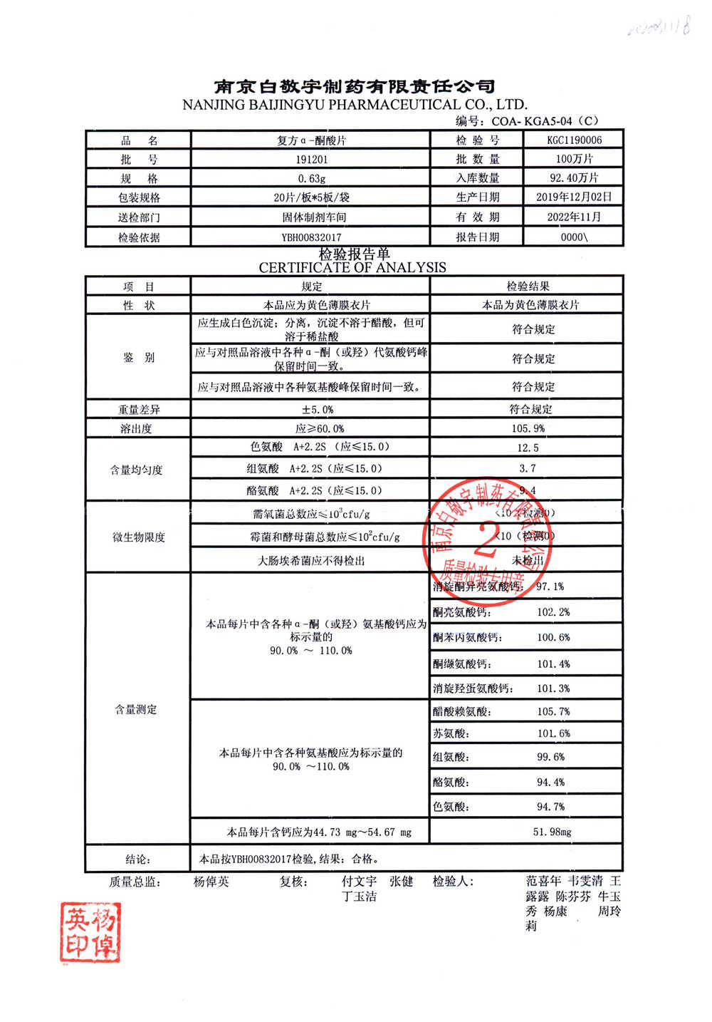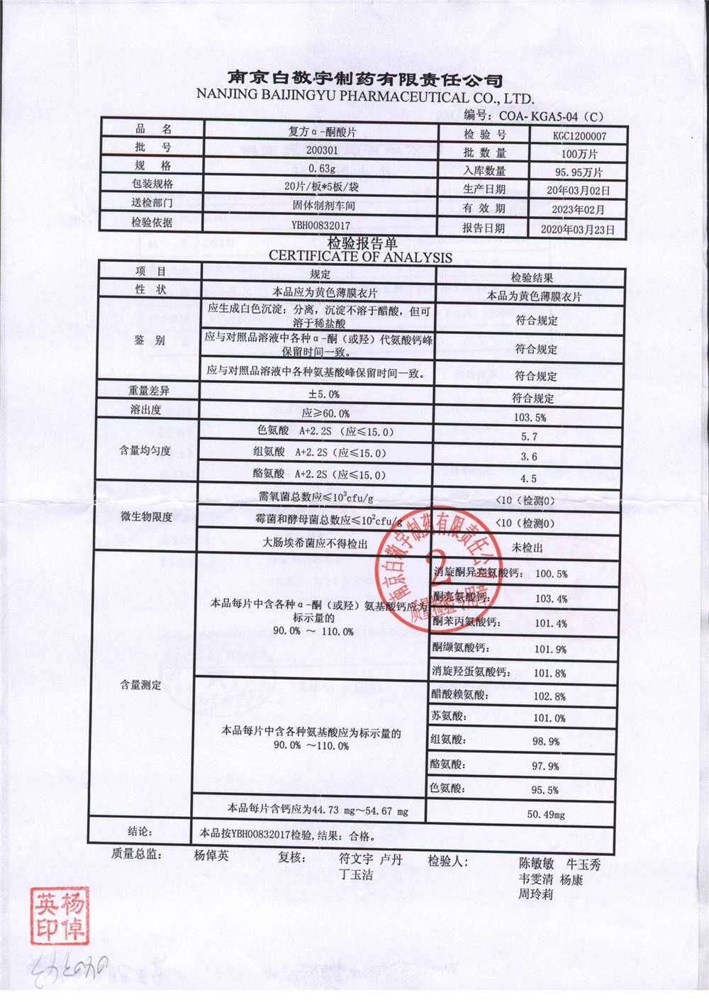復(fù)方a-酮酸片 | 0.63g*20s*5板 | 210408 | 查看詳情 |