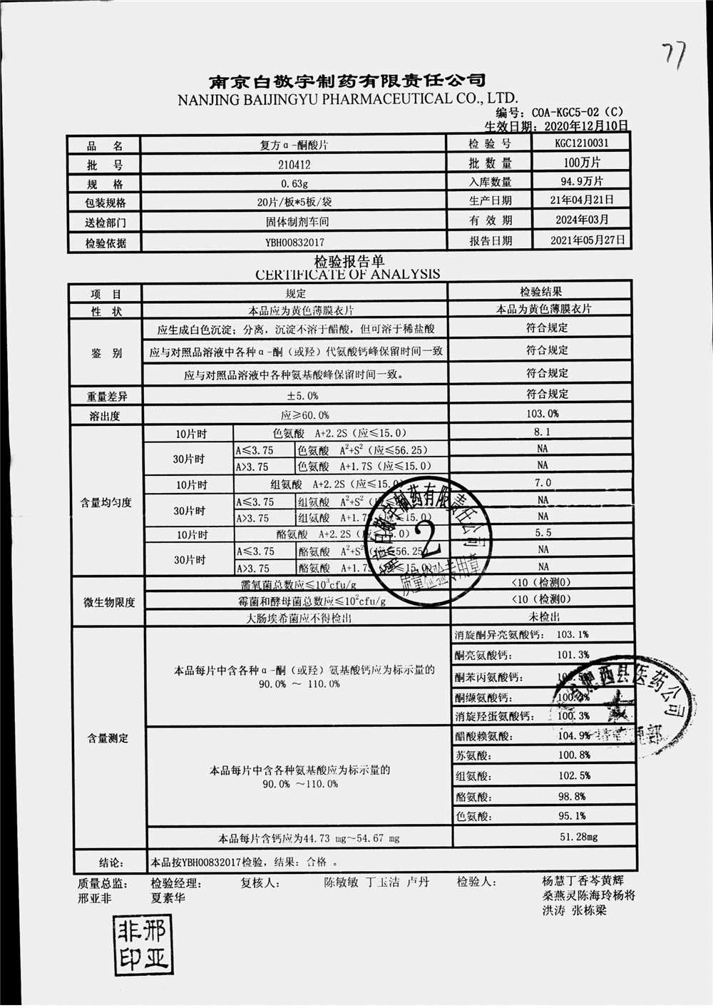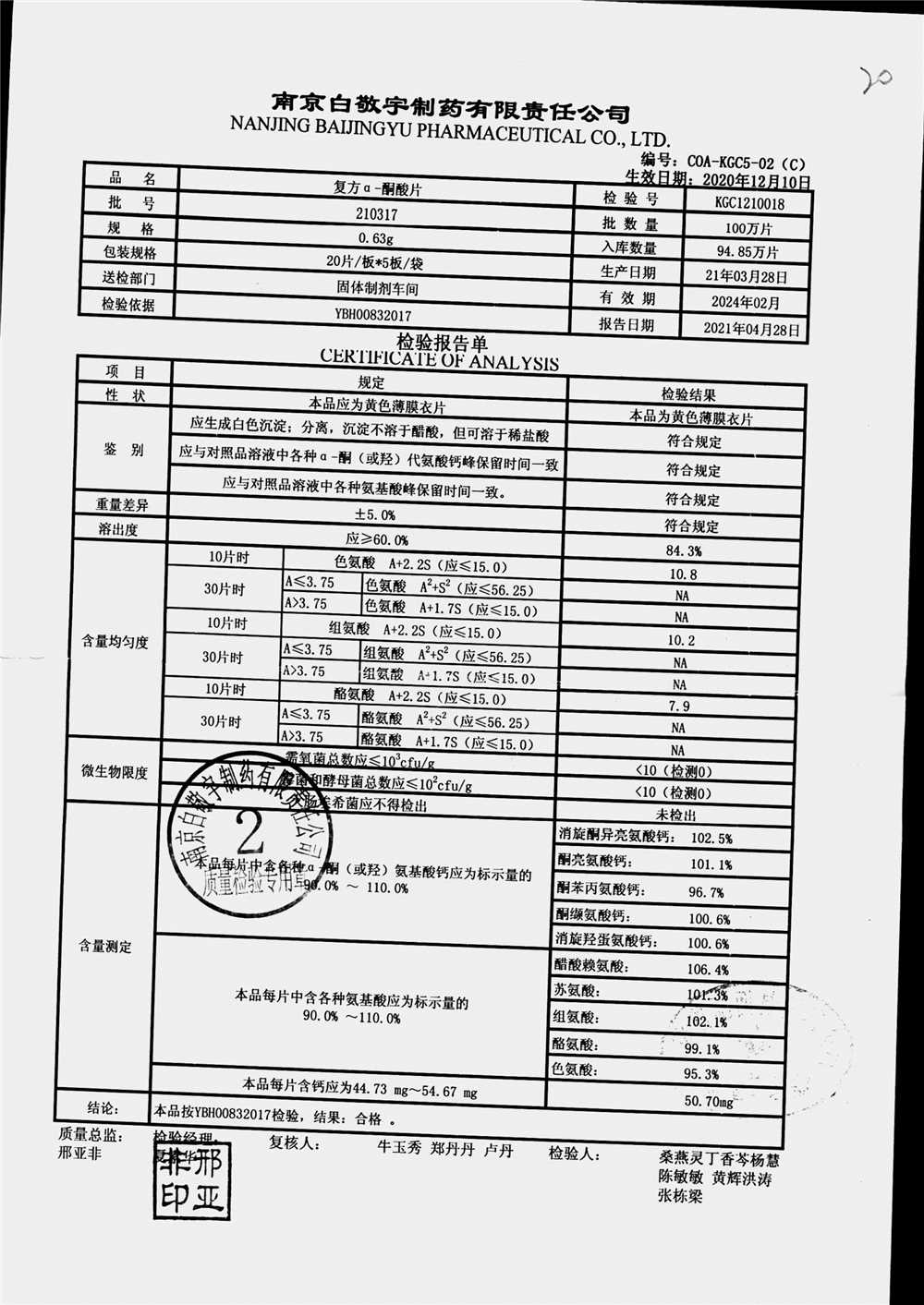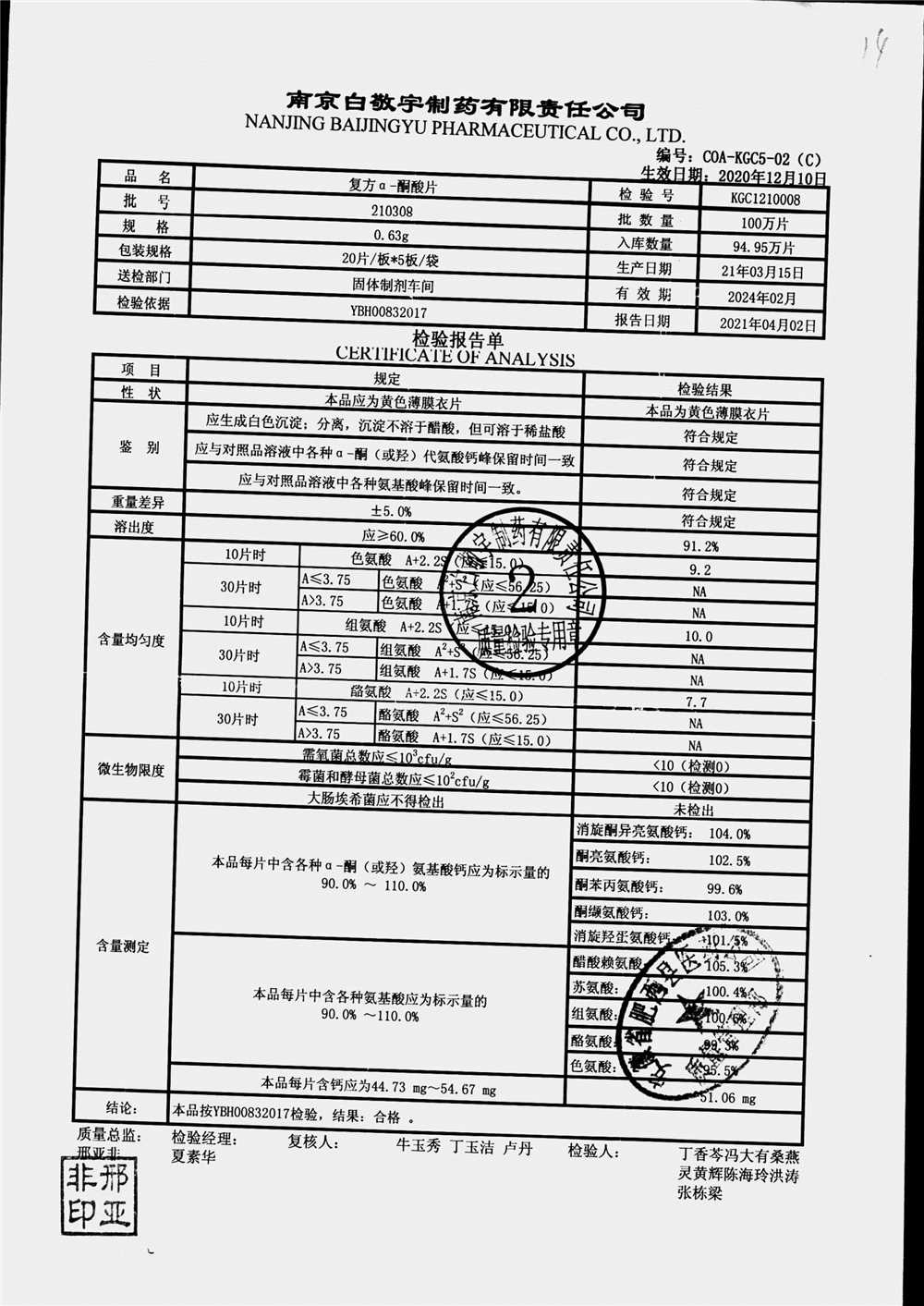 復(fù)方a-酮酸片 | 0.63g*20s*5板 | 210412 | 查看詳情 |