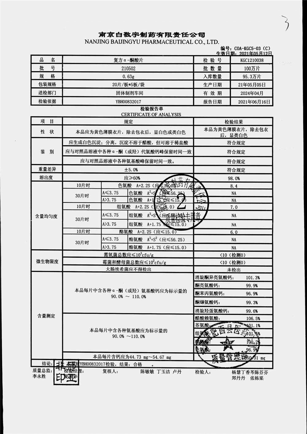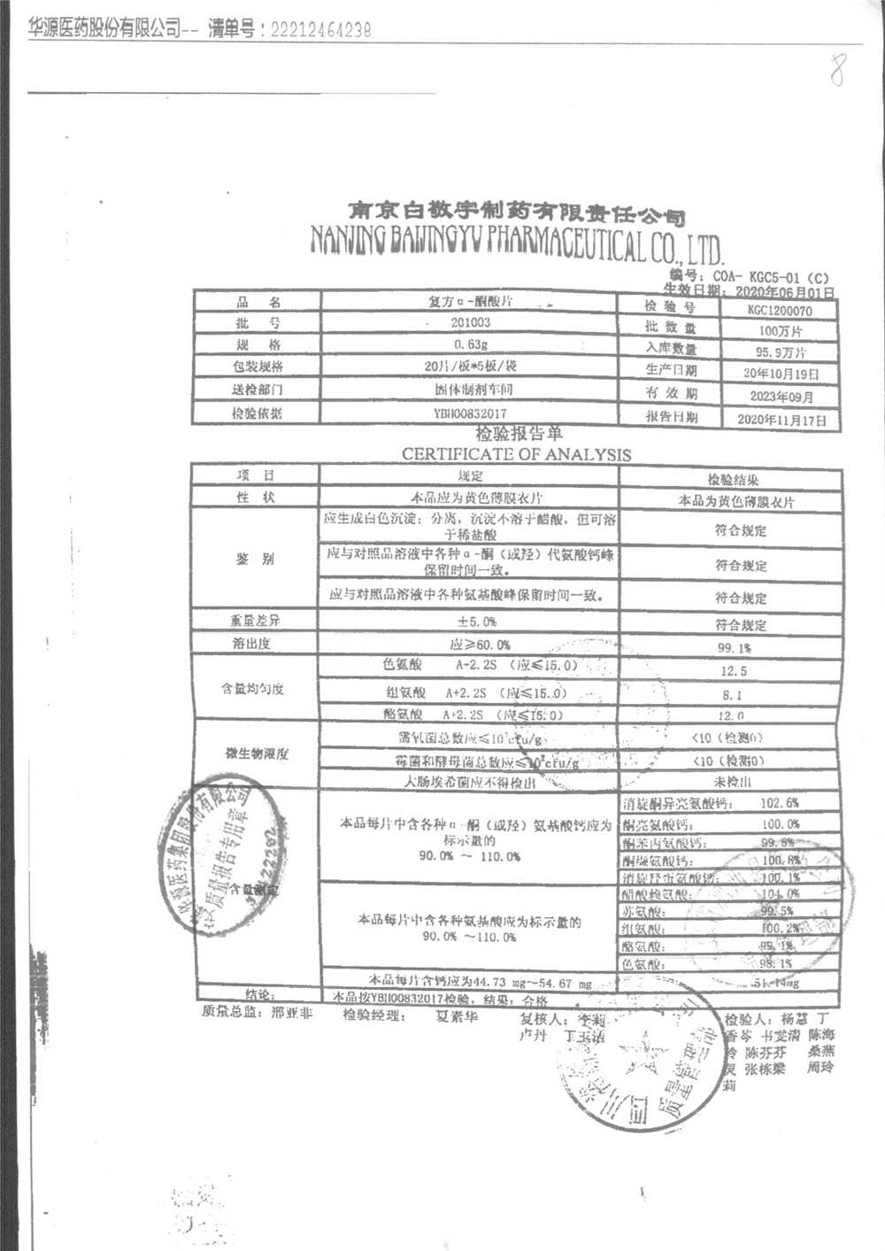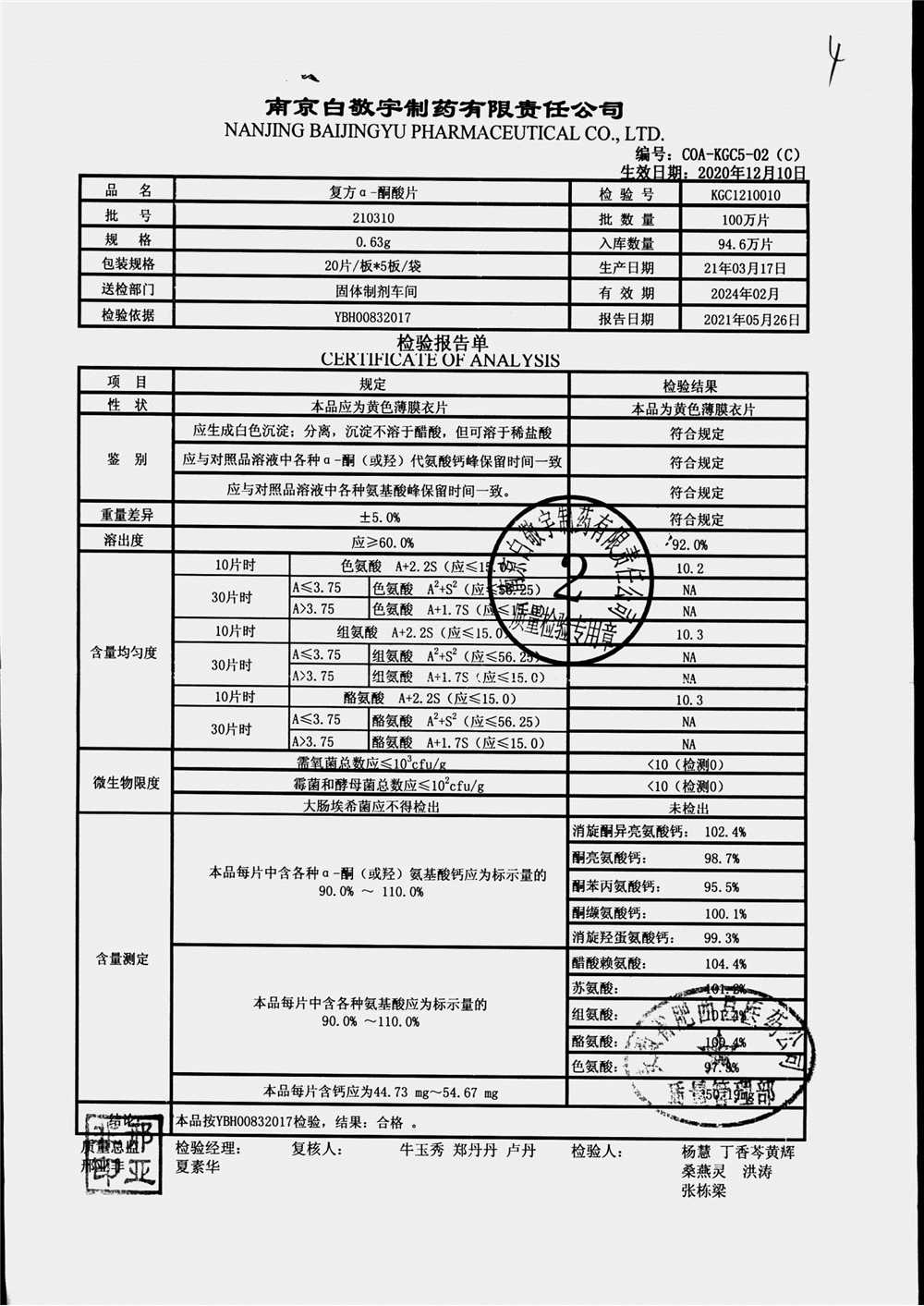 復(fù)方a-酮酸片 | 0.63g*20s*5板 | 210412 | 查看詳情 |