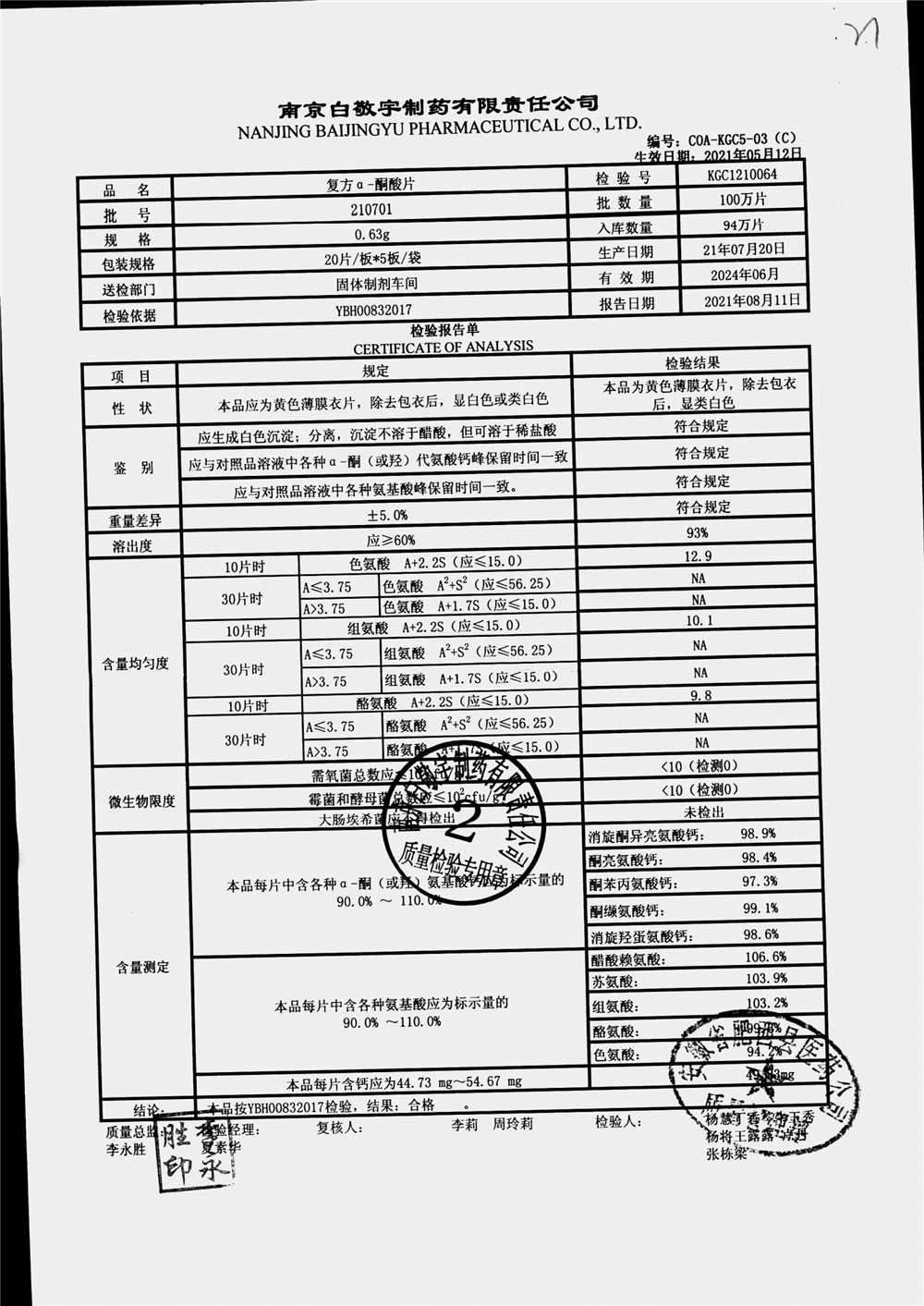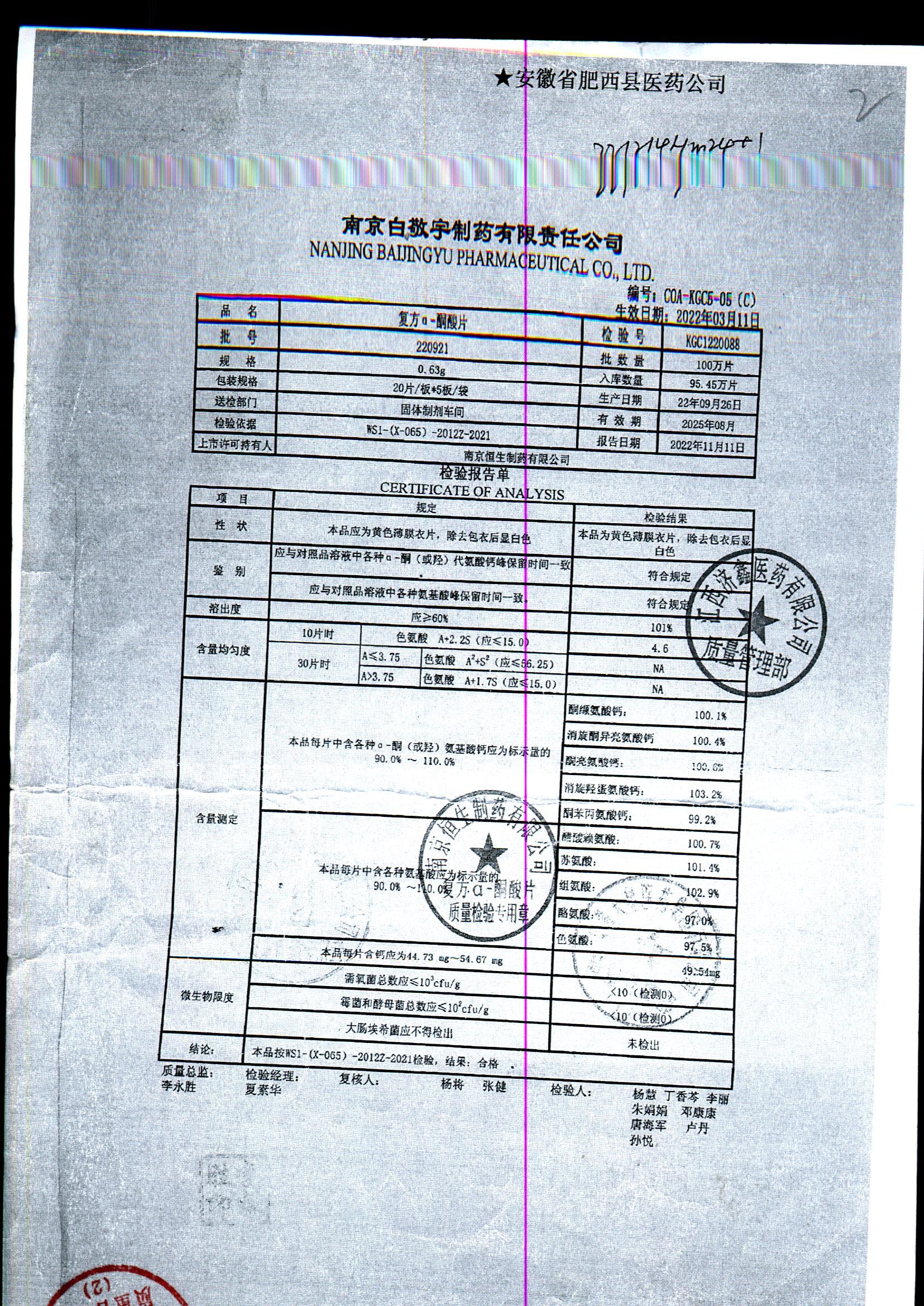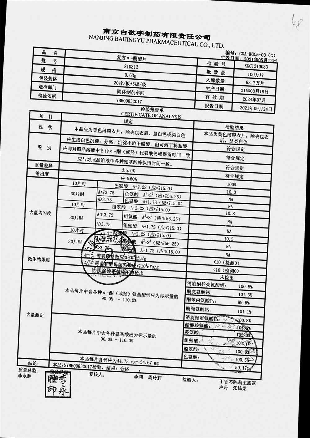復(fù)方a-酮酸片 | 0.63g*20s*5板 | 210801 | 查看詳情 |