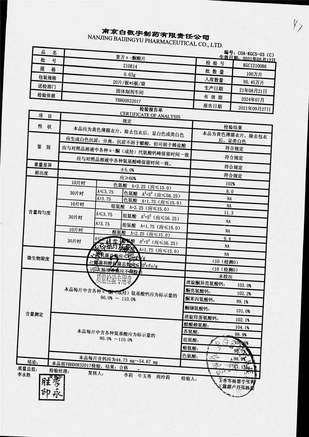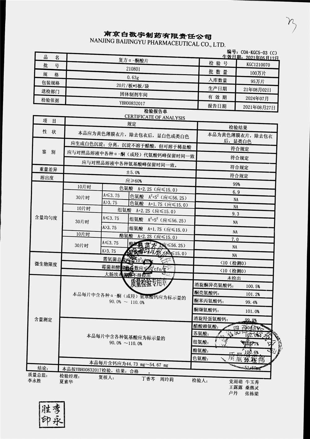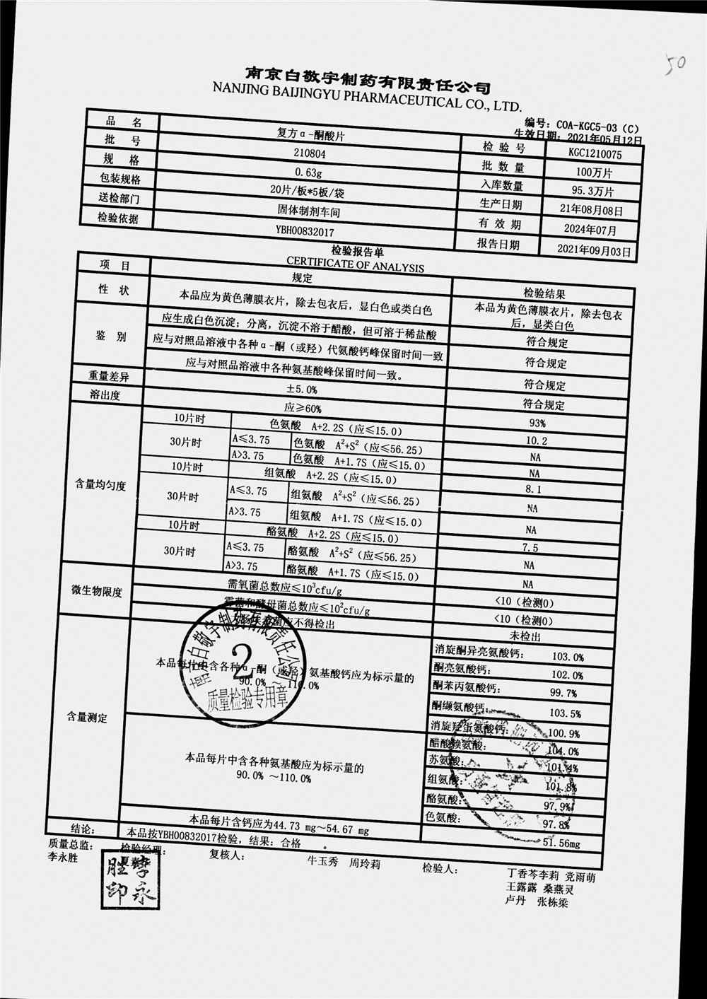 復(fù)方a-酮酸片 | 0.63g*20s*5板 | 210801 | 查看詳情 |