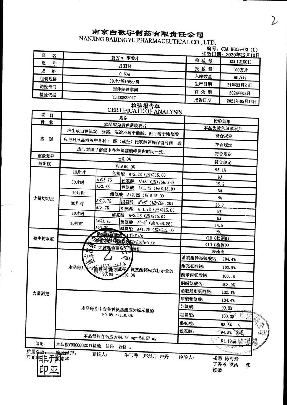 復(fù)方a-酮酸片 | 0.63g*20s*5板 | 210317 | 查看詳情 |