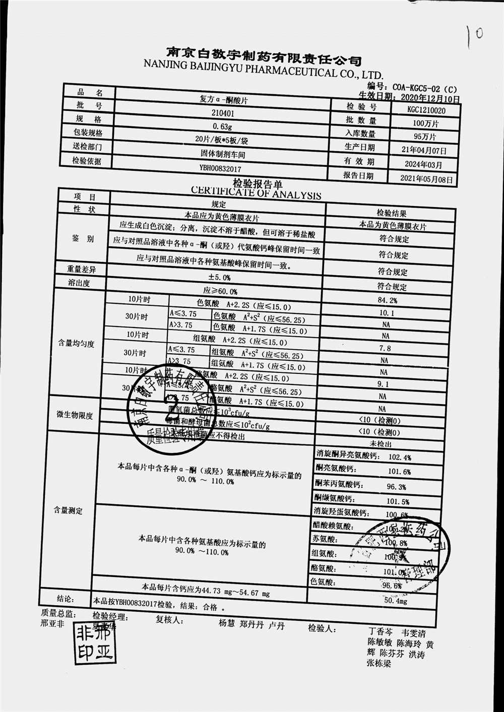 復(fù)方a-酮酸片 | 0.63g*20s*5板 | 210401 | 查看詳情 |