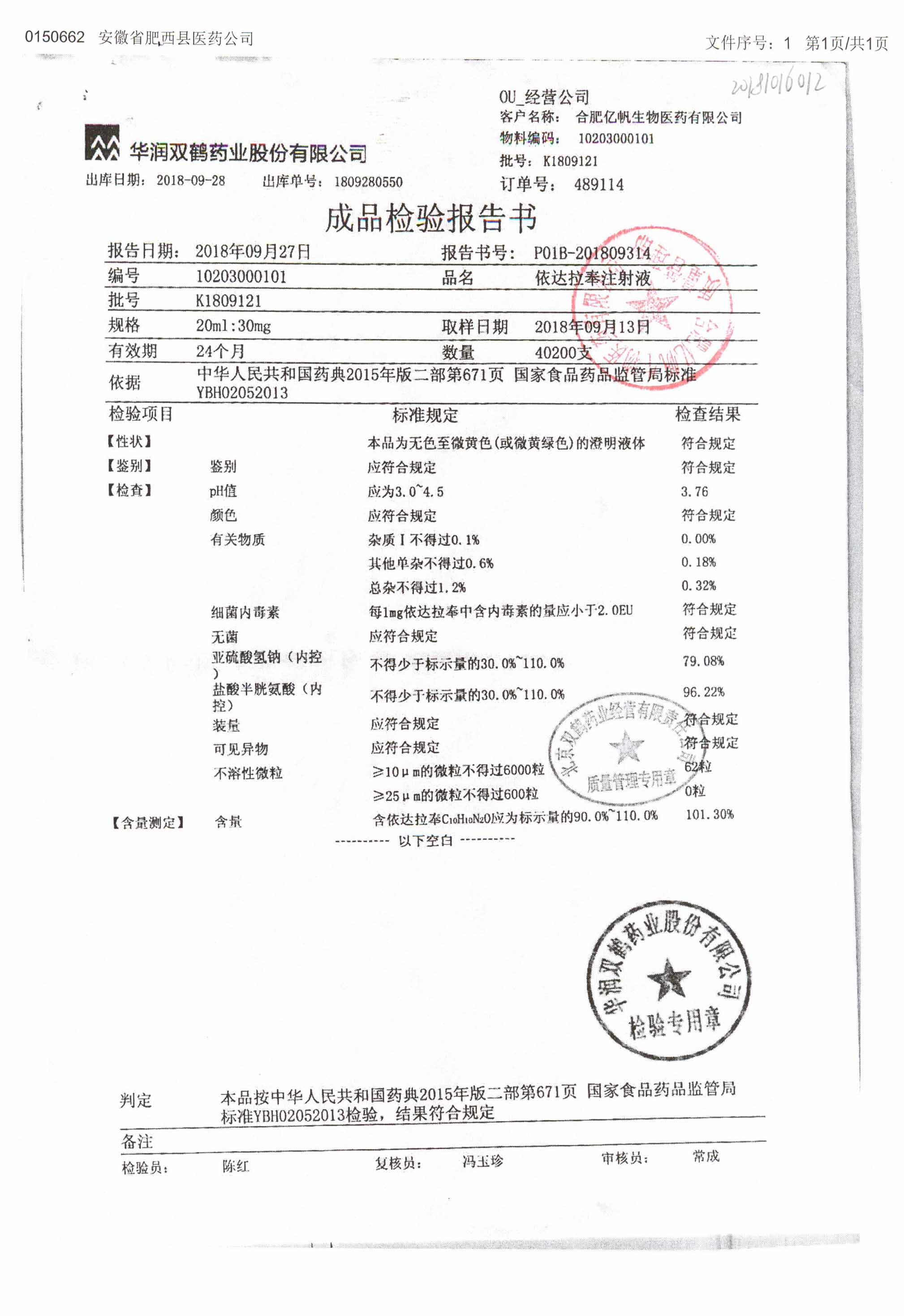 依達(dá)拉奉注射液 | 20ml:30mg | K1809121 | 查看詳情 |