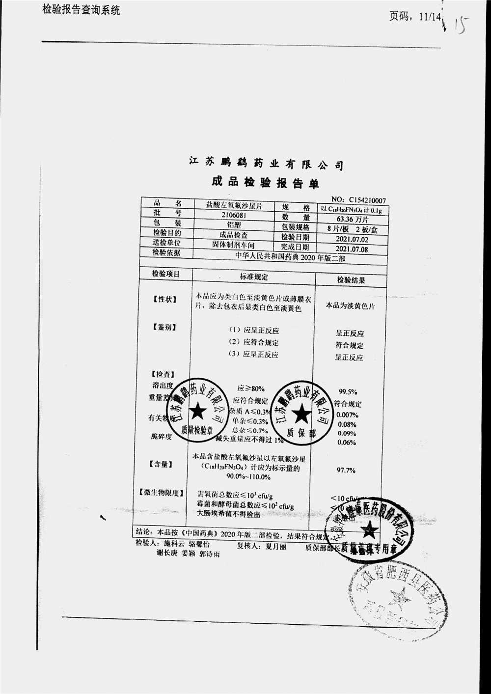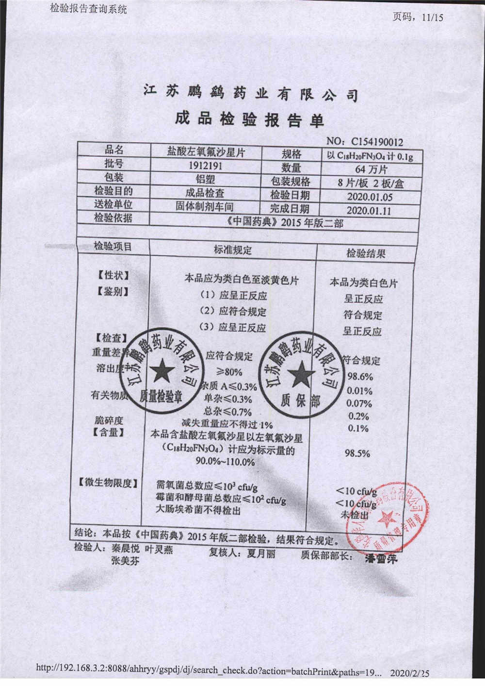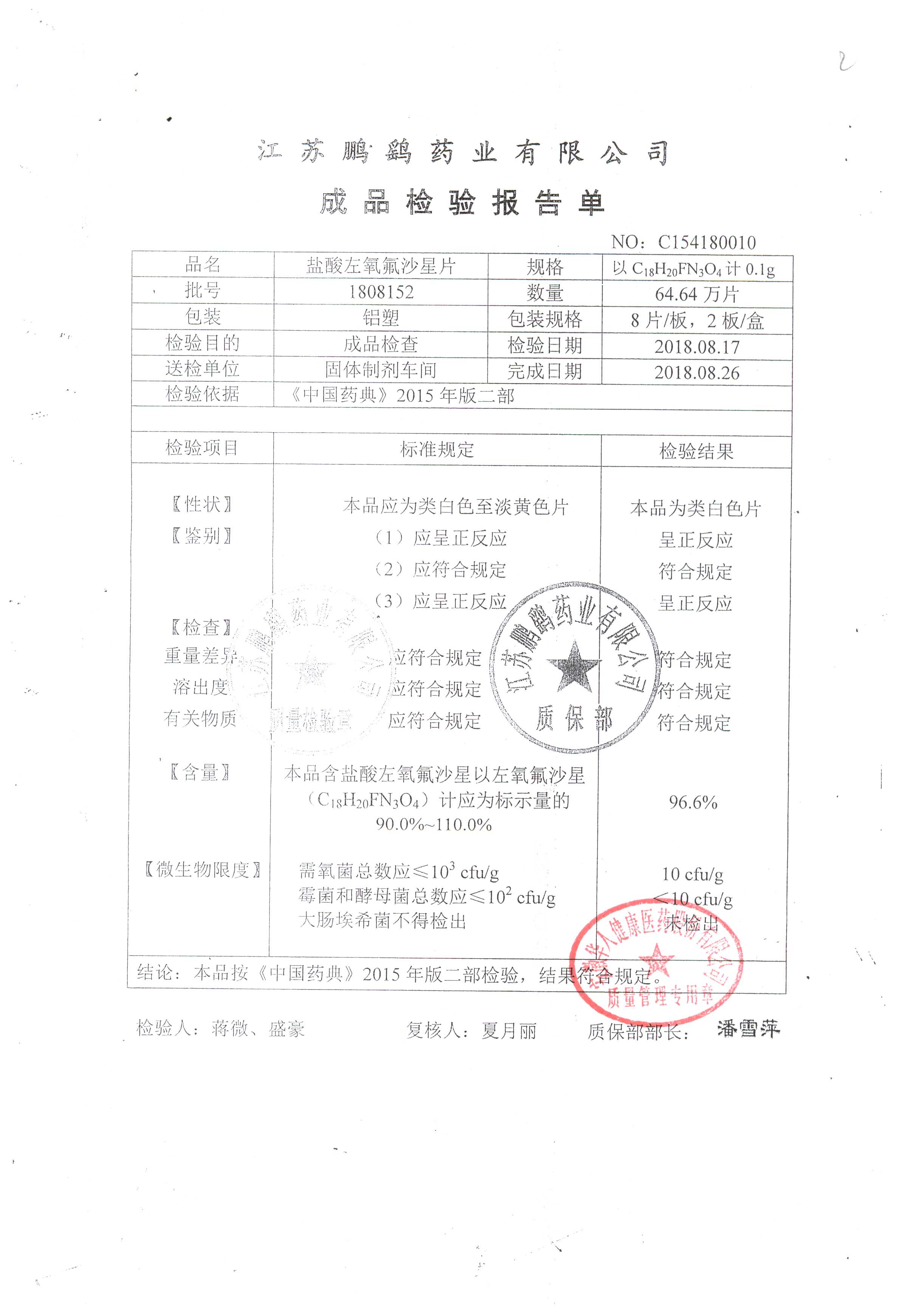 鹽酸左氧氟沙星片 | 16s | 2012071 | 查看詳情 |