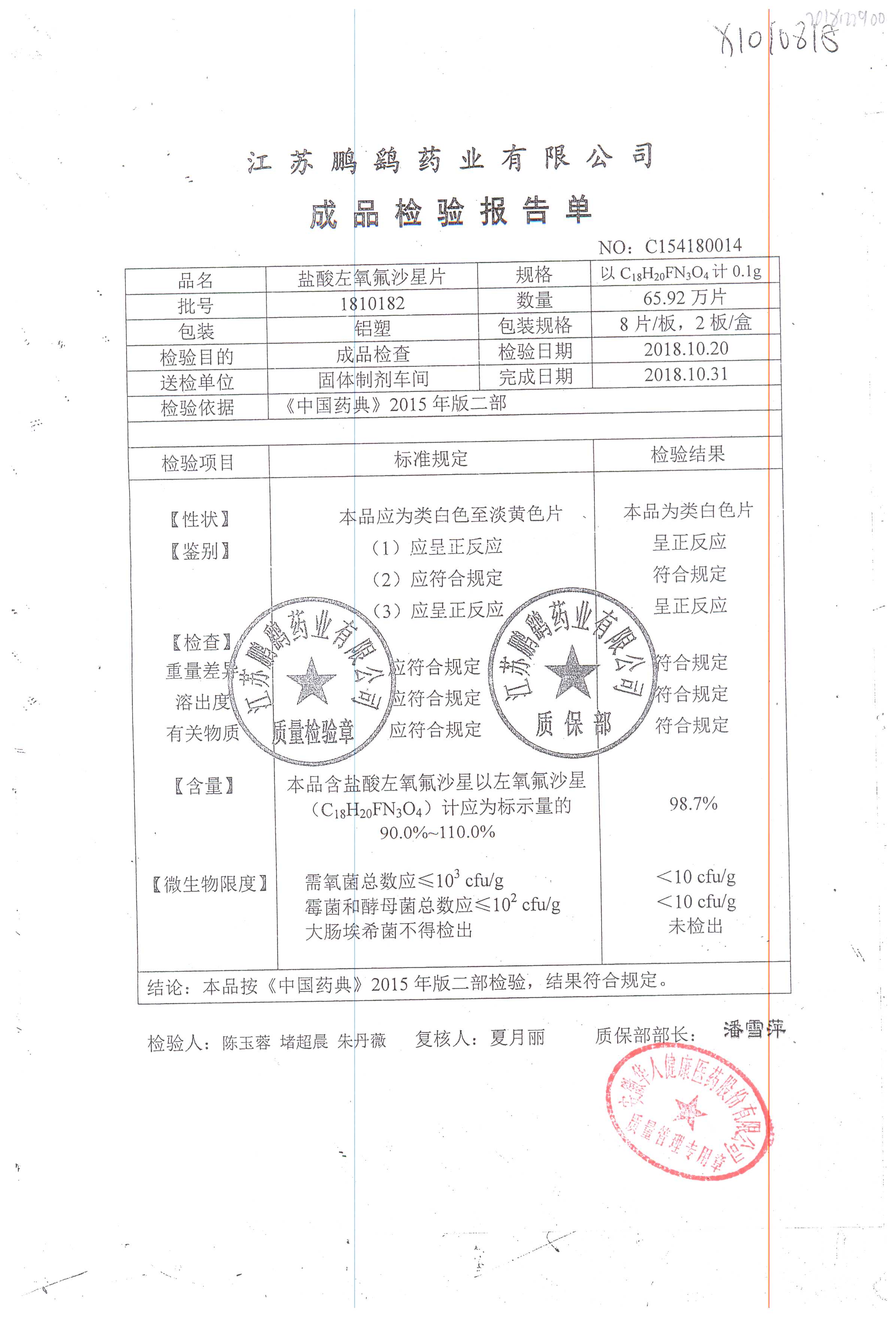 鹽酸左氧氟沙星片 | 16s | 1804021 | 查看詳情 |