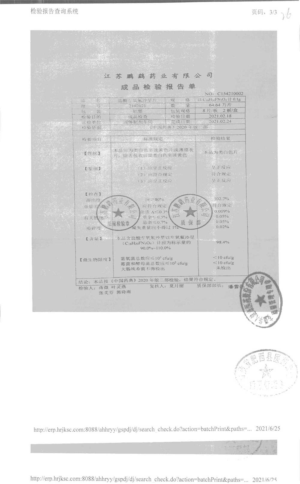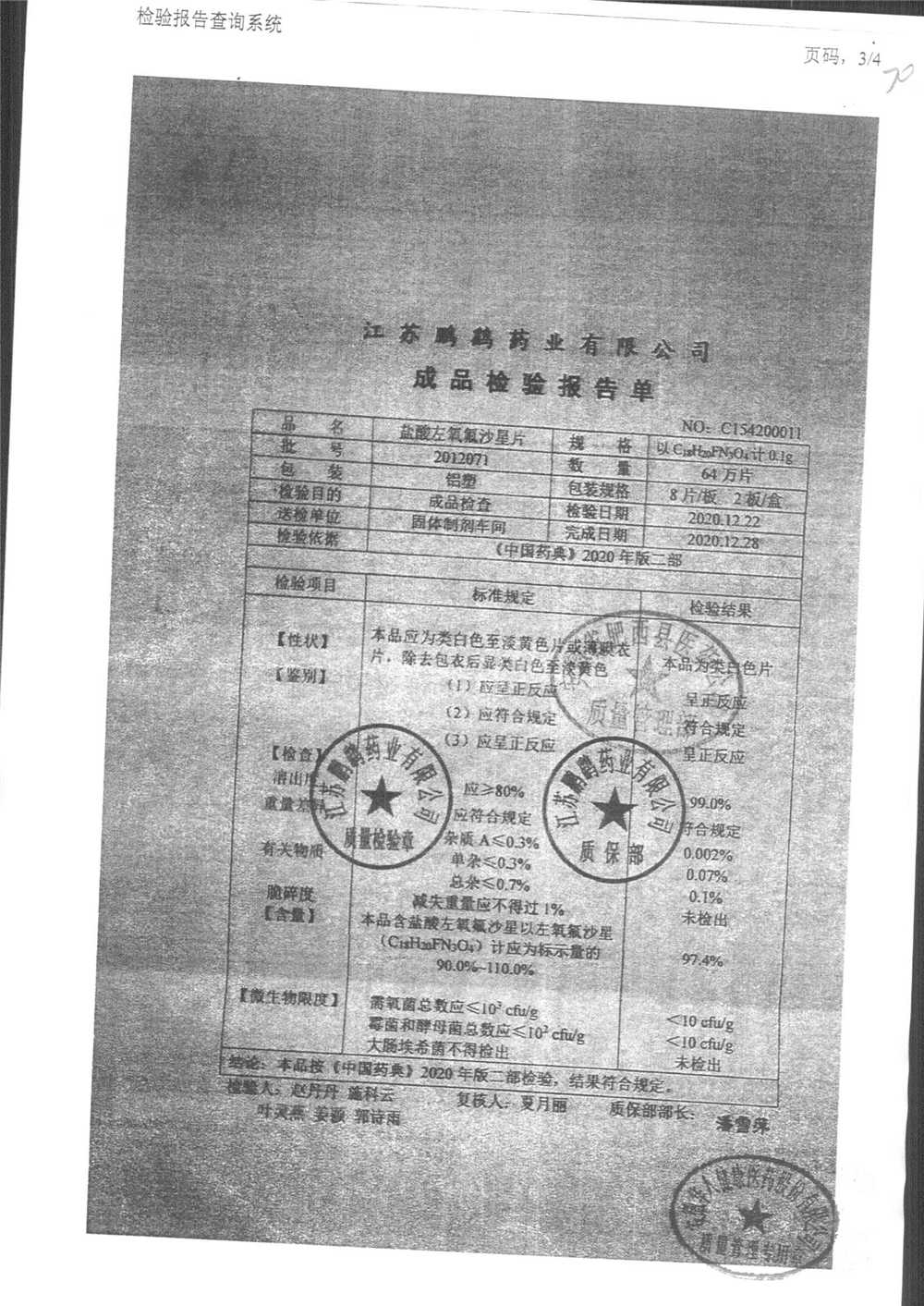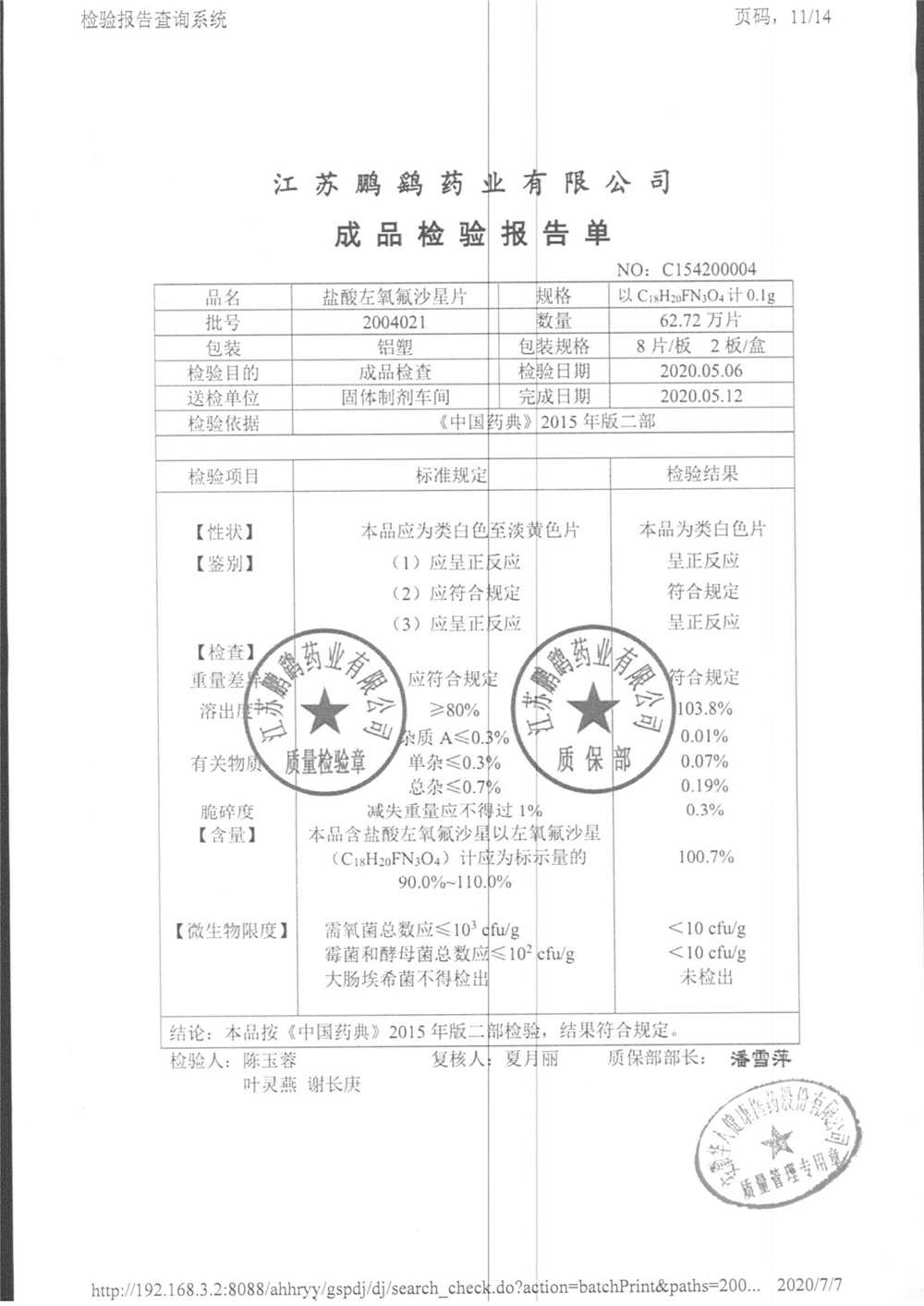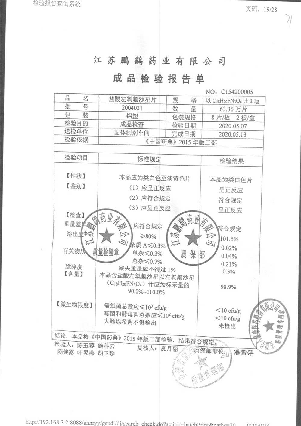 鹽酸左氧氟沙星片 | 16s | 2004021 | 查看詳情 |