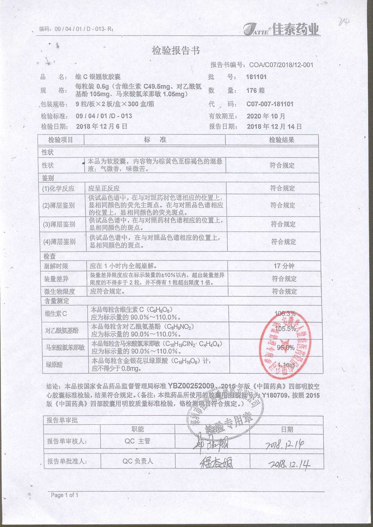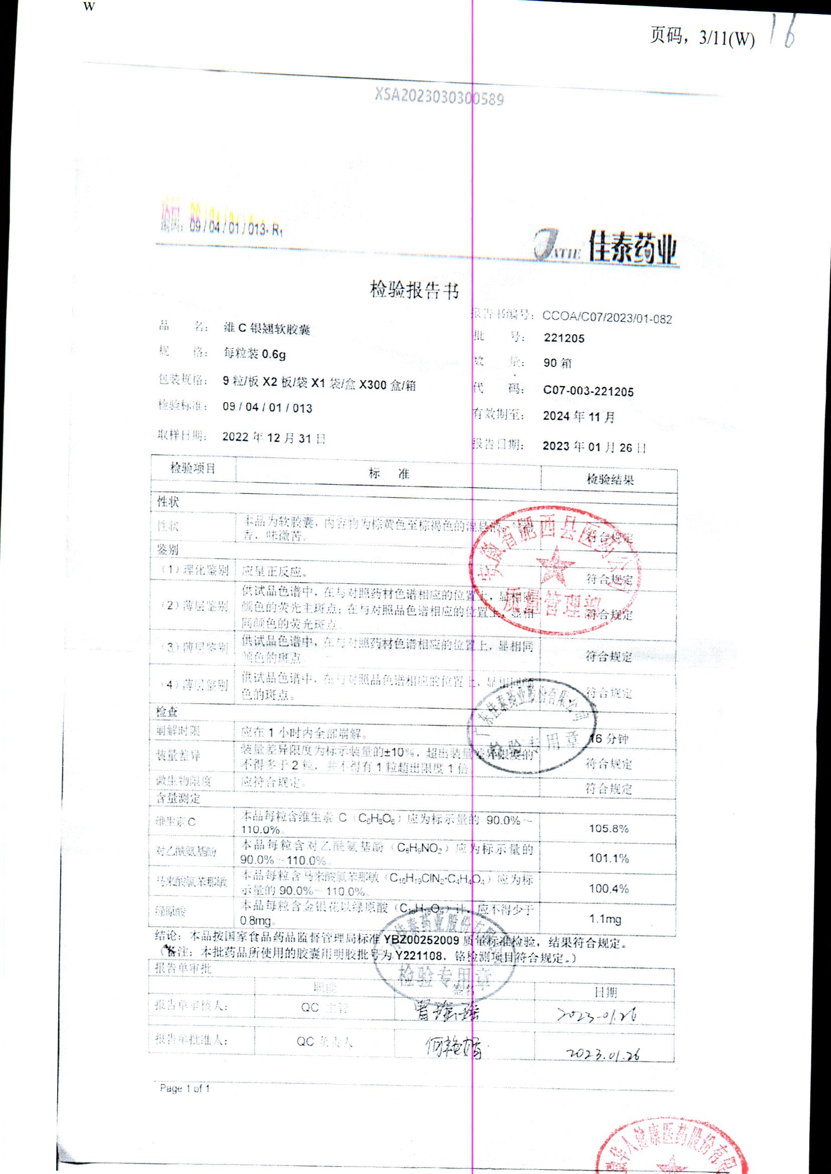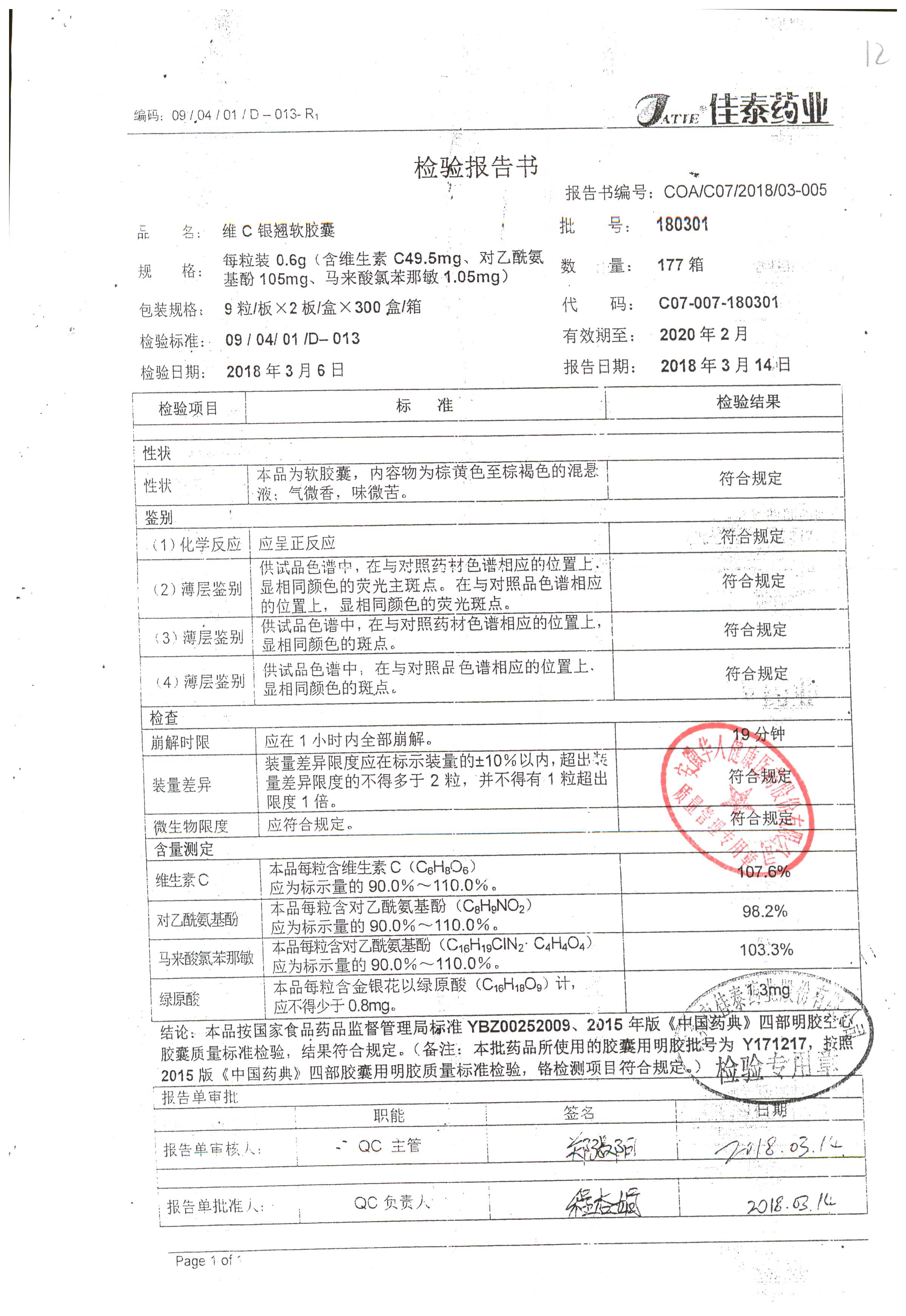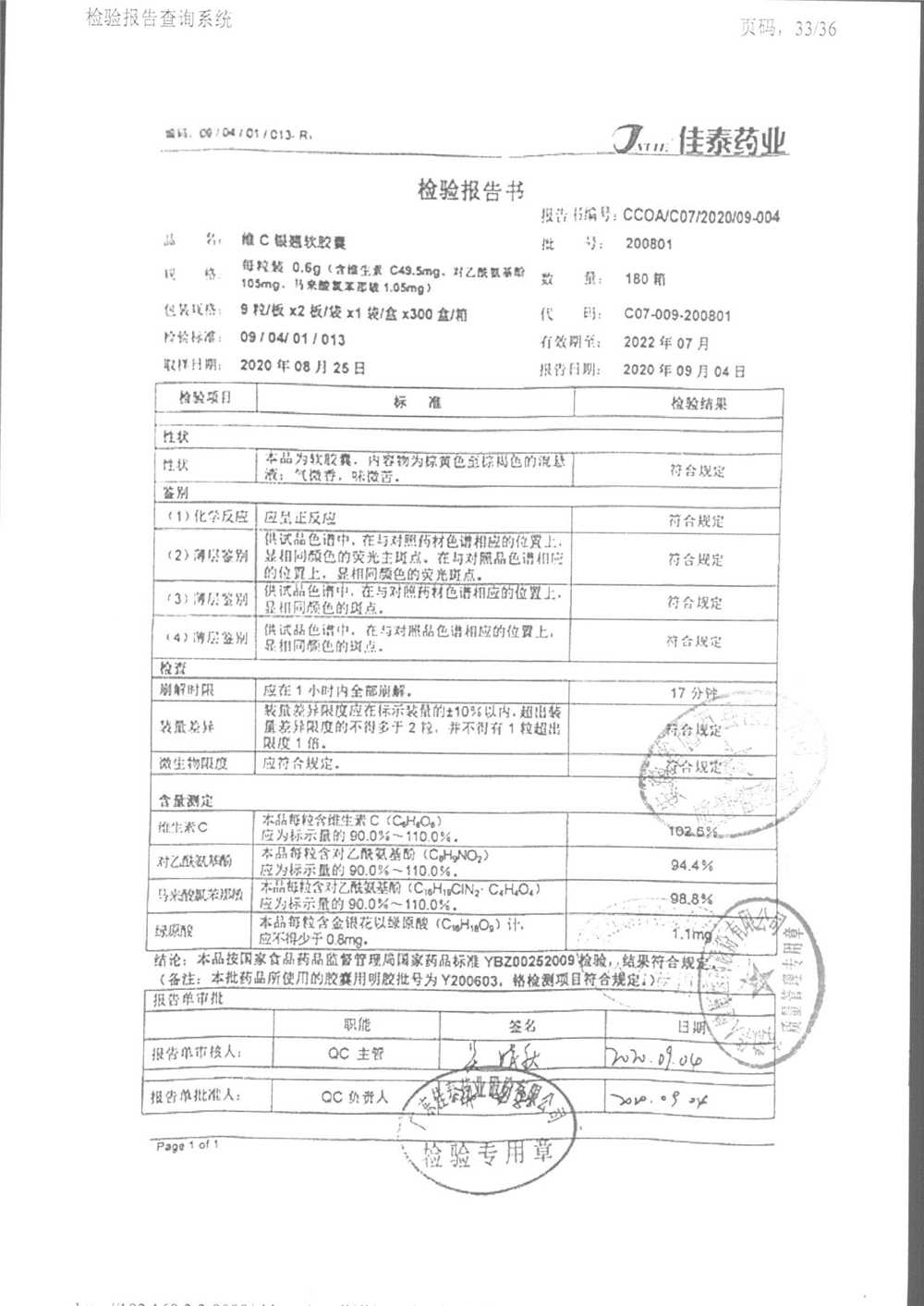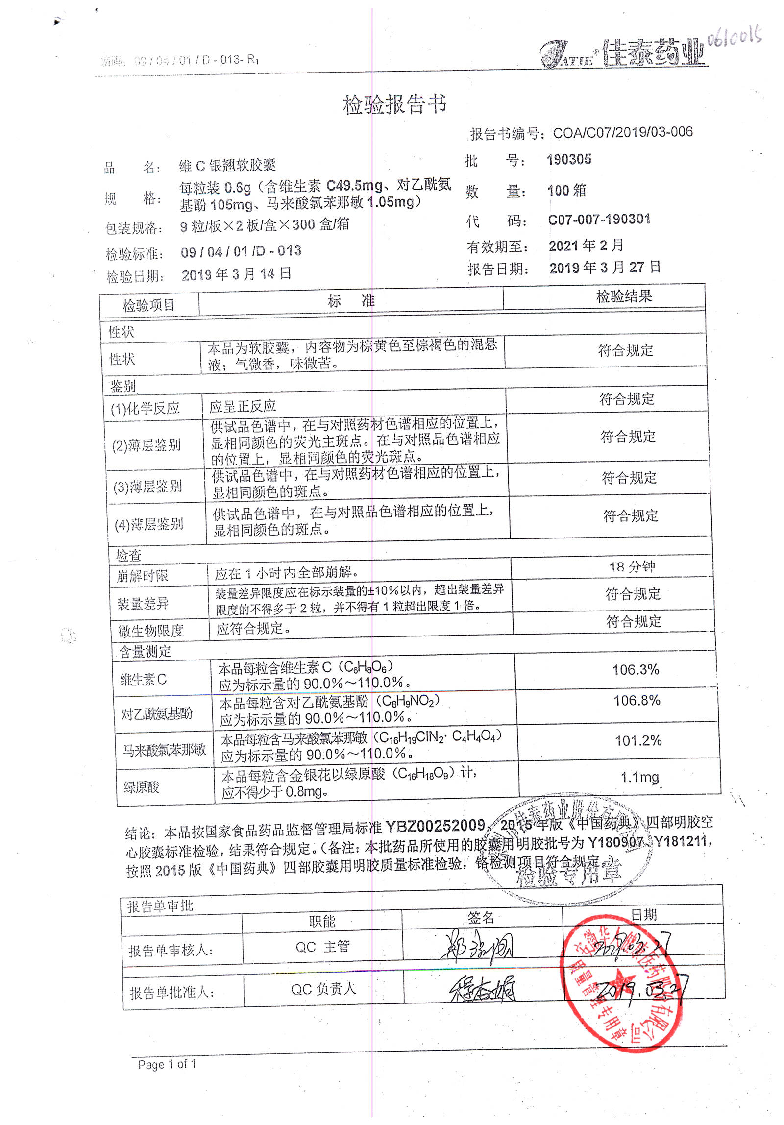 名稱(chēng) | 規(guī)格 | 批號(hào) | 藥檢報(bào)告 |