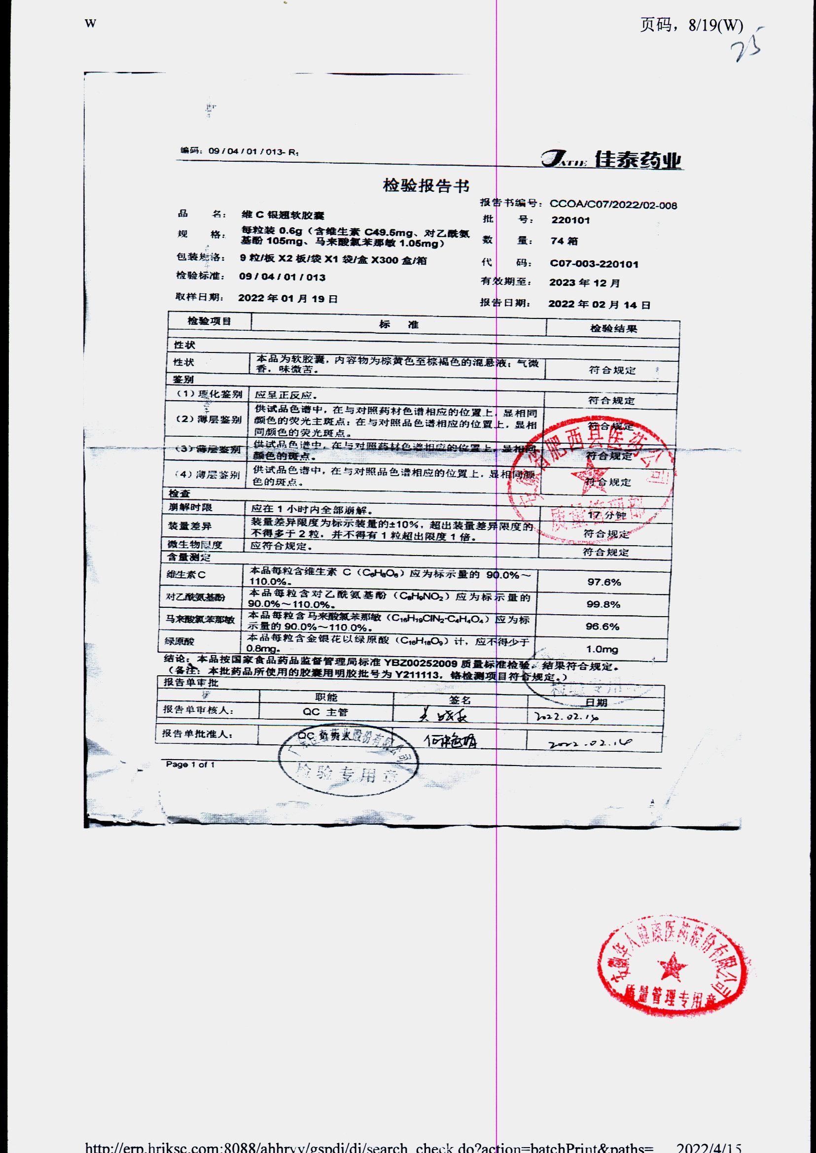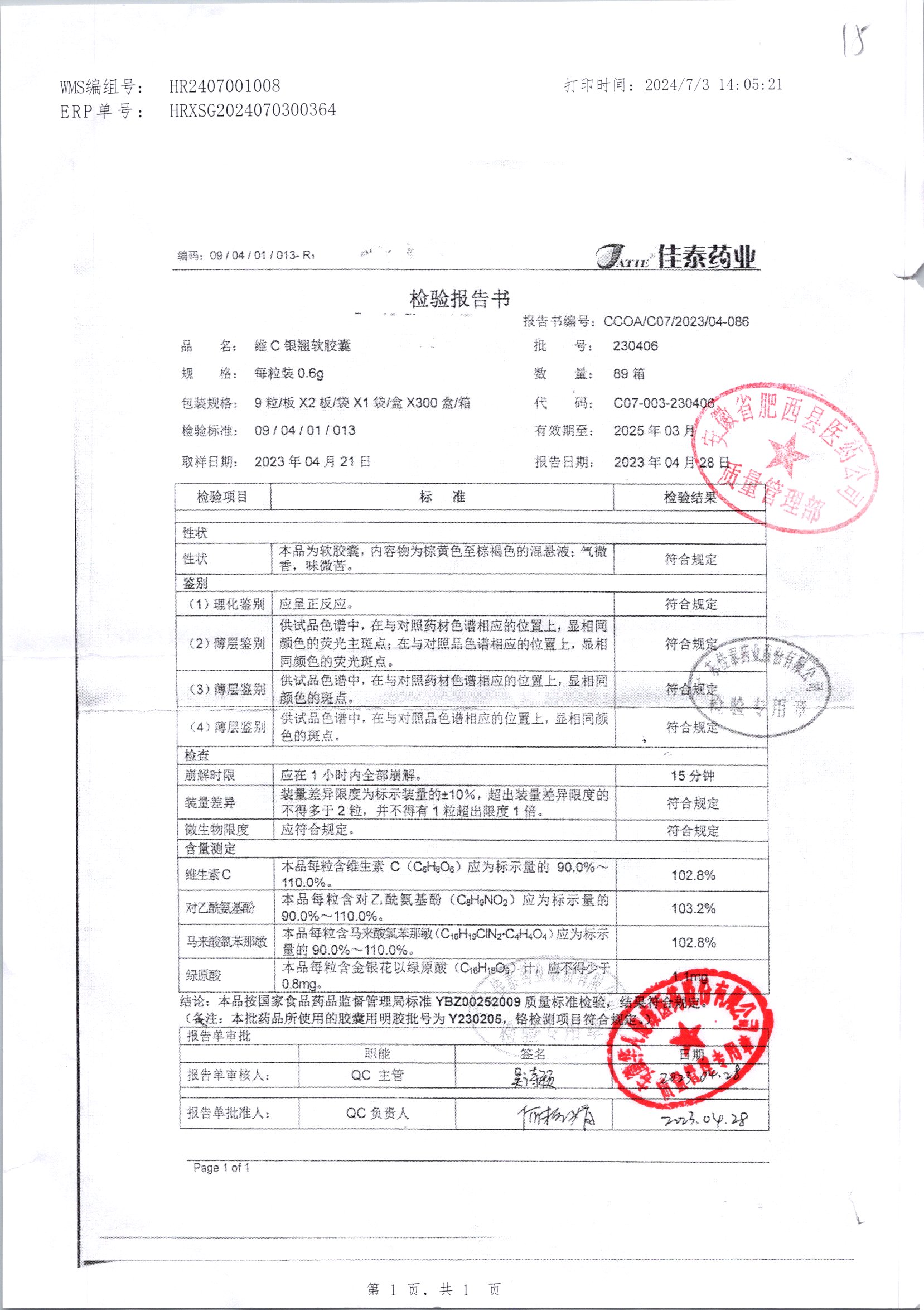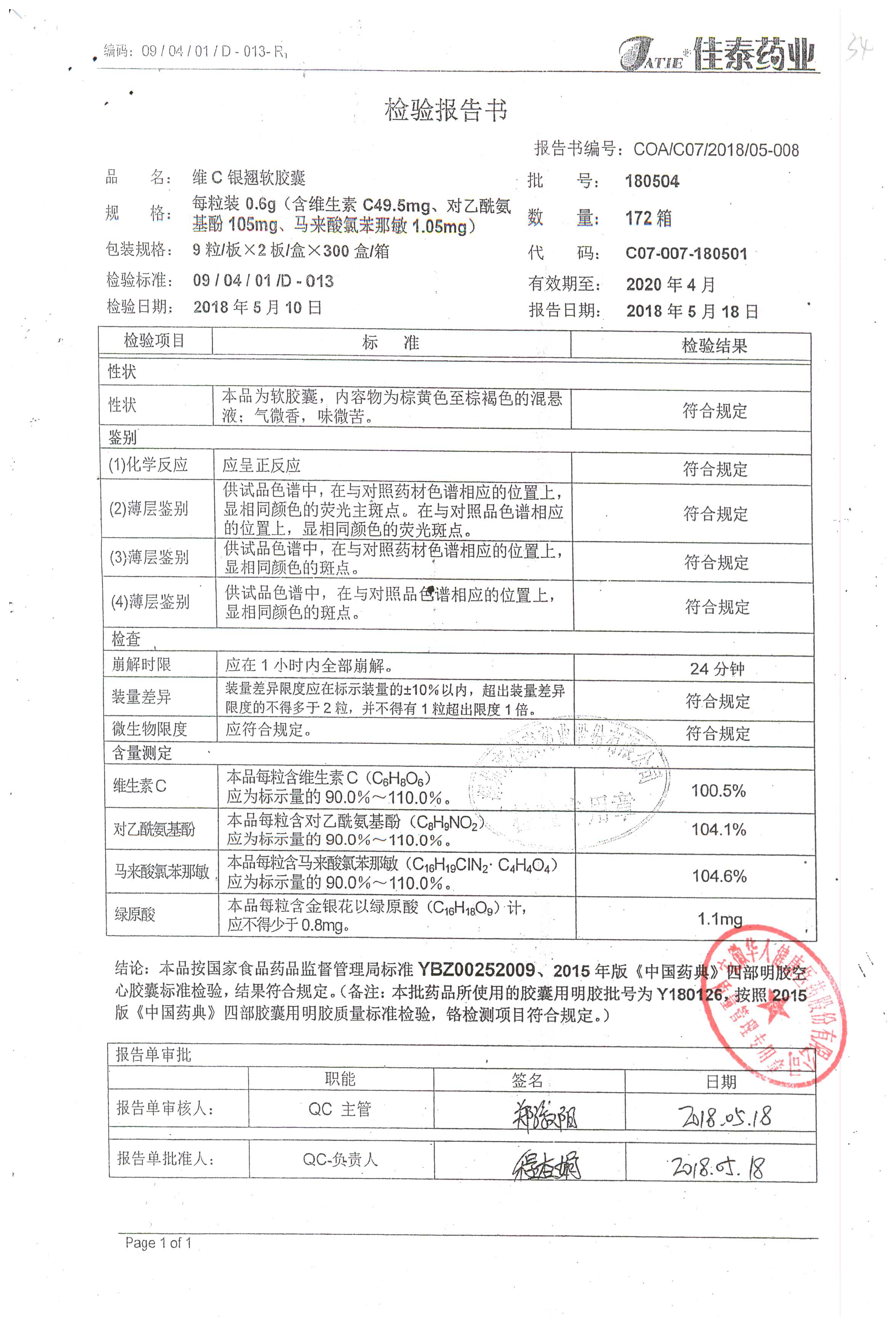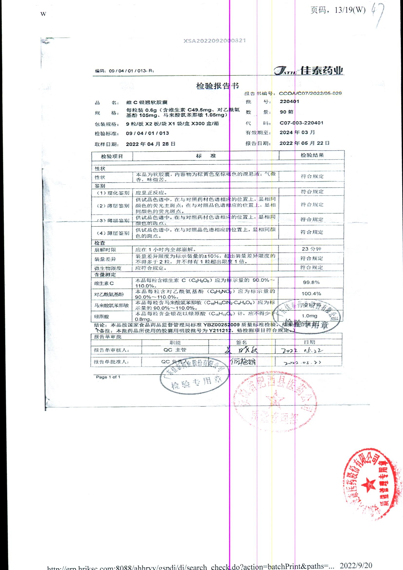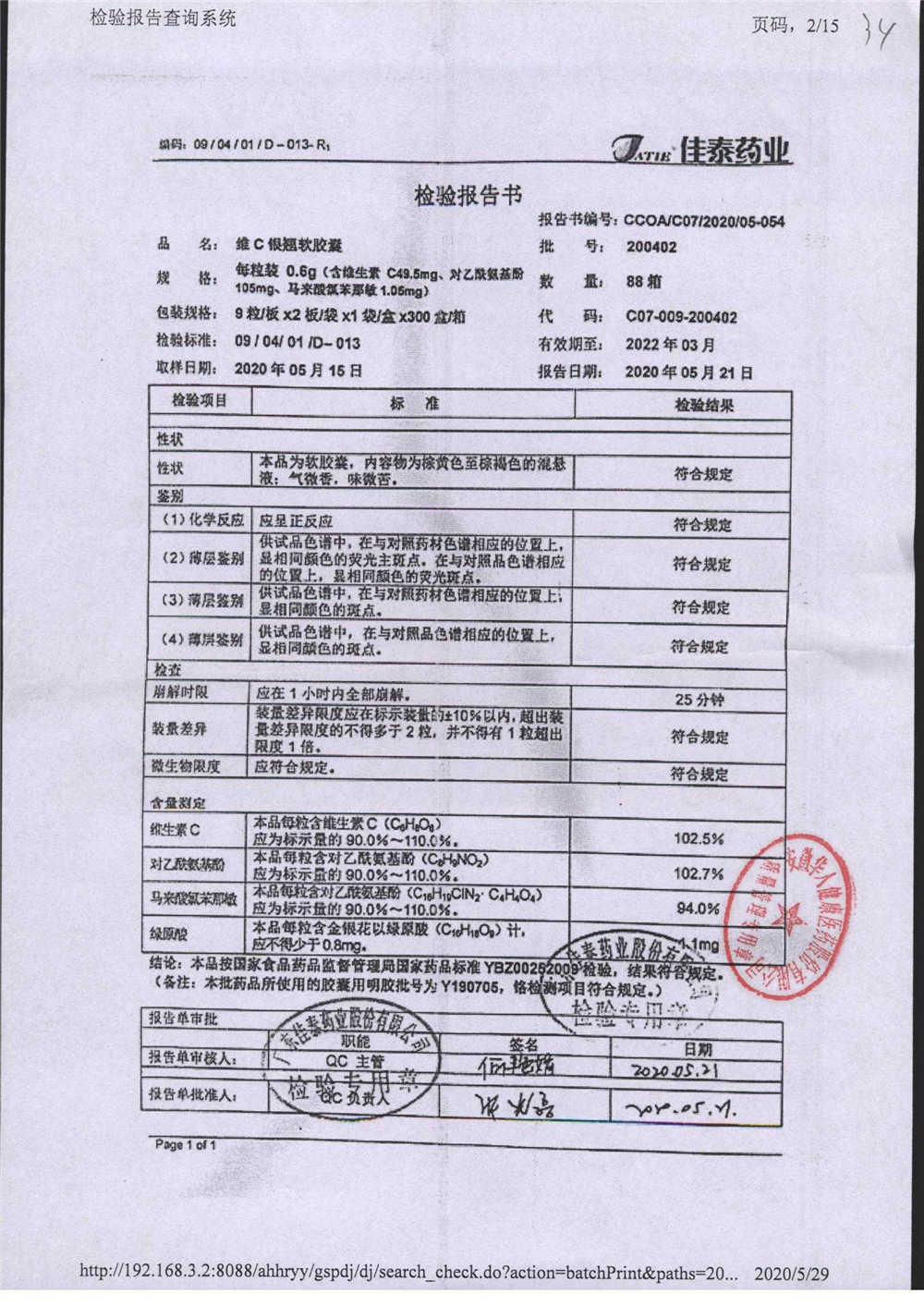 名稱(chēng) | 規(guī)格 | 批號(hào) | 藥檢報(bào)告 |