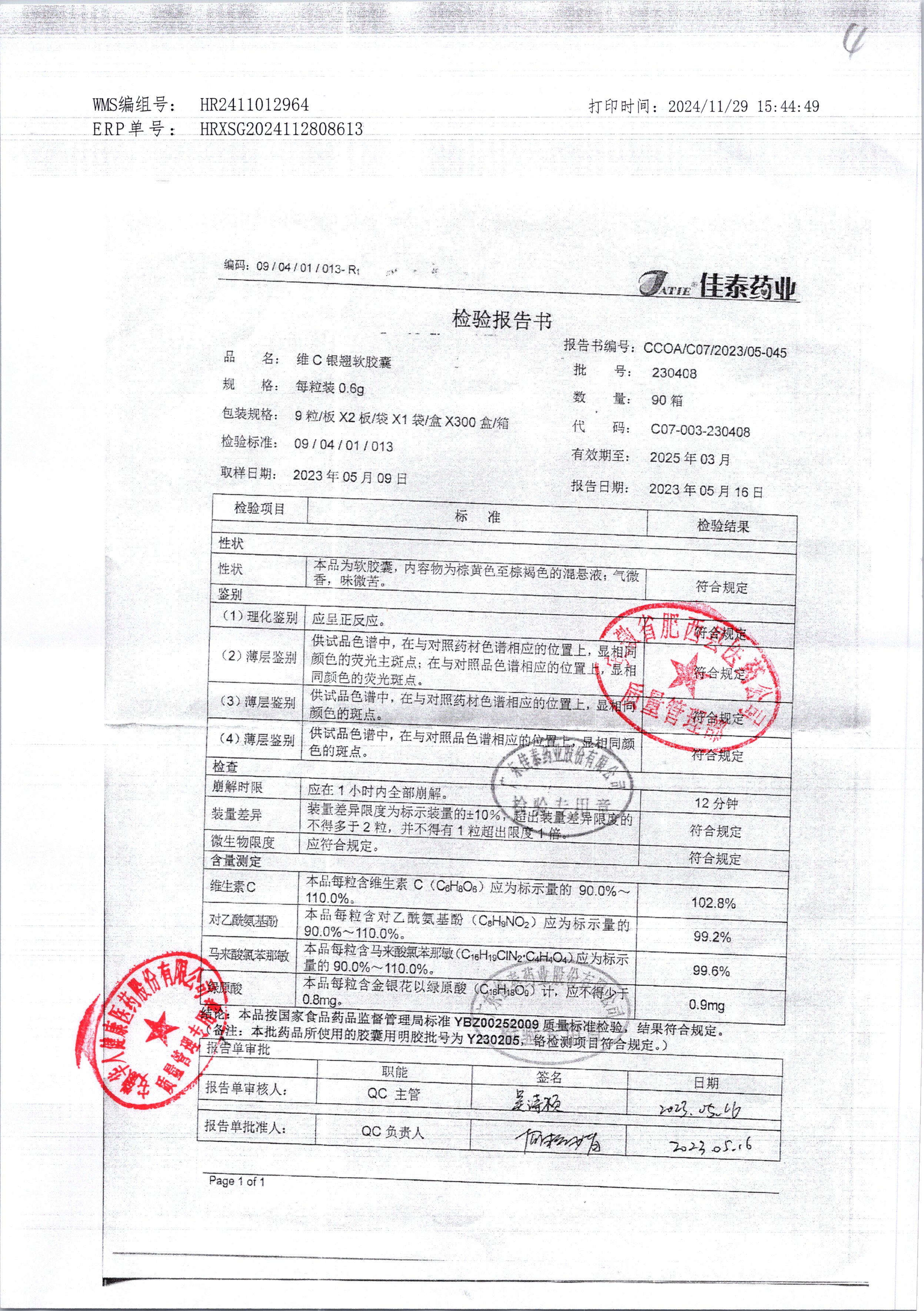 維C銀翹軟膠囊 | 0.6g*18s | 220401 | 查看詳情 |