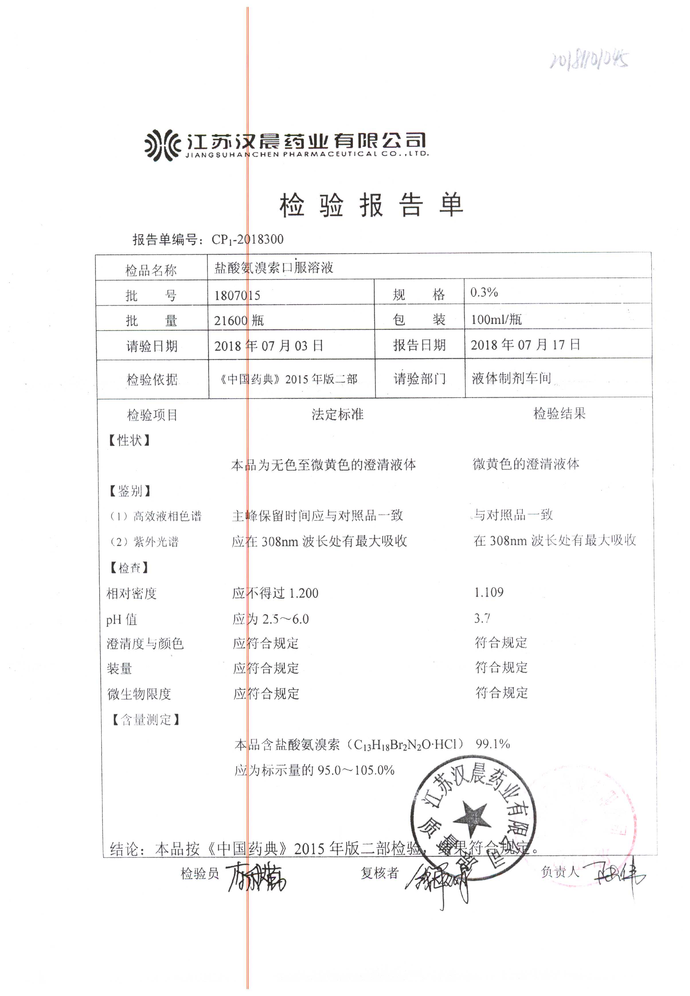 鹽酸氨溴索口服溶液 | 100ml | 1807015 | 查看詳情 |