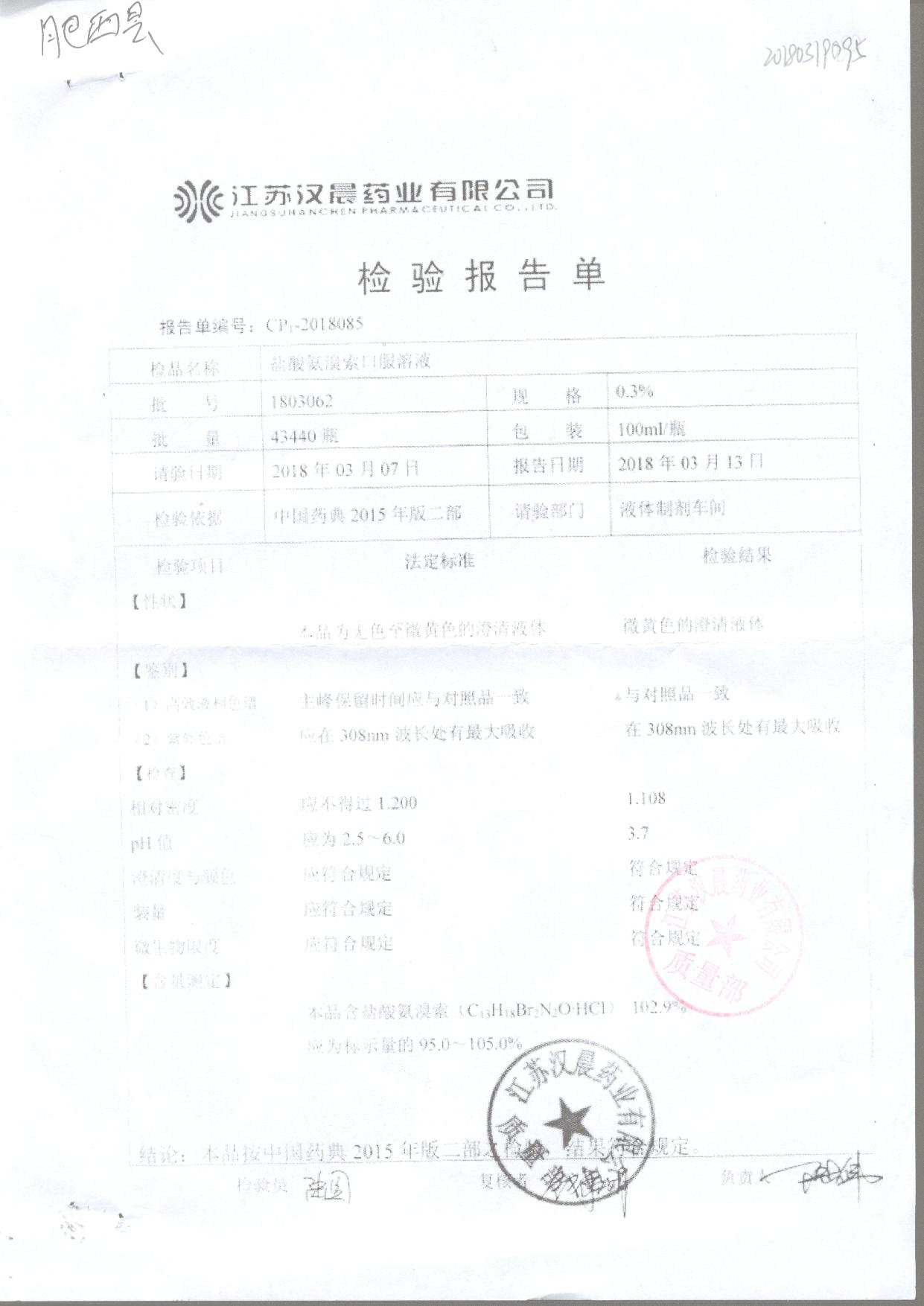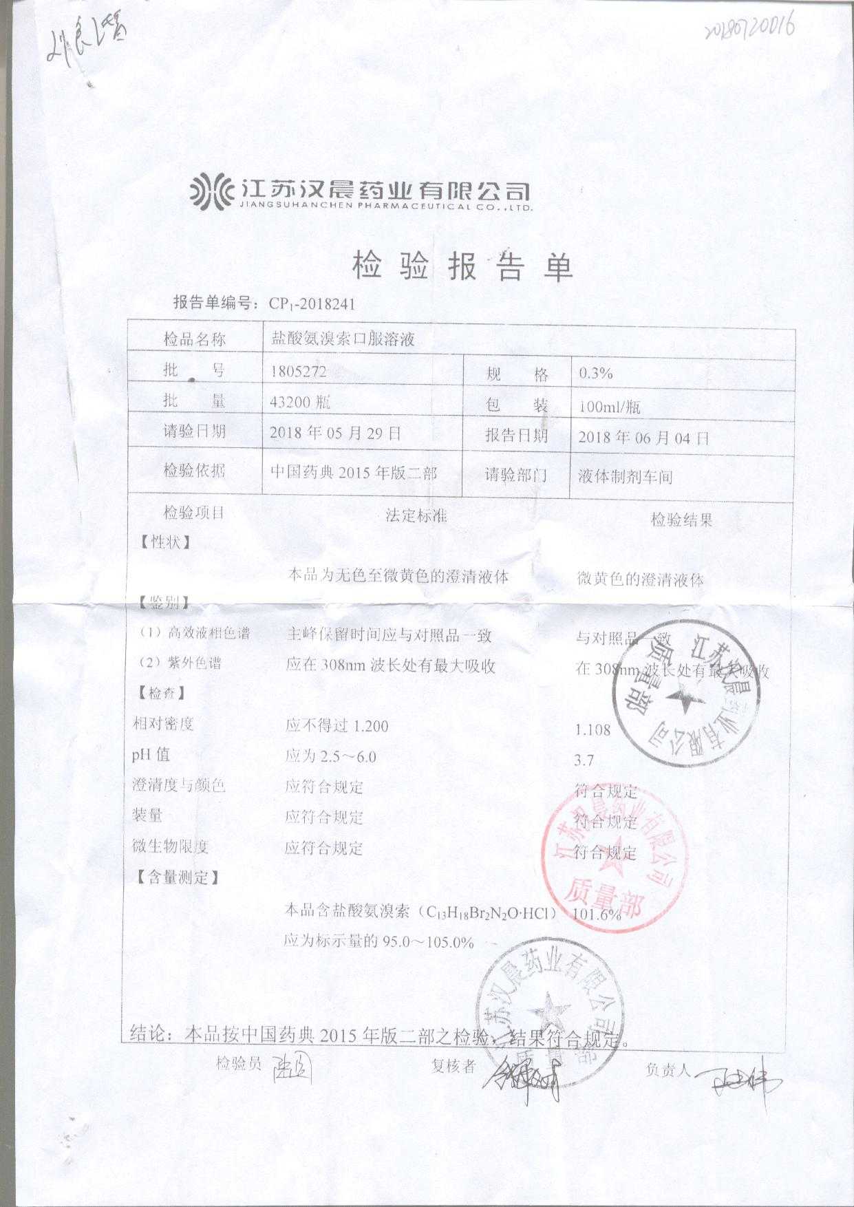 鹽酸氨溴索口服溶液 | 100ml | 1805272 | 查看詳情 |