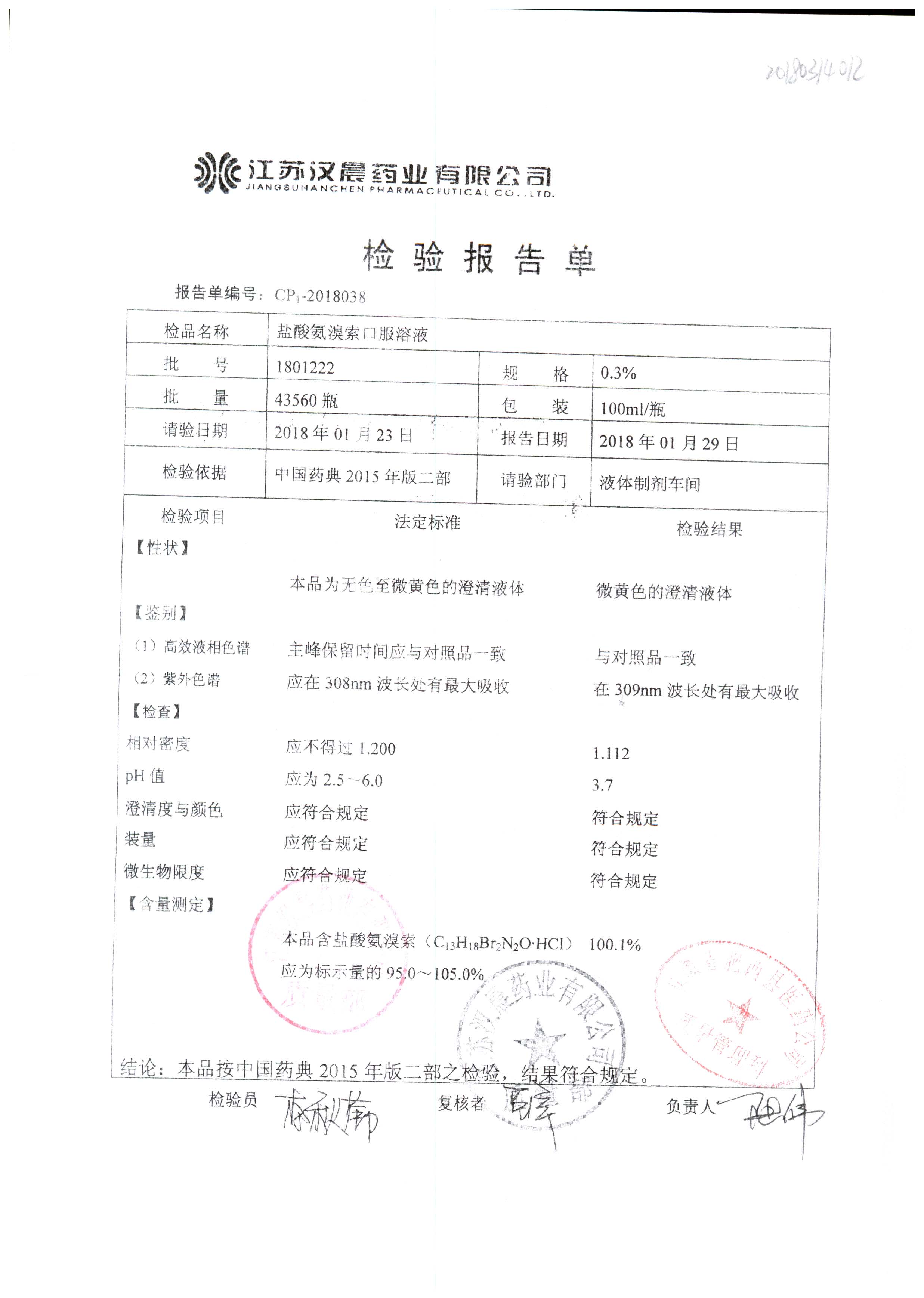 鹽酸氨溴索口服溶液 | 100ml | 1801222 | 查看詳情 |