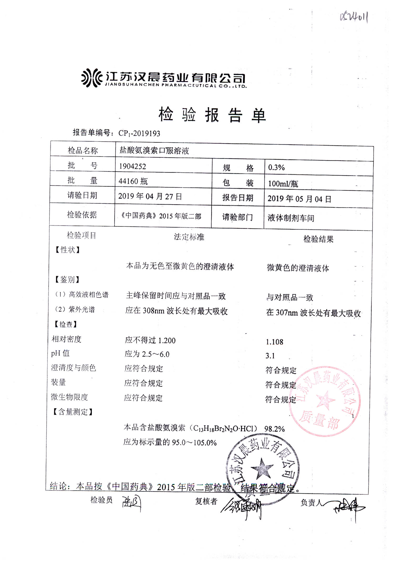 鹽酸氨溴索口服溶液 | 100ml | 1904252 | 查看詳情 |