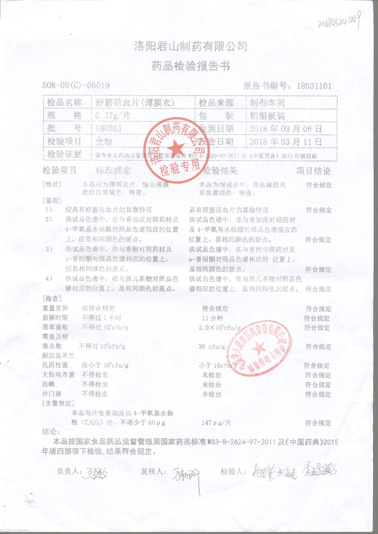舒經(jīng)活血片 0.37g 180301 查看詳情
