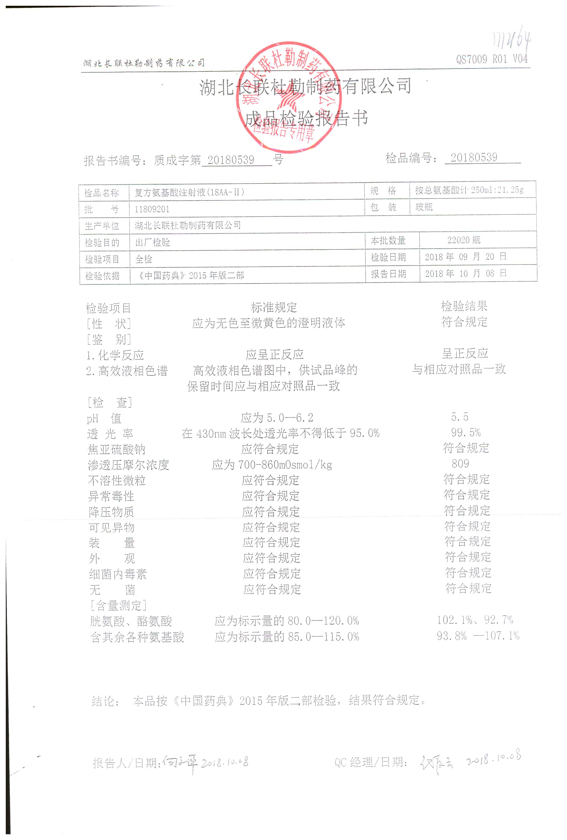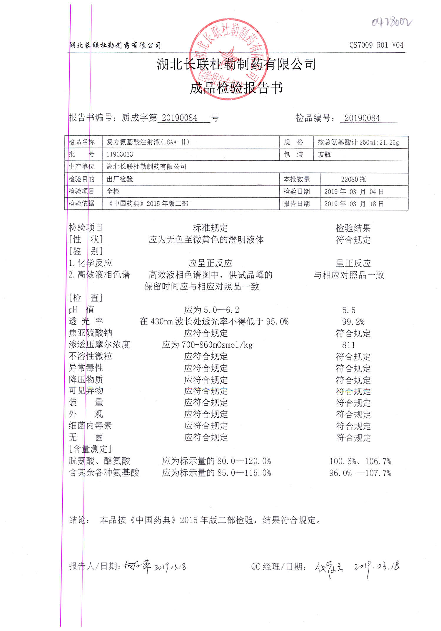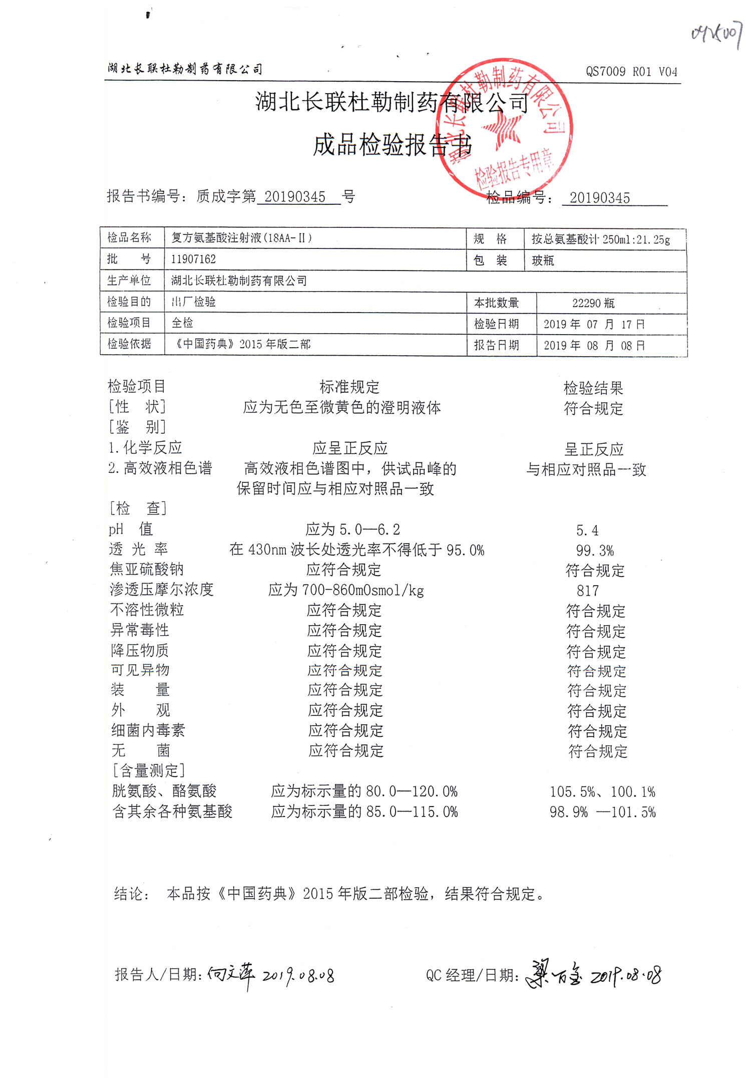 復(fù)方氨基酸注射液 | 250ml:21.25g | 11907162 | 查看詳情 |