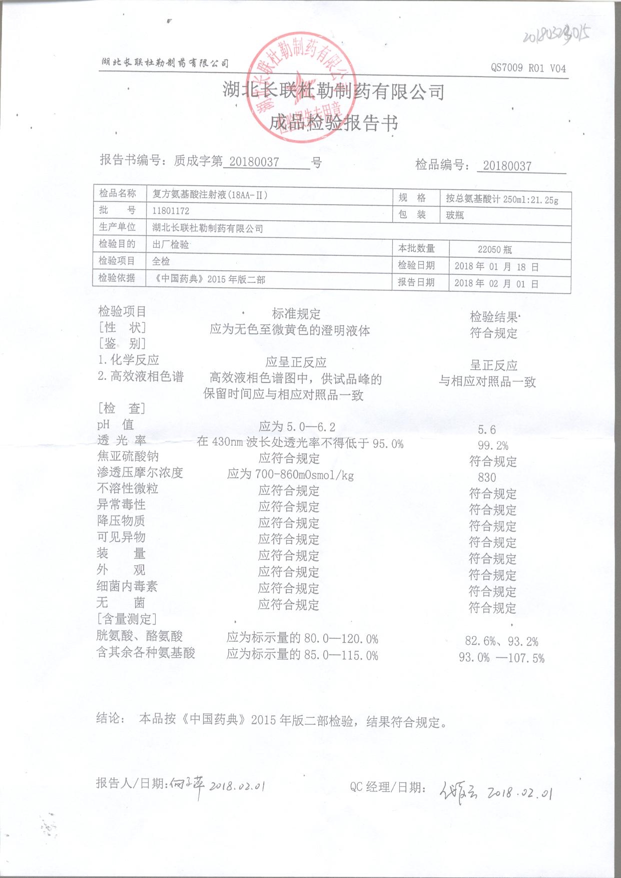 復(fù)方氨基酸注射液 | 250ml:21.25g | 11801172 | 查看詳情 |